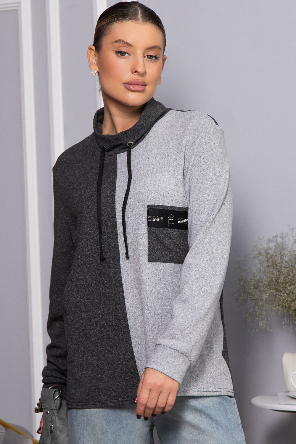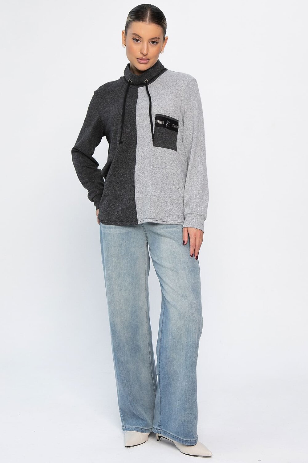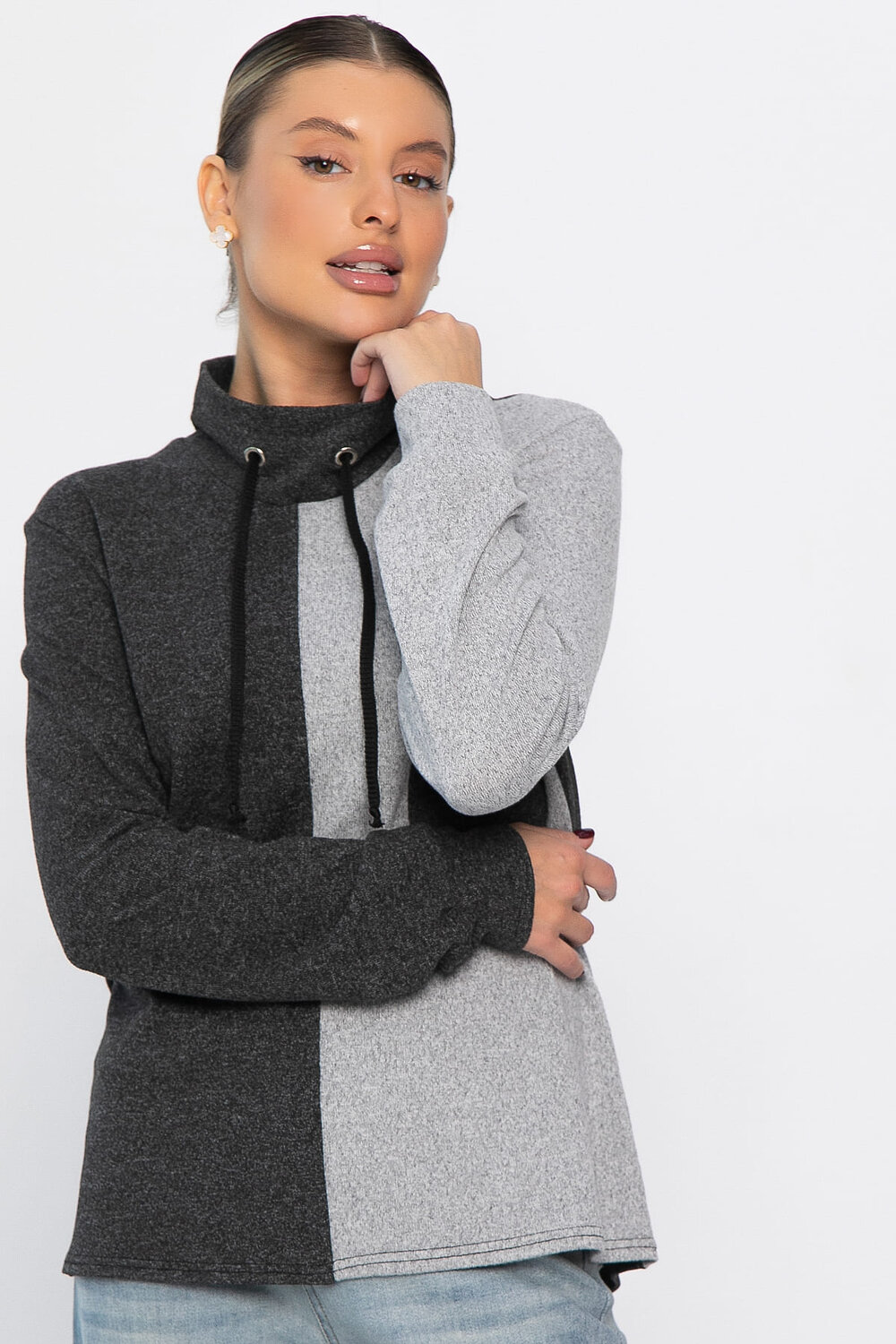 Двухцветный трикотажный джемпер — идеальный выбор для тех, кто ценит стиль и уют. Длинные рукава, горловина на кулиске делают его максимально комфортным. Джемпер прекрасно подойдет для встреч с друзьями, активного отдыха, занятий спортом и повседневной носки.