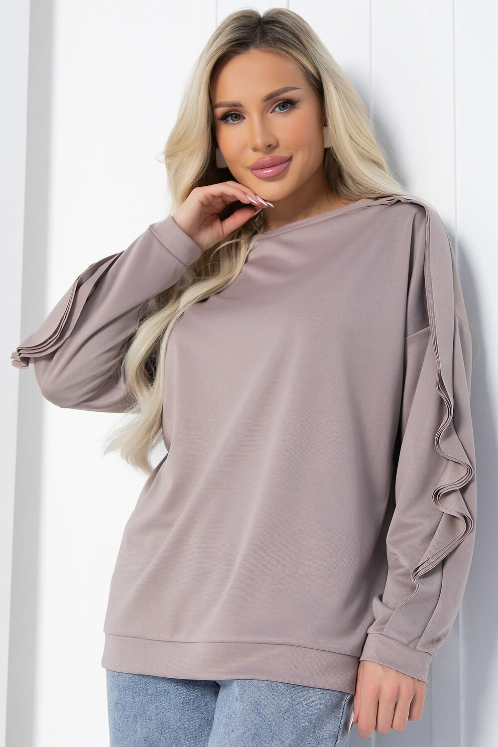 Стильный и выразительный джемпер — это то, что нужно для вашего гардероба. Он добавит изюминку в ваш образ и сделает его неповторимым. Этот универсальный джемпер без лишних деталей, таких как принты, надписи или вышивка, подойдёт к любому стилю. Особенность модели — воланы по всей длине рукавов. Они придают джемперу игривость и оригинальность.