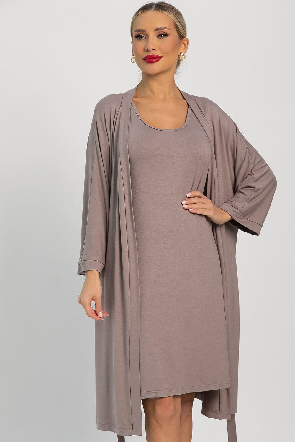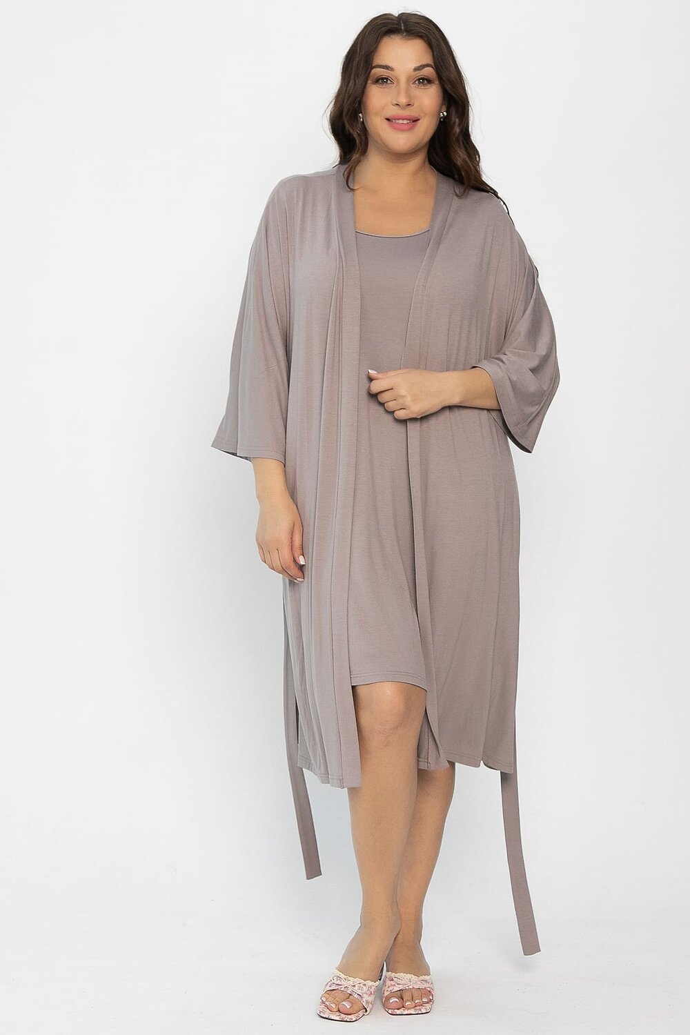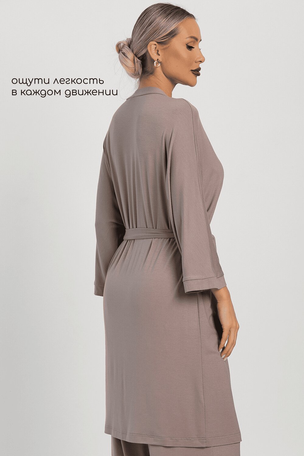 Идеальный выбор для создания уюта и расслабления в домашней обстановке. Этот пеньюар станет вашим верным спутником для спокойных вечеров, утреннего кофе или просмотра фильмов. Свободный крой и рукава длиной три четверти обеспечивают максимальный комфорт и свободу движений, а пояс из основной ткани идет в комплекте. Он создан специально для того, чтобы дарить радость и создавать атмосферу роскоши и уюта каждый день. Пеньюар изготовлен из мягкой вискозы с добавлением лайкры, что делает его приятным на ощупь и идеально подходящим для расслабленного и стильного домашнего образа.