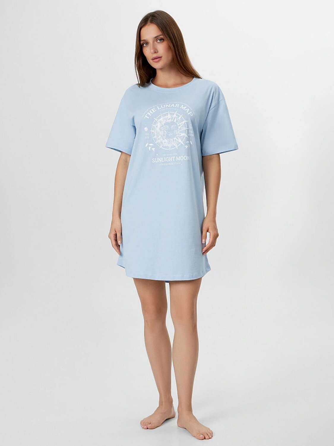 Ночная сорочка с нежным цветочным узором отличается продуманным кроем. Спущенное плечо и короткий рукав обеспечивают удобную посадку, а круглая горловина классической формы подчеркивает женственность. Длина выше колен идеальна для свободного движения.
