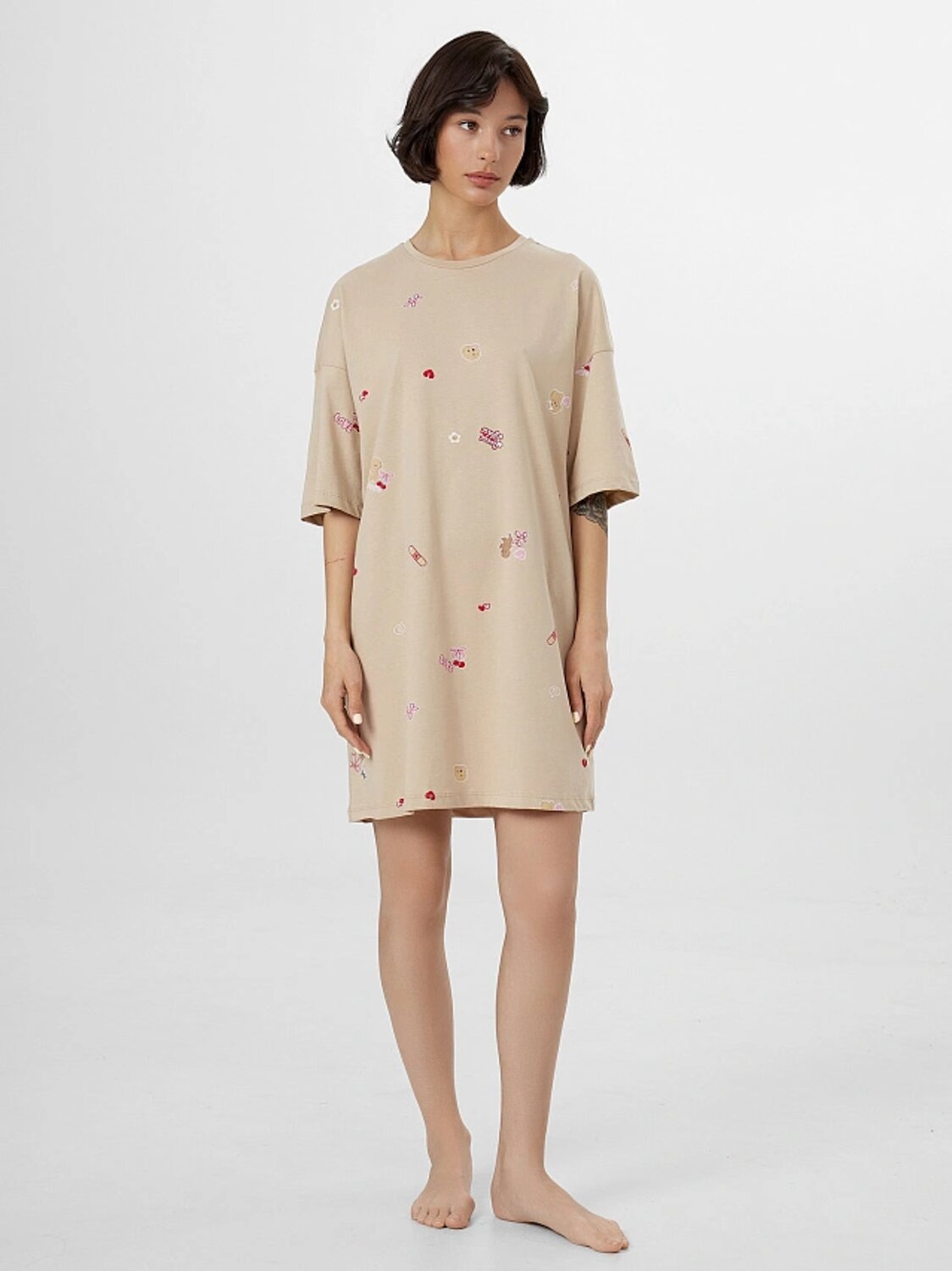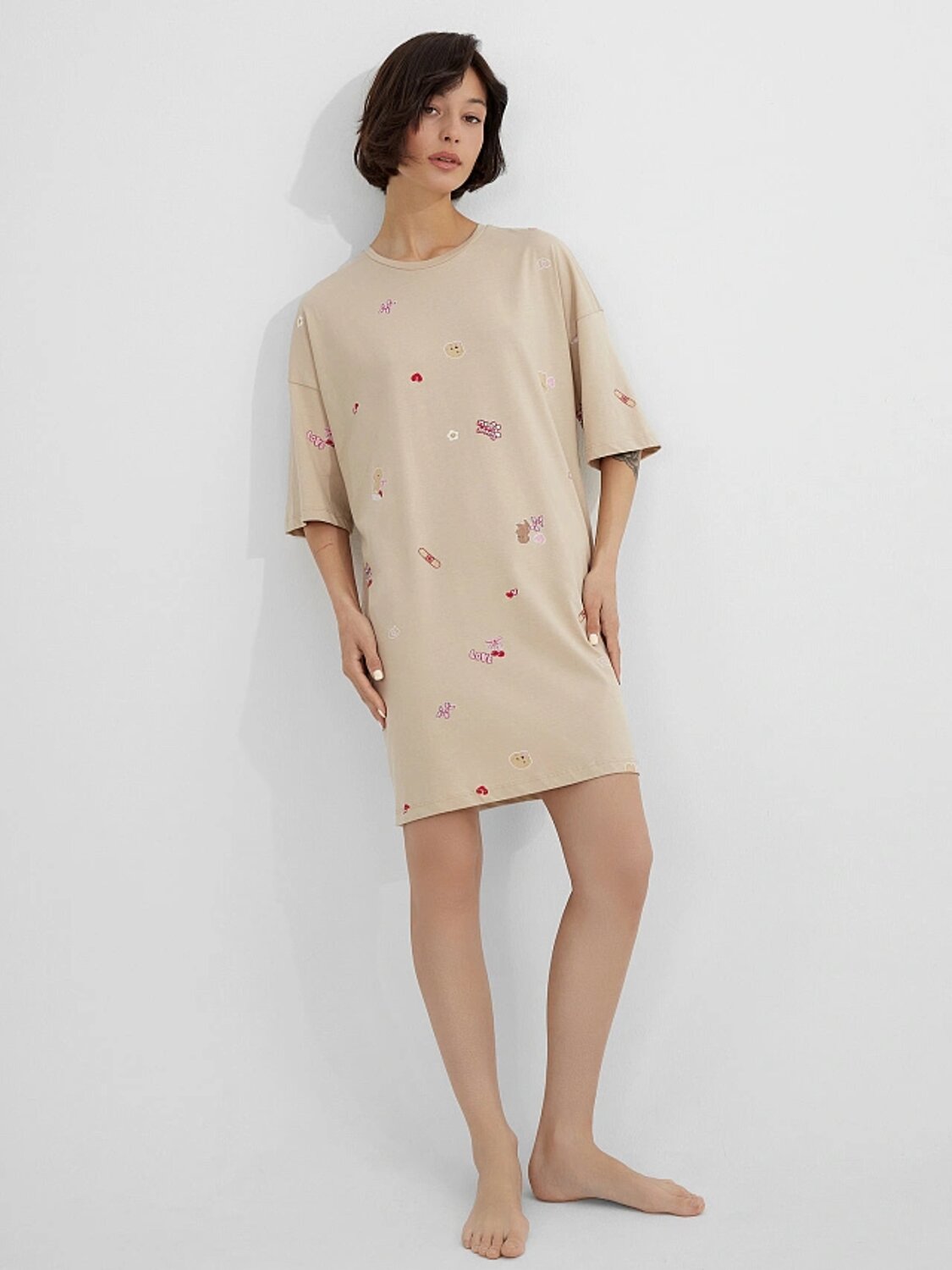 Если вы ищете женскую ночную сорочку, которая сочетает в себе уют и стиль, эта модель – отличный выбор. В коллекции представлены нежные базовые оттенки, подходящие под любой образ. Домашнее платье с милым принтом понравится всем, кто ценит комфорт и душевные детали.