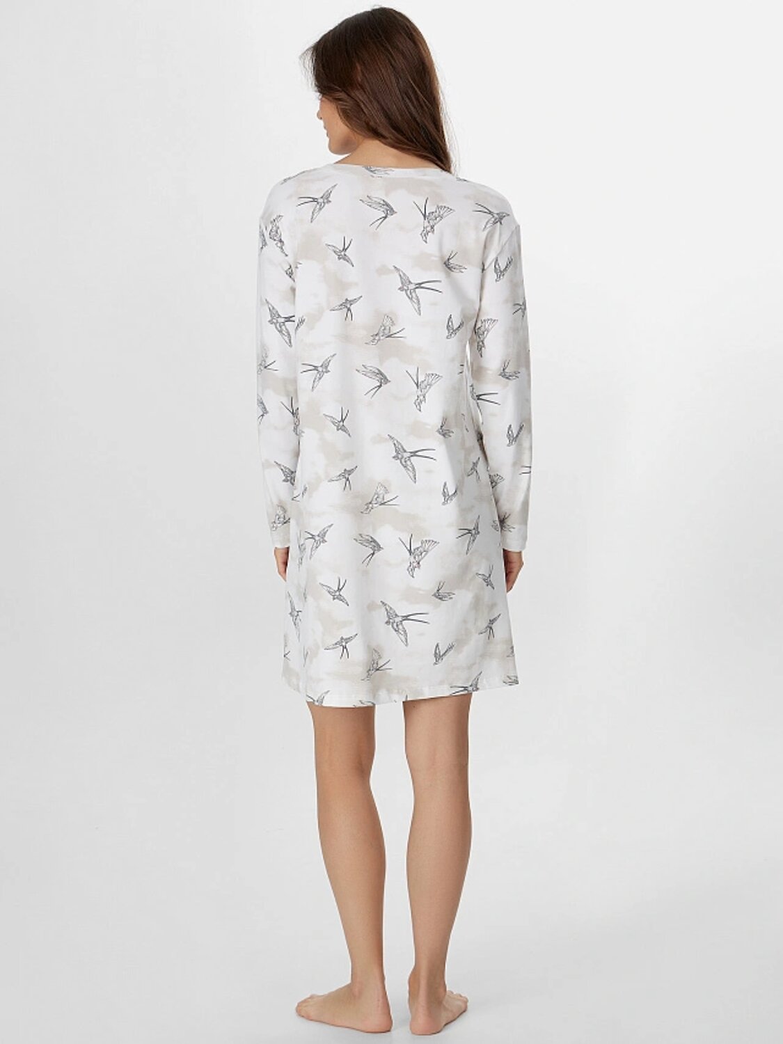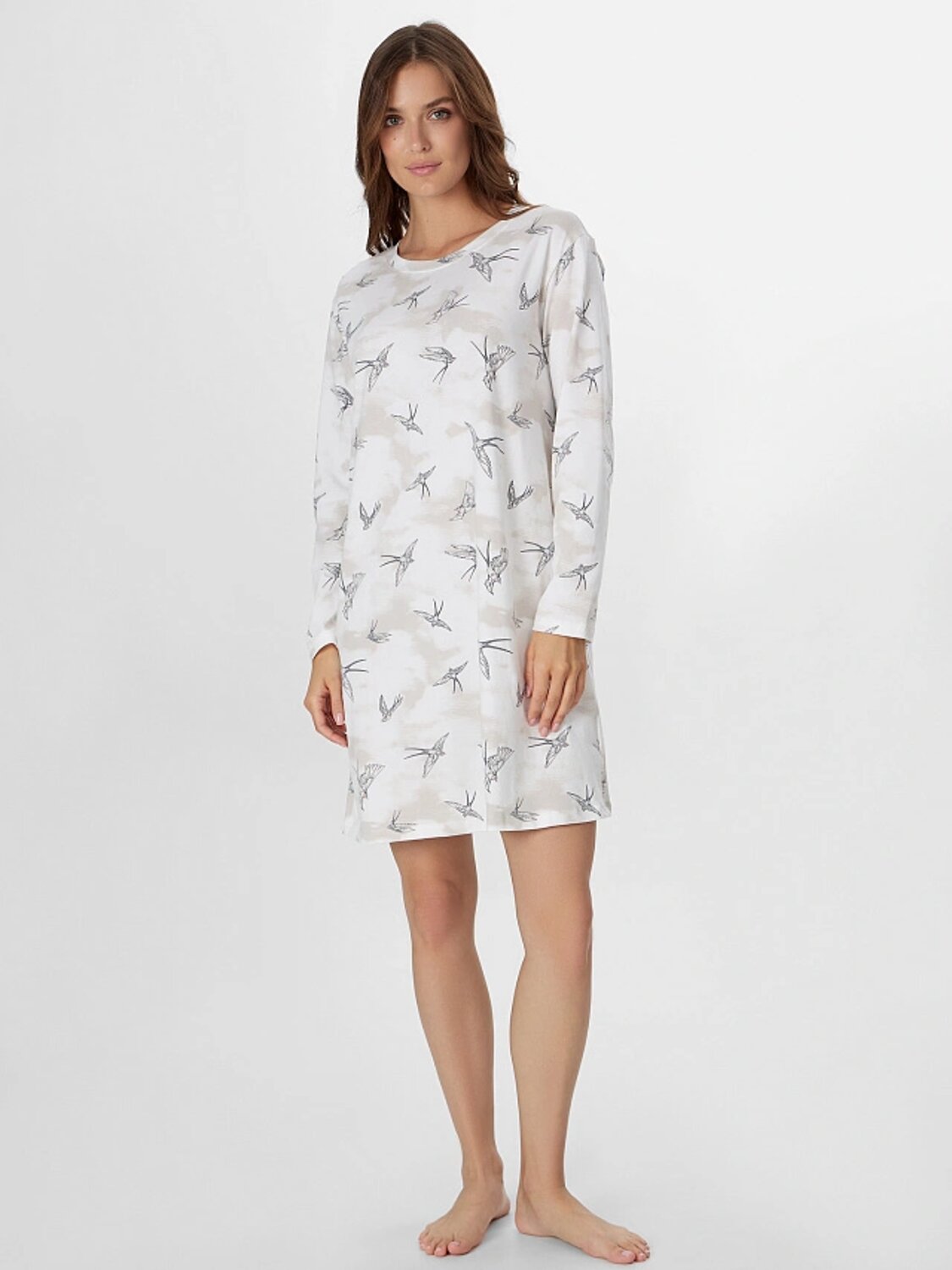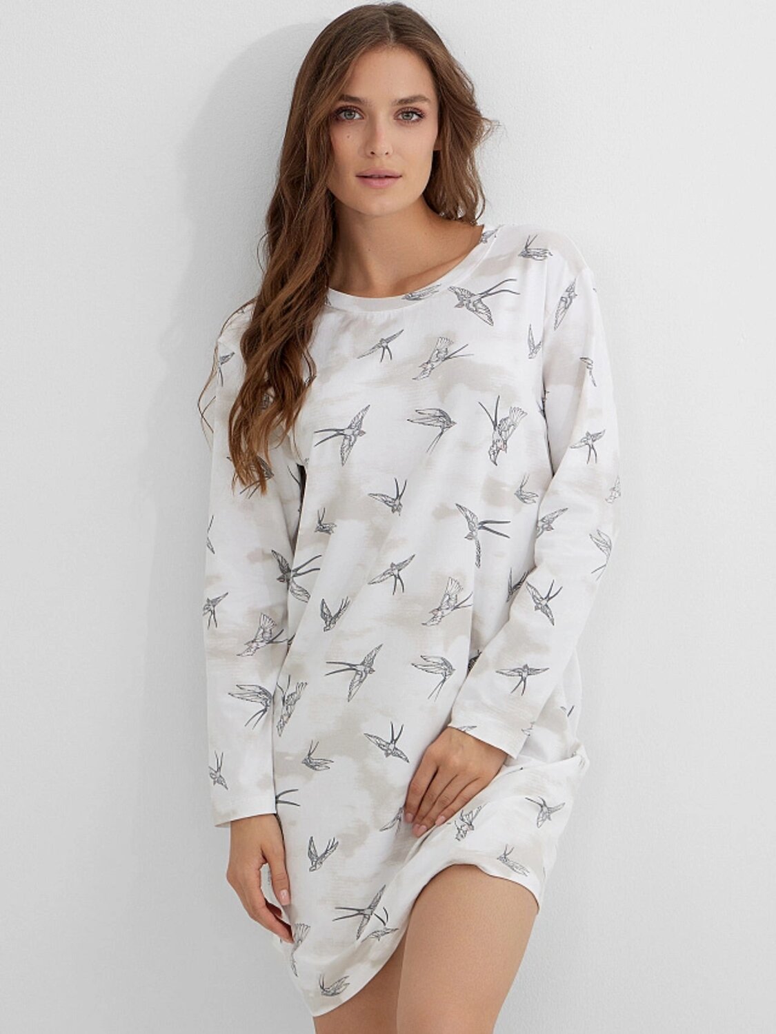 Свободный крой с круглой горловиной и длинными рукавами со спущенным плечом обеспечивает полную свободу движений. Аккуратная обработка швов гарантирует долговечность и опрятный вид. Если вы хотите купить платье домашнее женское с принтом, которое сочетает натуральные материалы, практичный дизайн и современную эстетику, эта модель станет прекрасным выбором.