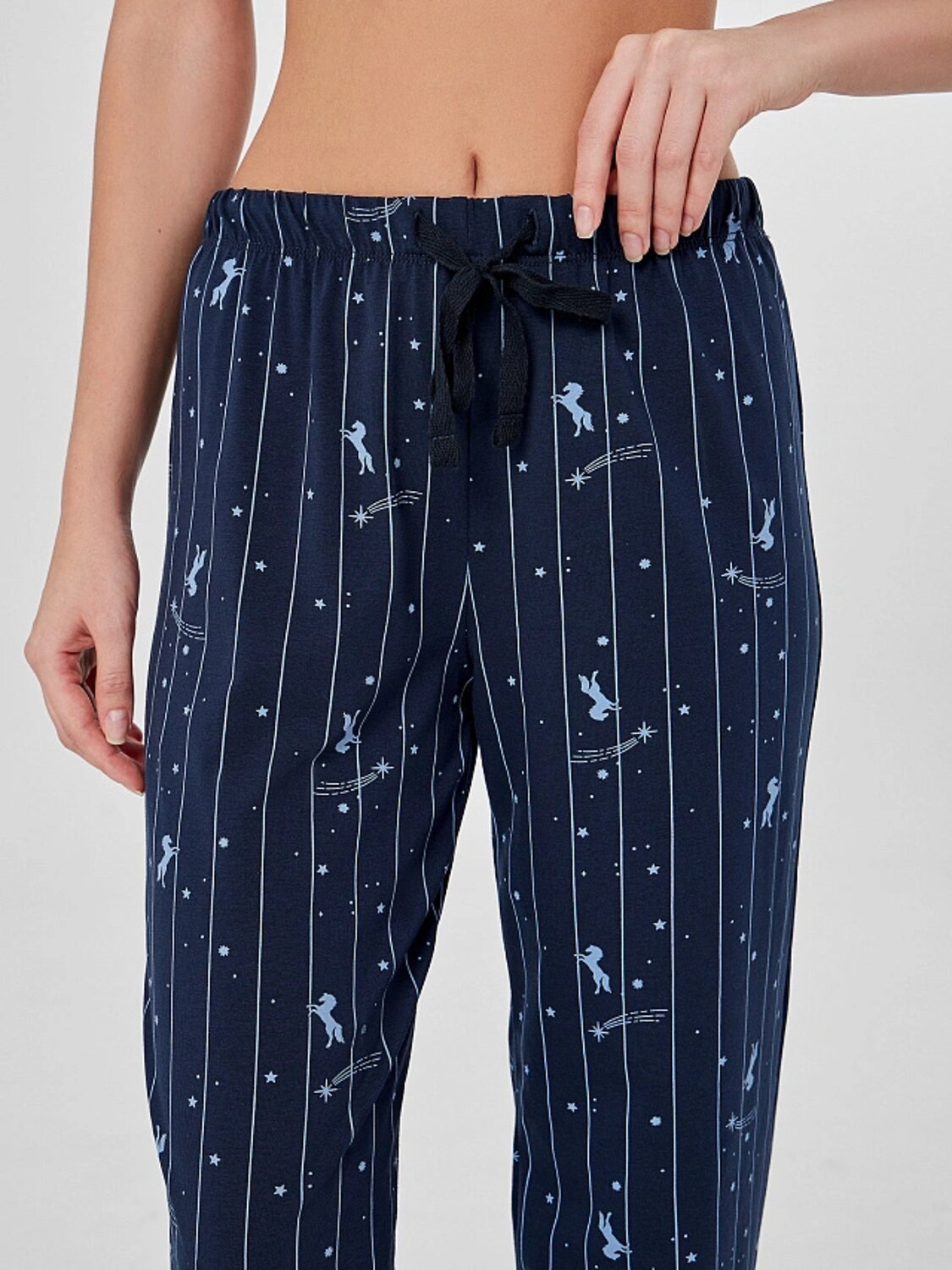 Эластичный пояс на кулиске позволяет индивидуально регулировать объем, даря ощущение легкости и надежной фиксации без давления. Низ брюк аккуратно обработан в подгибку, благодаря чему изделие сохраняет форму и выглядит опрятно даже после многократных стирок.