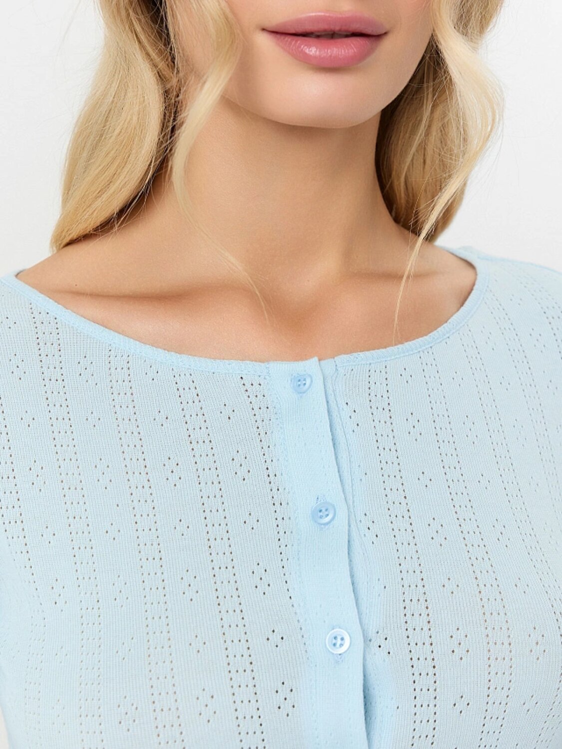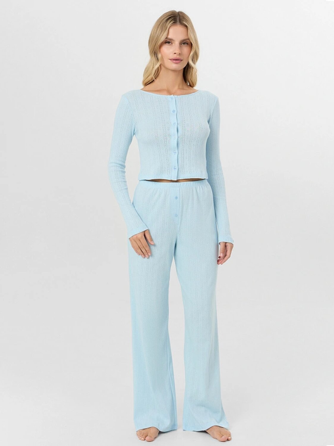 Пижама женская с брюками — это эталон комфорта и элегантности для вашего ночного отдыха. Комплект состоит из приталенного жакета и прямых брюк, выполненных из натурального хлопка, который обеспечивает идеальную воздухопроницаемость и мягкость. Жакет с овальной горловиной и длинными рукавами подчеркивает изящество силуэта, а застежка на пуговицы добавляет классическую ноту. Брюки с эластичным поясом на резинке гарантируют свободную посадку и удобство во время сна.