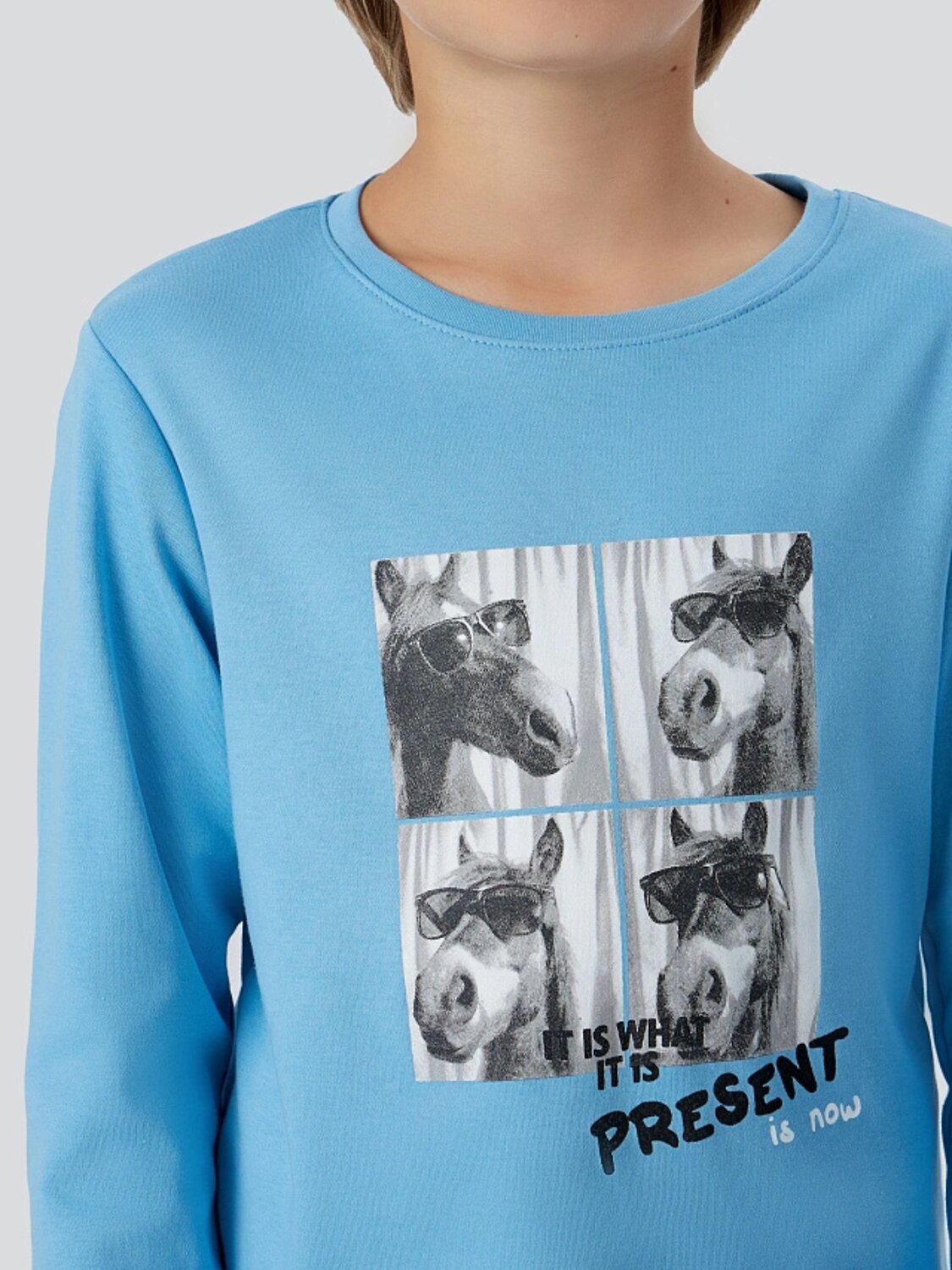 Пижама для мальчиков с надписью "Be wild. Be free" ("Будь диким. Будь свободным") — это комплект для смелых и активных ребят. В набор входит свободный джемпер и прямые брюки, сшитые из мягкой дышащей ткани, которая не раздражает кожу даже во время сна.