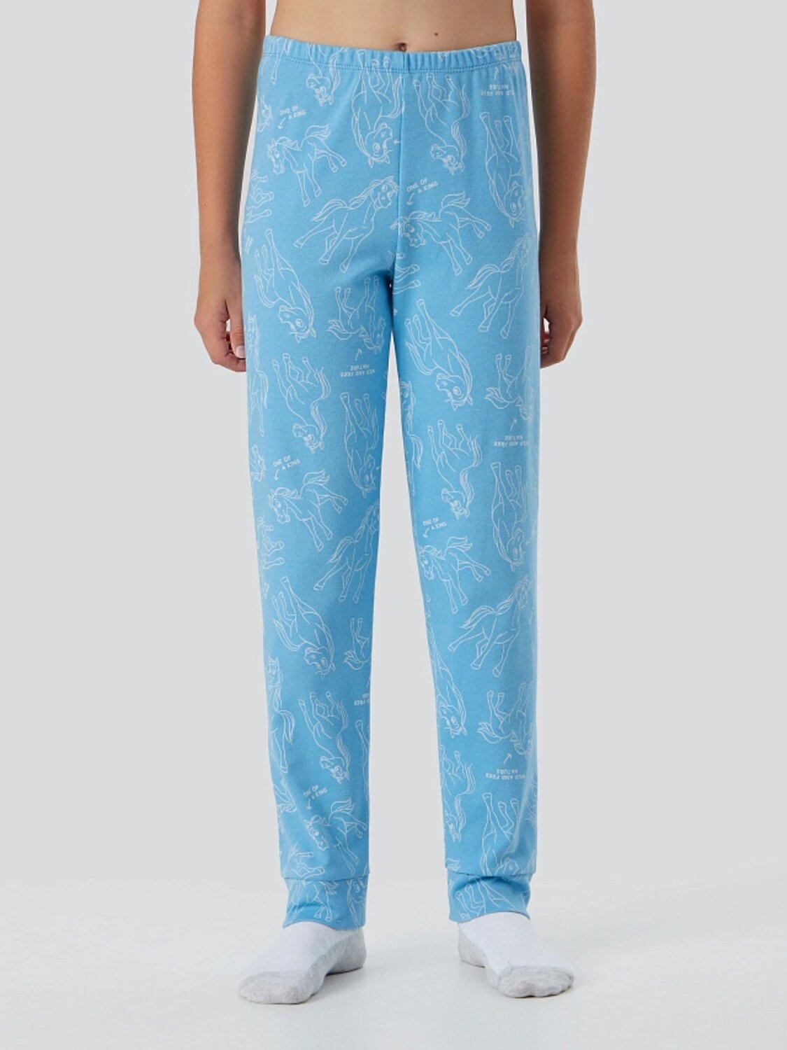 Джемпер с круглой горловиной и удлиненными рукавами на манжетах удобно сидит по фигуре, не сковывая движения. Низ изделия аккуратно подогнут для опрятного вида. Брюки с широким эластичным поясом мягко фиксируются на талии, а манжеты внизу не дают им задираться во время активных игр или отдыха.