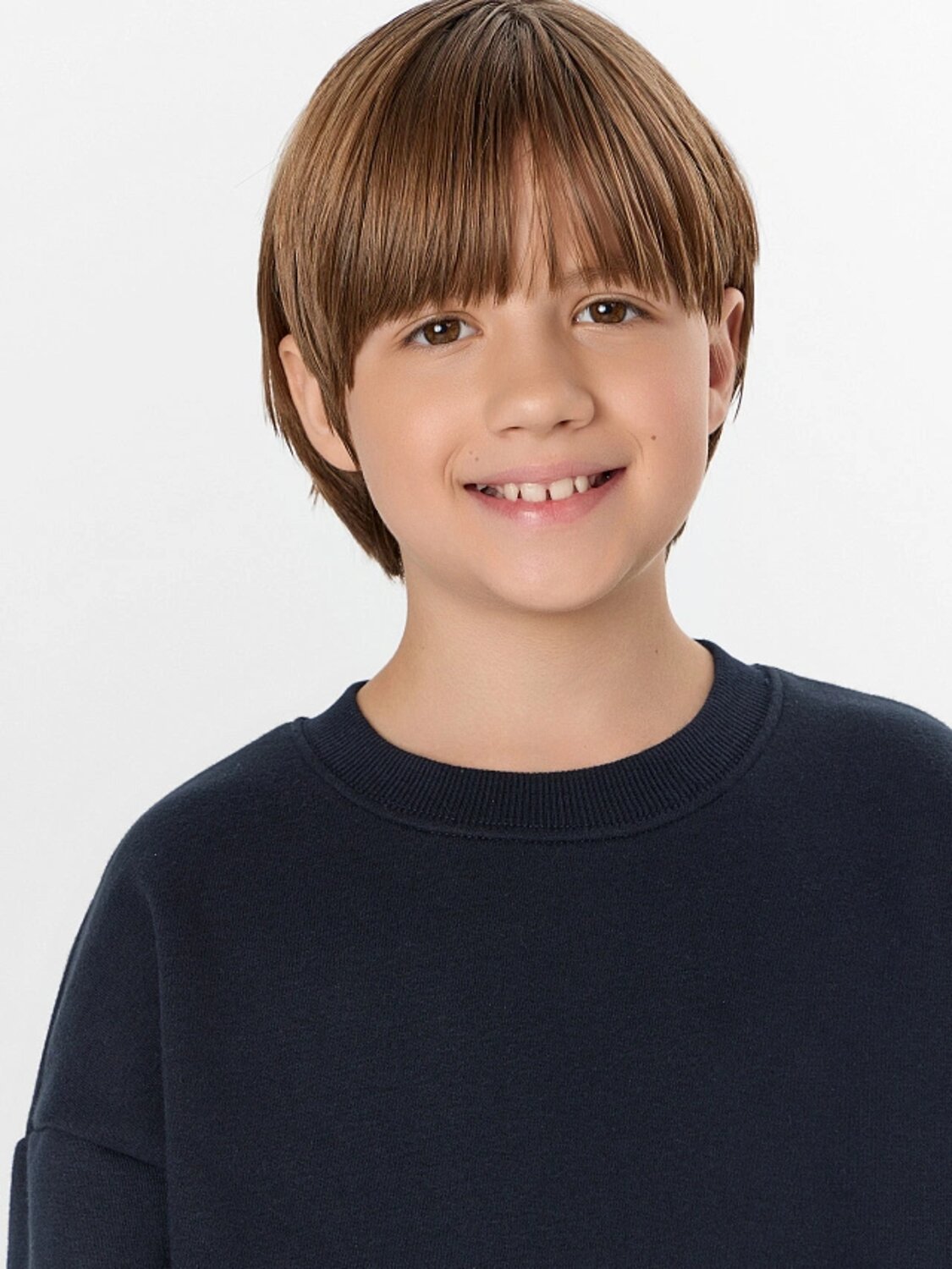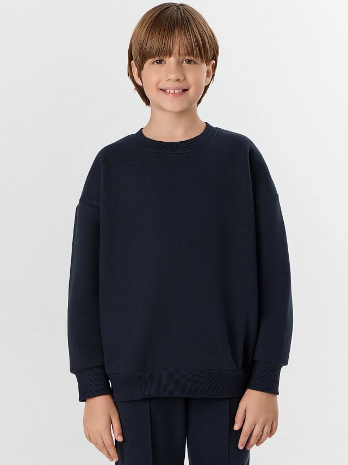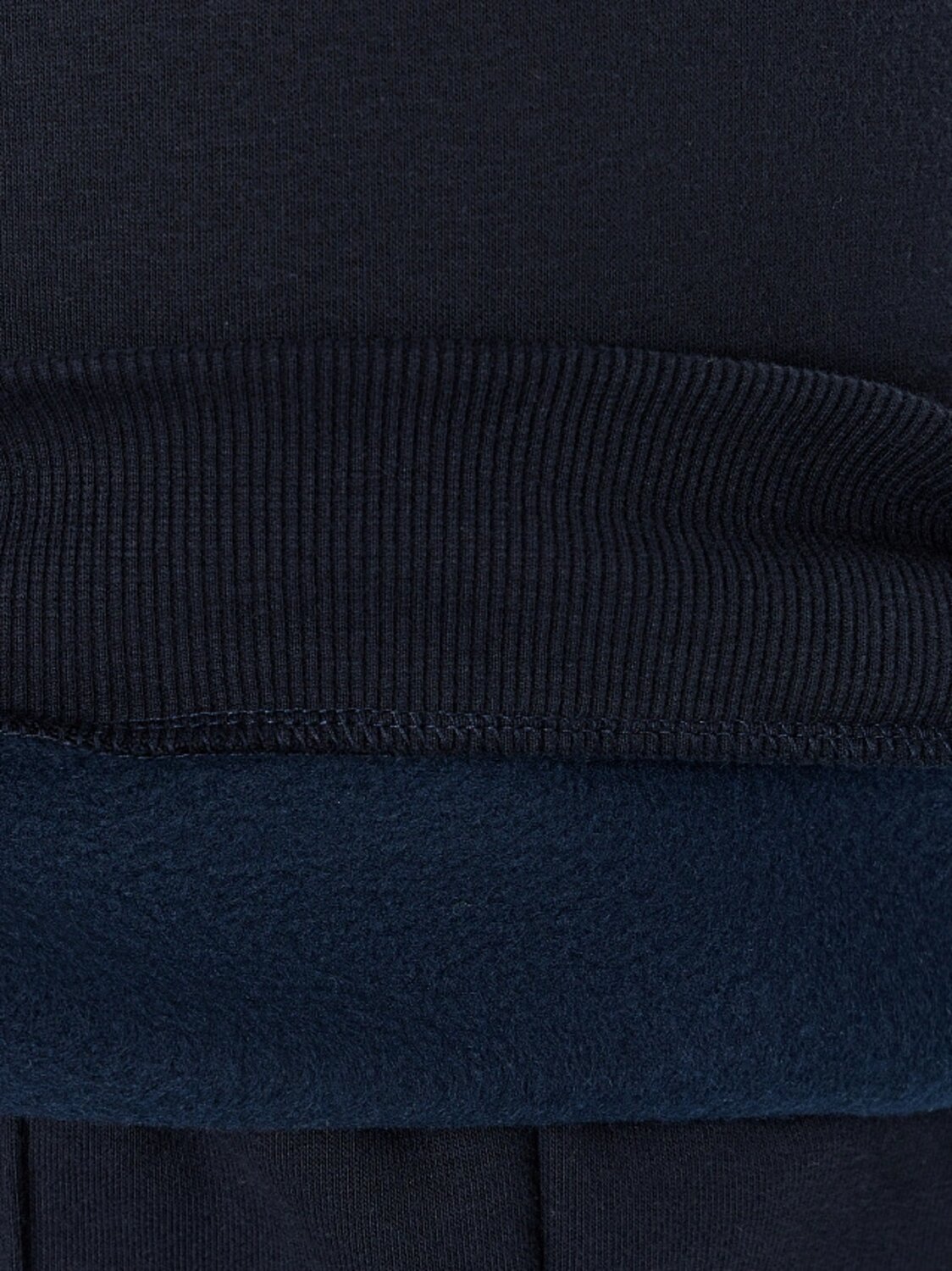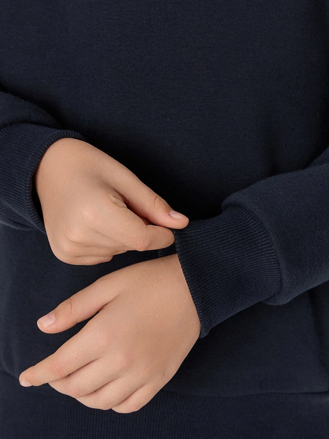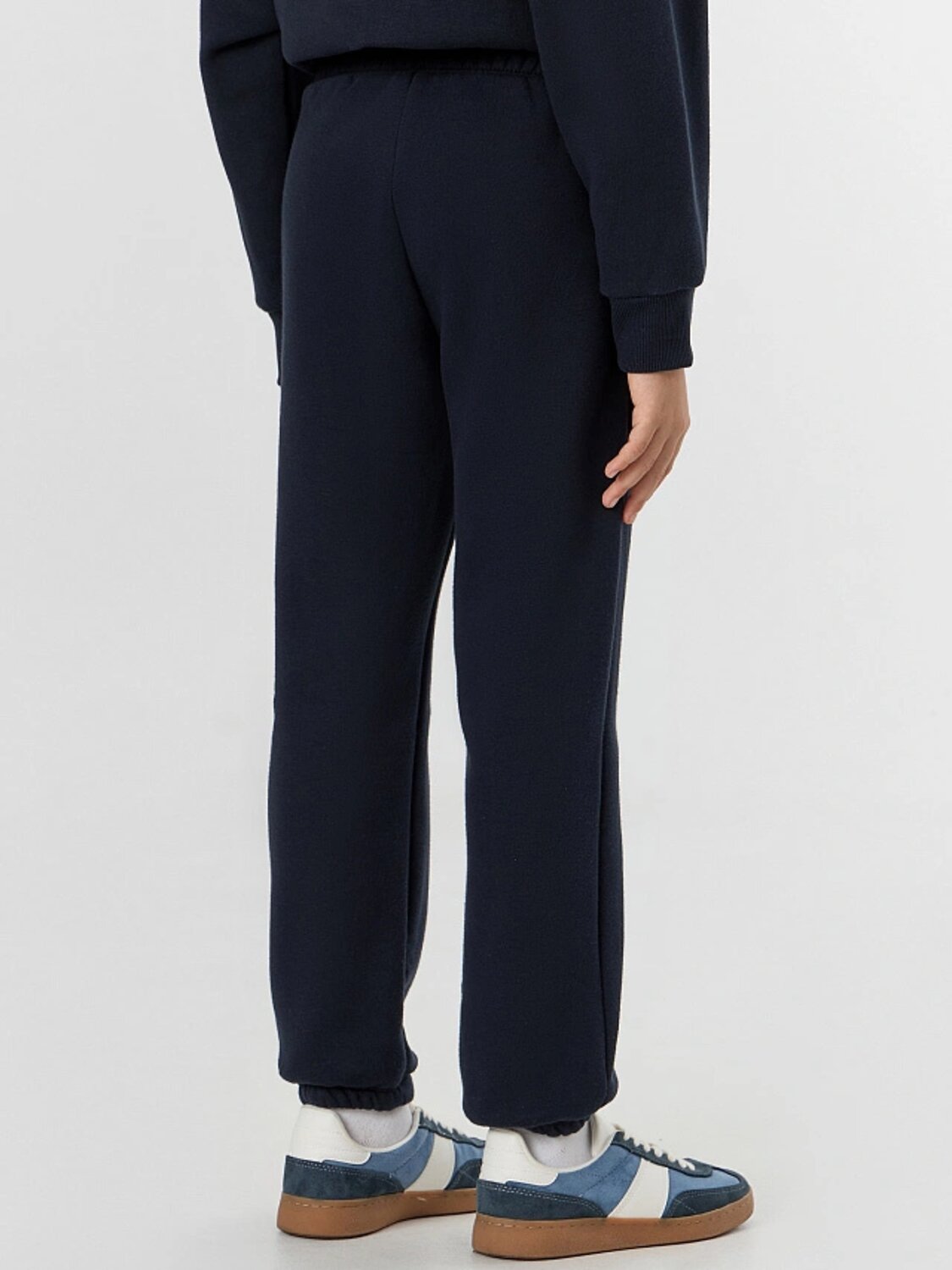 Свитшот прямого силуэта. Рукава длинные, втачные. Линия плеча спущена. Горловина круглой формы c окантовкой из рибаны. Низ рукавов и изделия обработаны рибаной . Брюки- джогеры с карманами с отрезным бочком. Пояс отрезной с внутренней эластичной тесьмой 40RV.На передних половинках выполнена декоративная отстрочка по центру. Низ изделия обработан швом в подгибку, внутрь застрочена эластичная тесьма 20RV.
