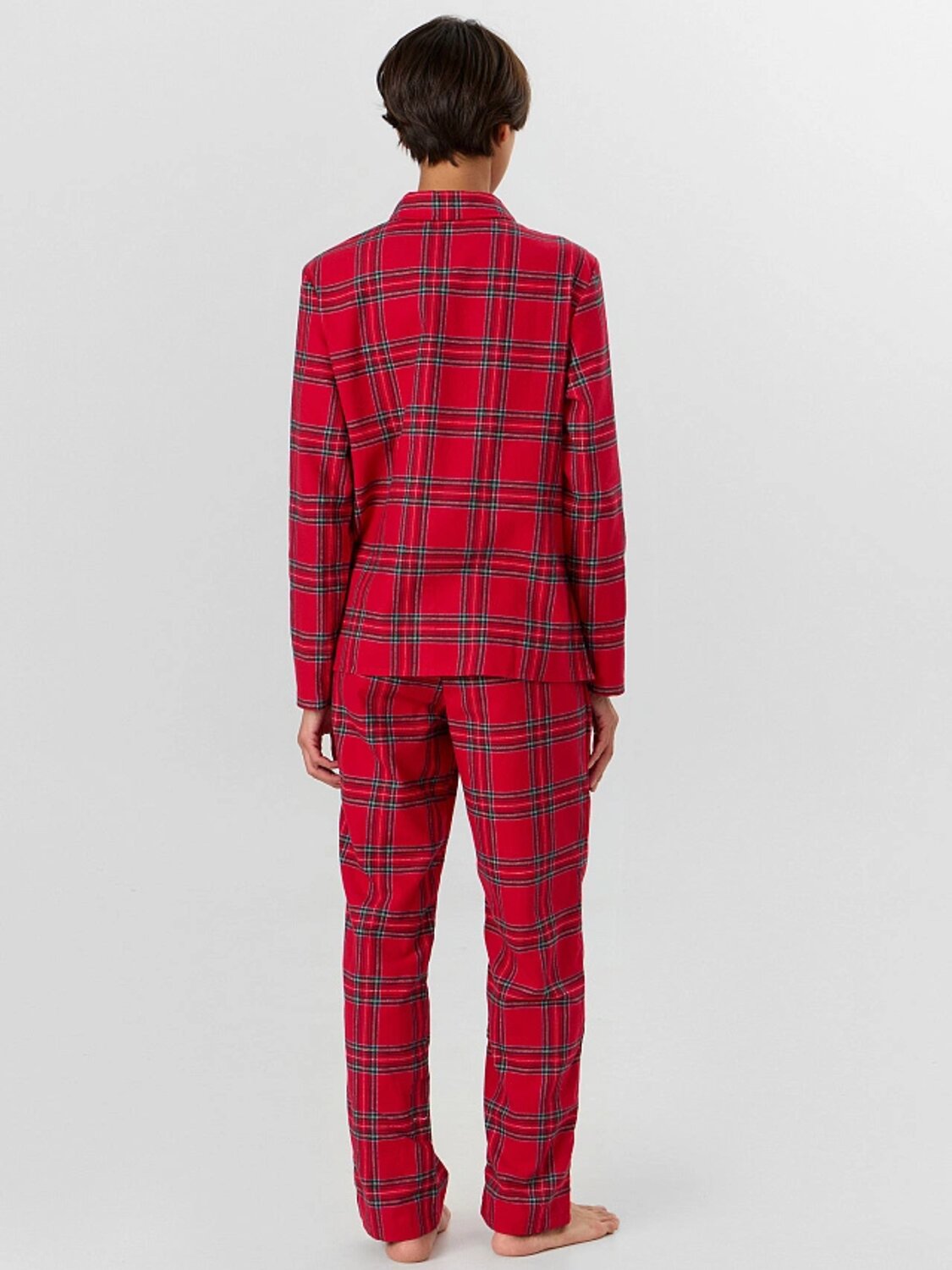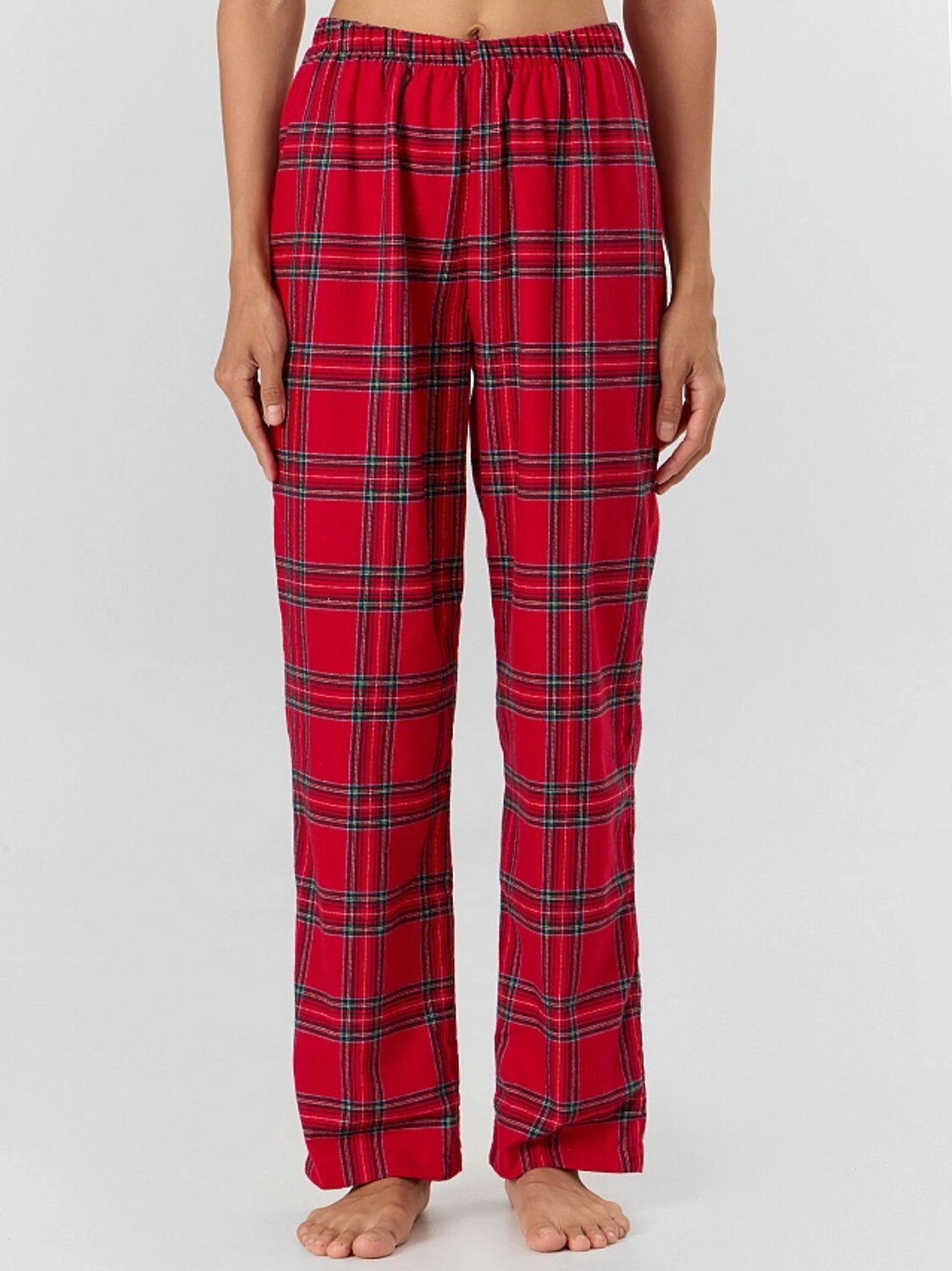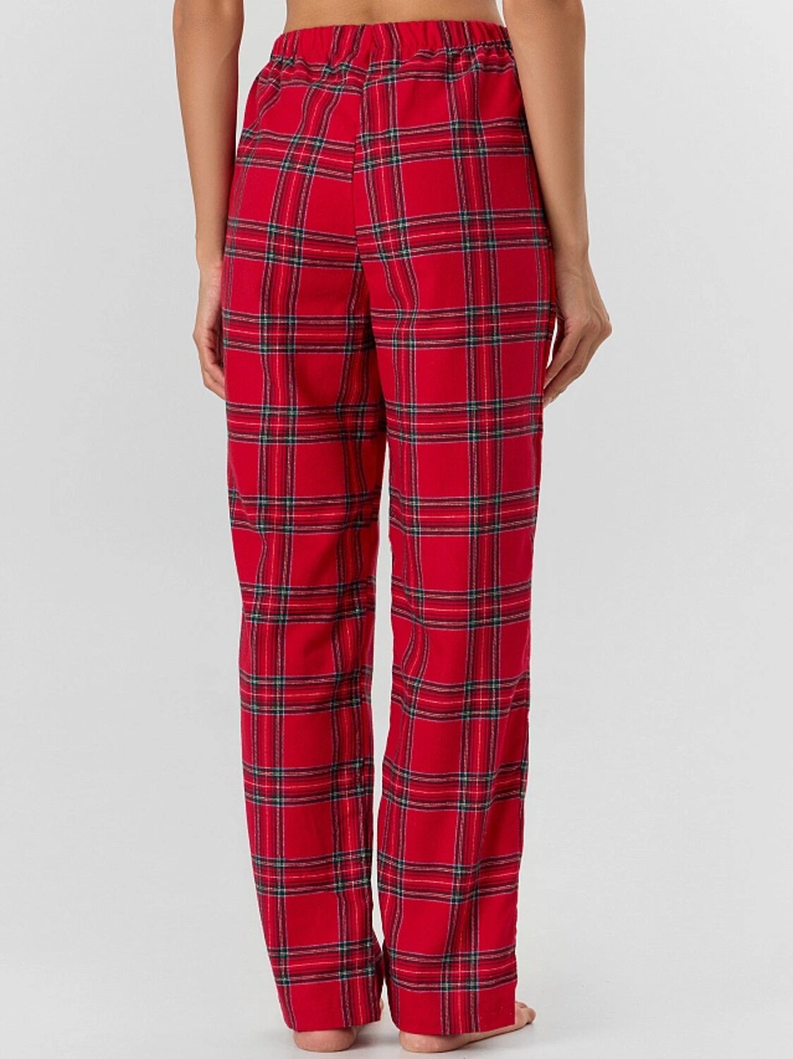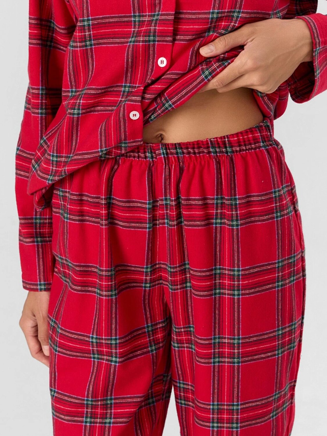 Брюки с широким эластичным поясом мягко сидят на талии, не оставляя следов, а клетчатый рисунок придает образу теплоту и домашний шарм. Этот комплект подойдет для сна, утреннего кофе или отдыха с книгой — он сочетает практичность и стиль. Если вы ищете, где купить домашнюю пижаму, которая объединяет натуральные материалы, продуманный крой и дизайн, этот набор станет вашим любимым выбором.