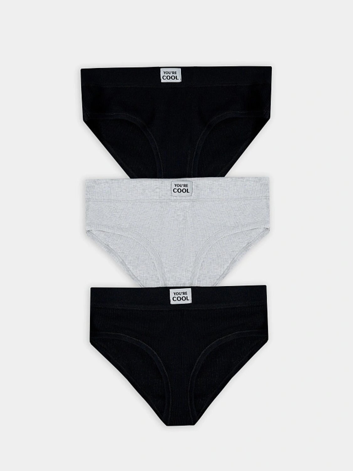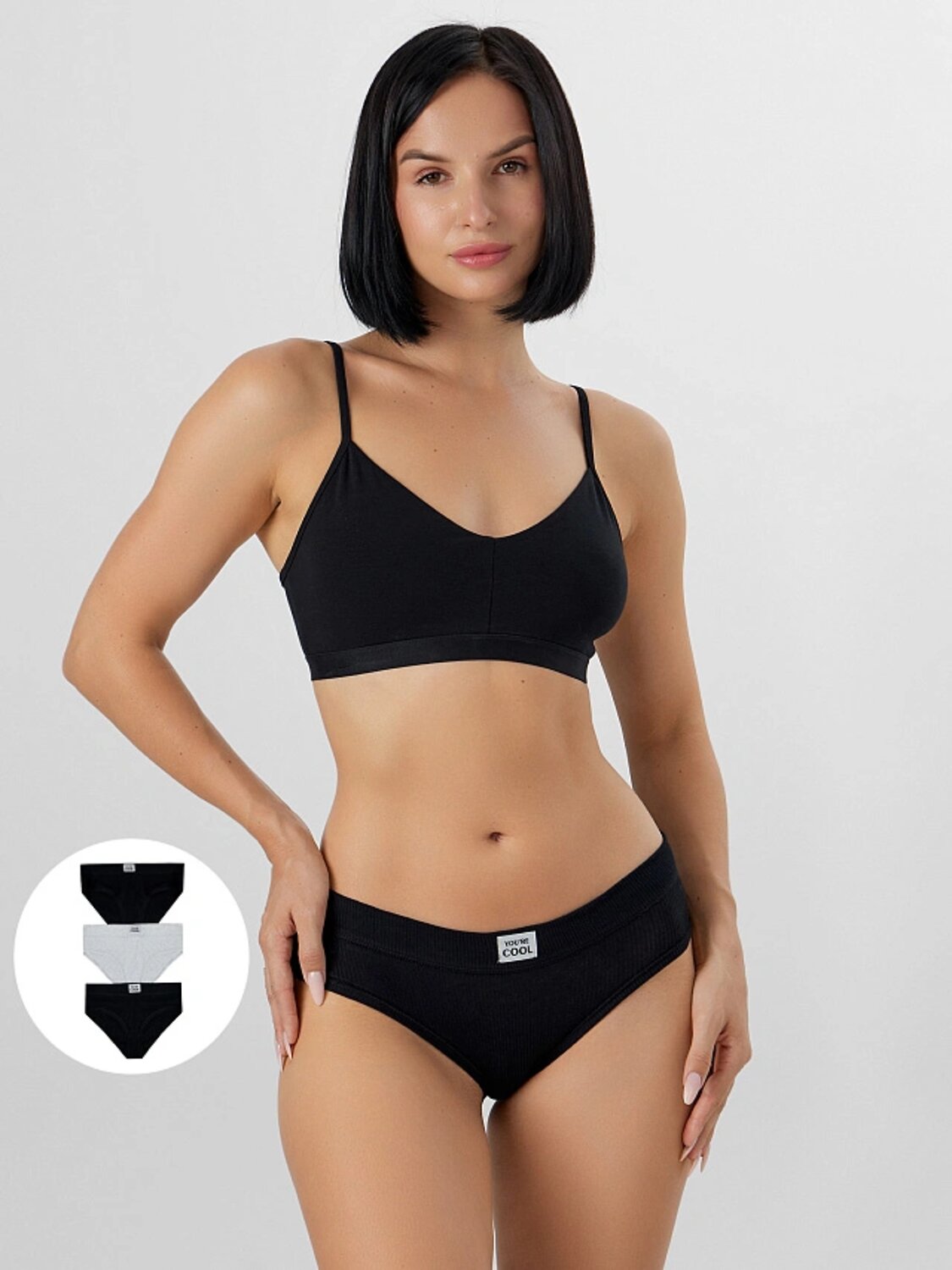 Трусы женские, средняя линия талии, силуэт - слипы. Передняя и задняя детали выполнены из рибаны. Верхний срез трусов обработан бейкой поперечной из рибаны, внутри жилка 6мм. Нижние срезы обработаны бейками поперечными из рибаны. Подкладка ластовицы из хлопка, отлетная по верхнему срезу.