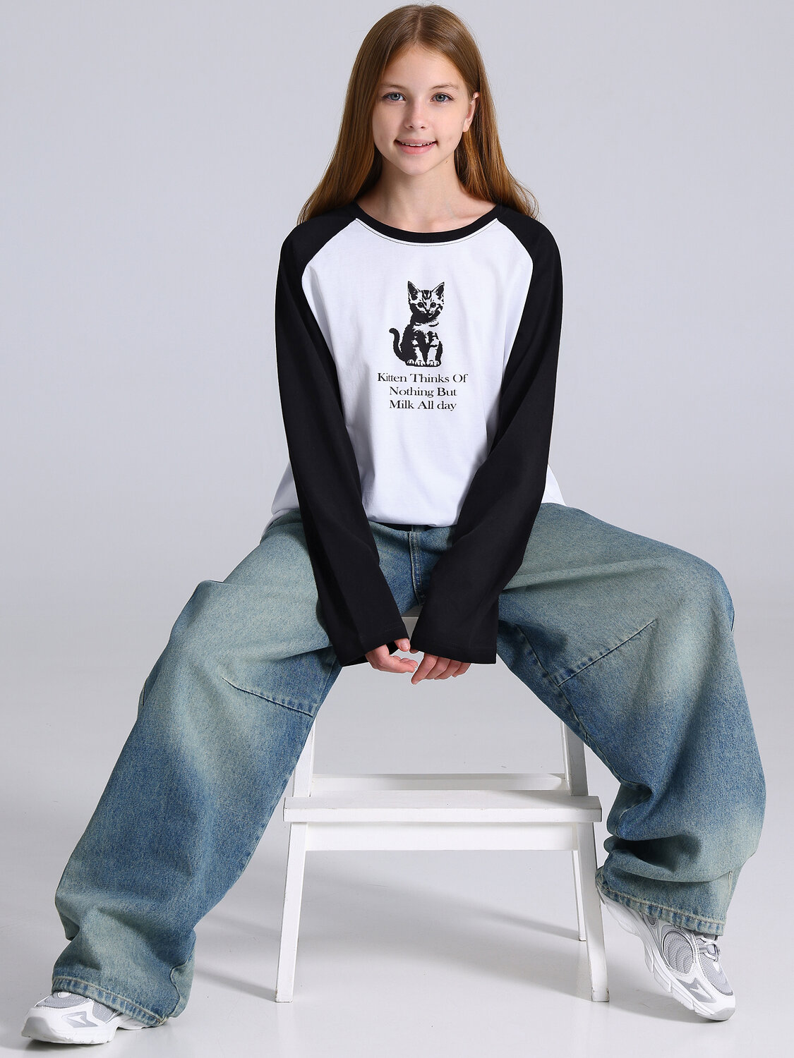 Лонгслив для девочки выполнен из кулира – тонкого хлопкового полотна. Изделие прямого силуэта с удлиненными рукавами-реглан. Вырез горловины обработан обтачкой из полотна-компаньона. Полочка украшена печатью. Уход: только машинная стирка (руками не стирать!) при температуре 40 градусов, без предварительного замачивания. Изделия с печатью и декором перед стиркой необходимо вывернуть на изнаночную сторону.