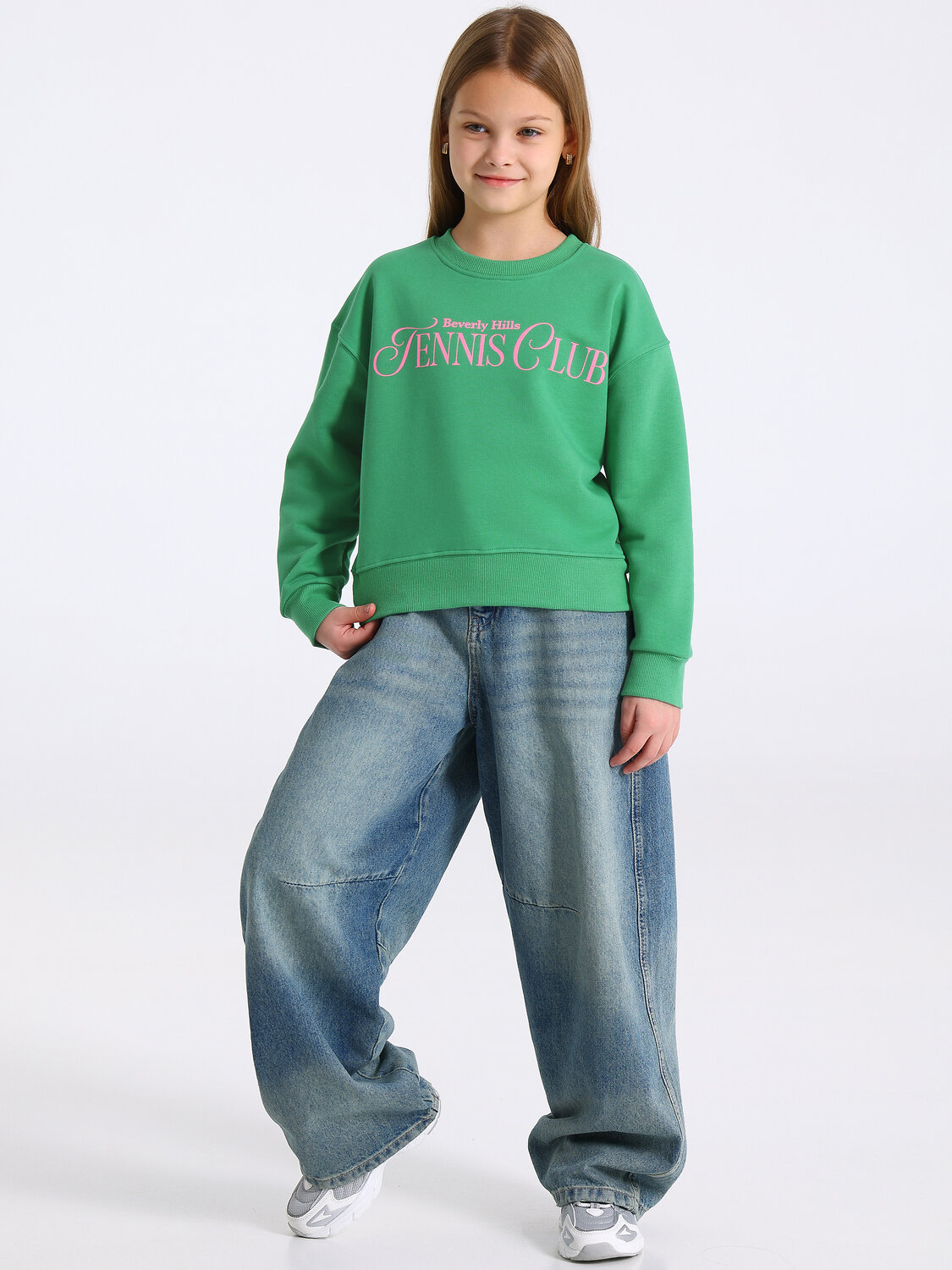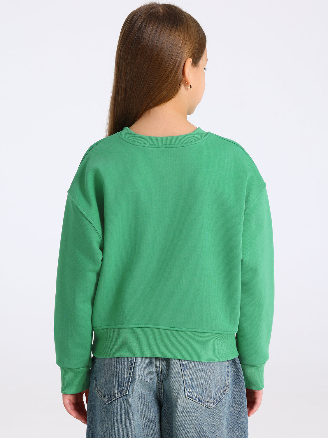Свитшот для девочки из футера - плотного теплого хлопкового полотна. Изделие свободного силуэта со спущенным плечом и поясом по низу изделия. Рукава длинные с манжетами. Полочка украшена печатью. Уход: только машинная стирка (руками не стирать!) при температуре 40 градусов, без предварительного замачивания. Изделия с печатью и декором перед стиркой необходимо вывернуть на изнаночную сторону.