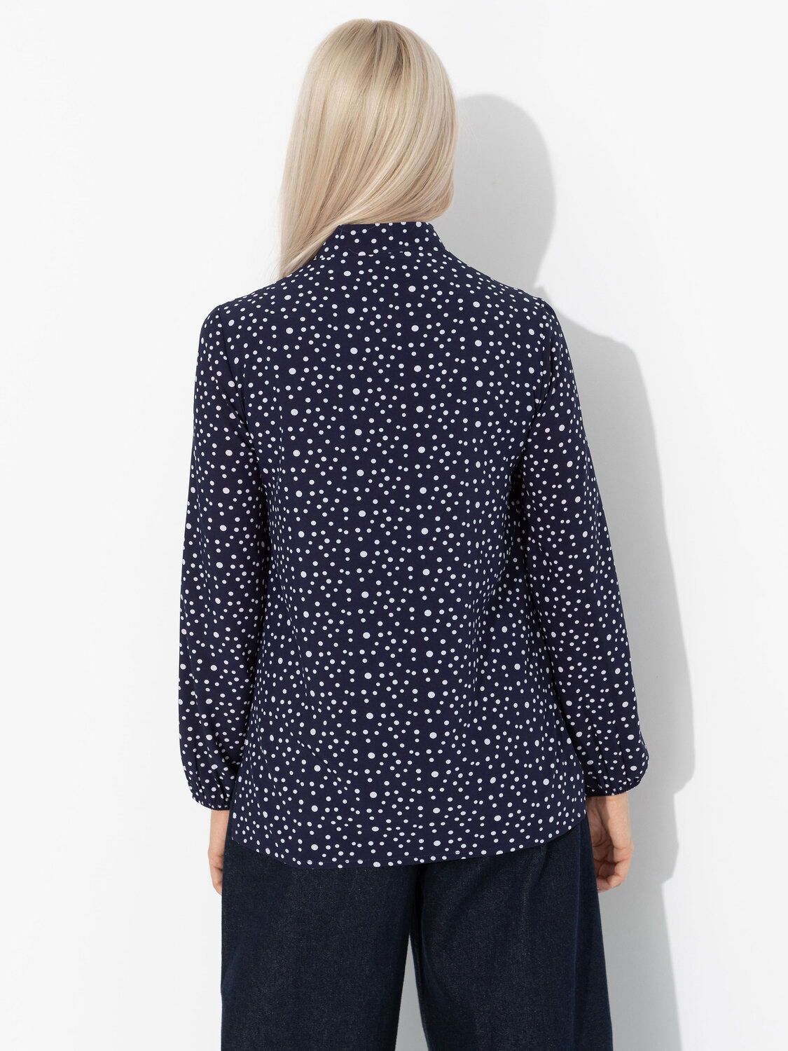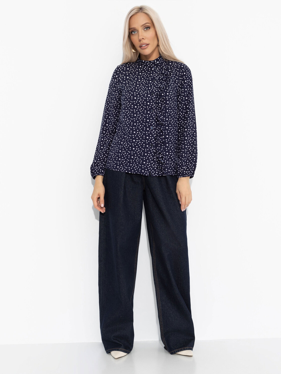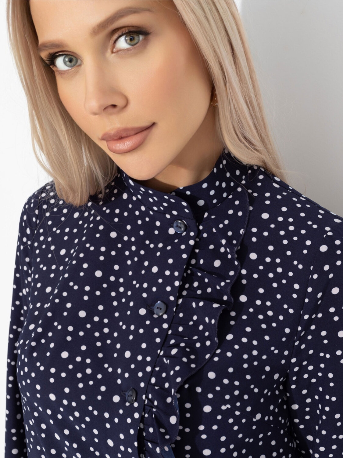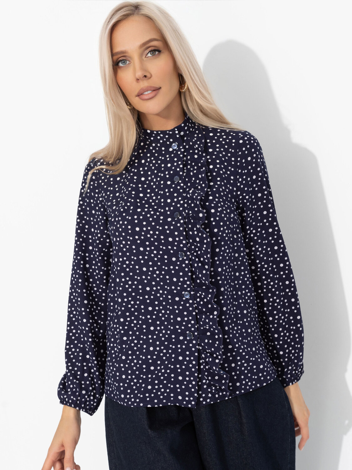 Блуза ЧАРУТТИ, как глава захватывающего романа. Деликатный узор напоминает о легком флирте и поцелуях под дождем. В блузе ЧАРУТТИ кажется, что вот-вот произойдет что-то волшебное — судьбоносная встреча или пустяковый повод заново влюбиться в жизнь. Помните, что любовь часто прячется в мелочах. Блуза приталенного кроя. Воротник-стойка. Расположение пуговиц сбоку. Есть декоративная сборка по линии пуговиц. Изделие хорошо смотрится в заправленном виде и навыпуск.