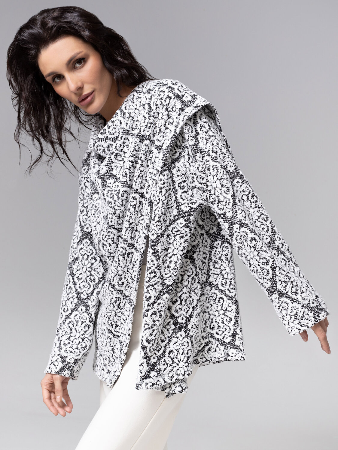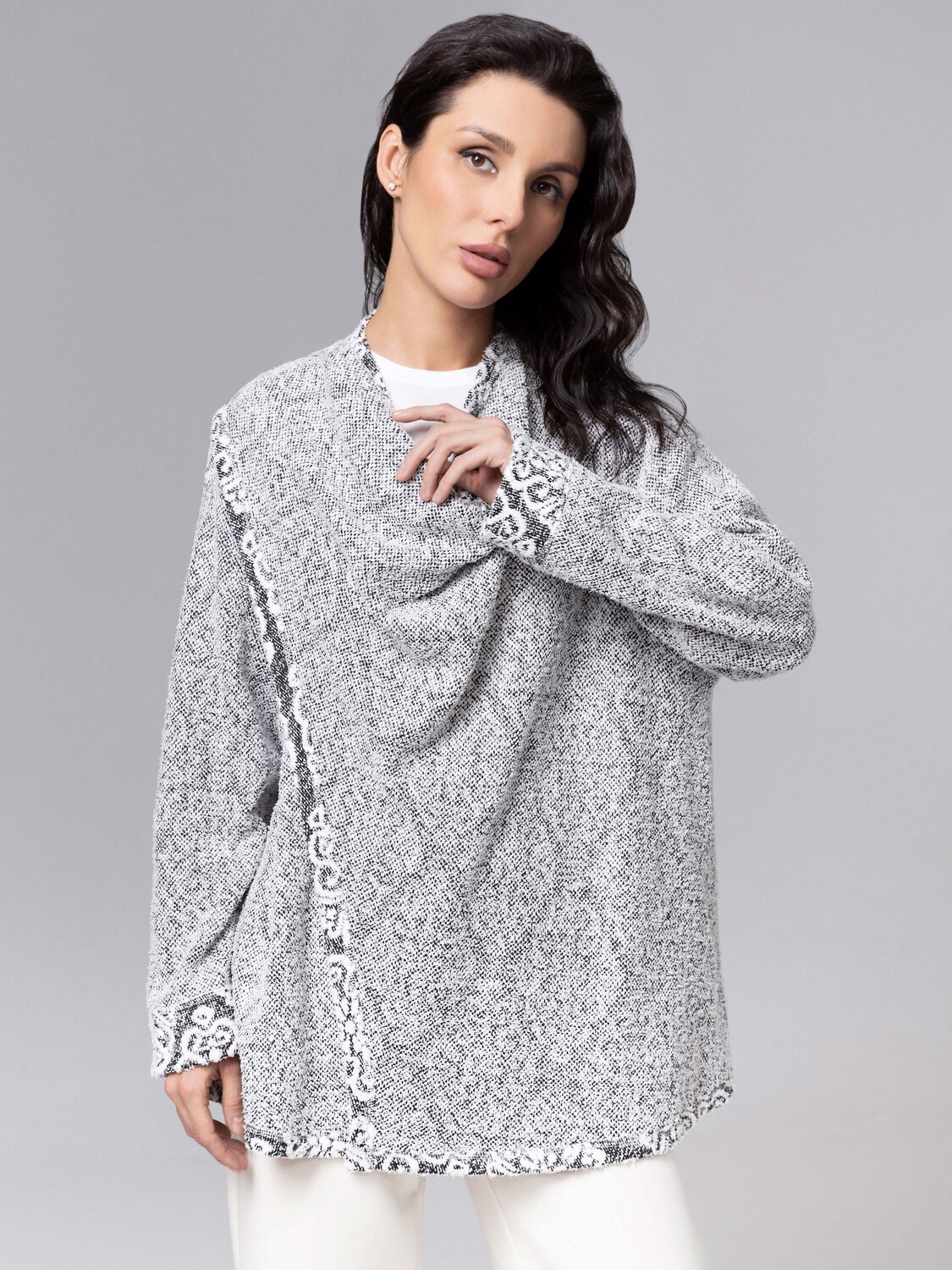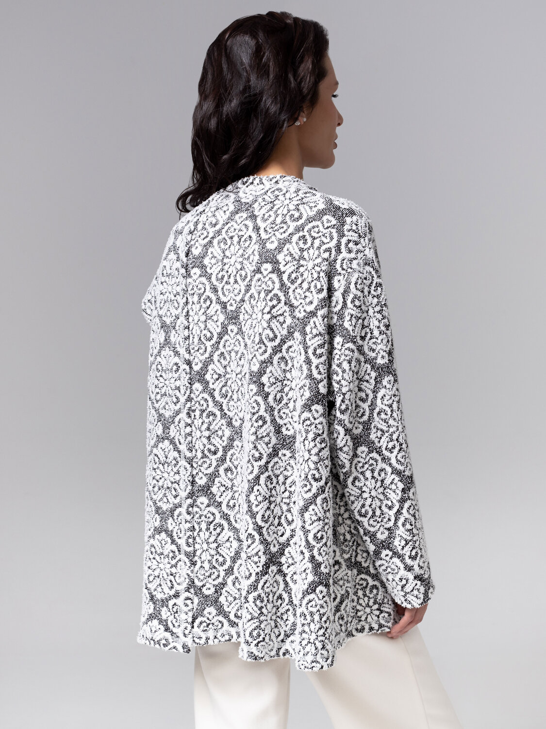 Этот кардиган – как два персонажа в одном: снаружи – деловая серьёзность, внутри – уютный плед для душевных разговоров. Меняйте сторону, как настроение. Вот он – настоящий «Секрет уверенности». Кардиган двустороний. Сложный конструктивный замысел позволяет создавть вариации образов. Многослойная фактура ткани, сочетает мягкость и эластичность высококачественного трикотажа, а крой позаботился о безупречной посадке. Идеально подойдет на любой тип фигуры. Кардиган one size. До 52 размера.