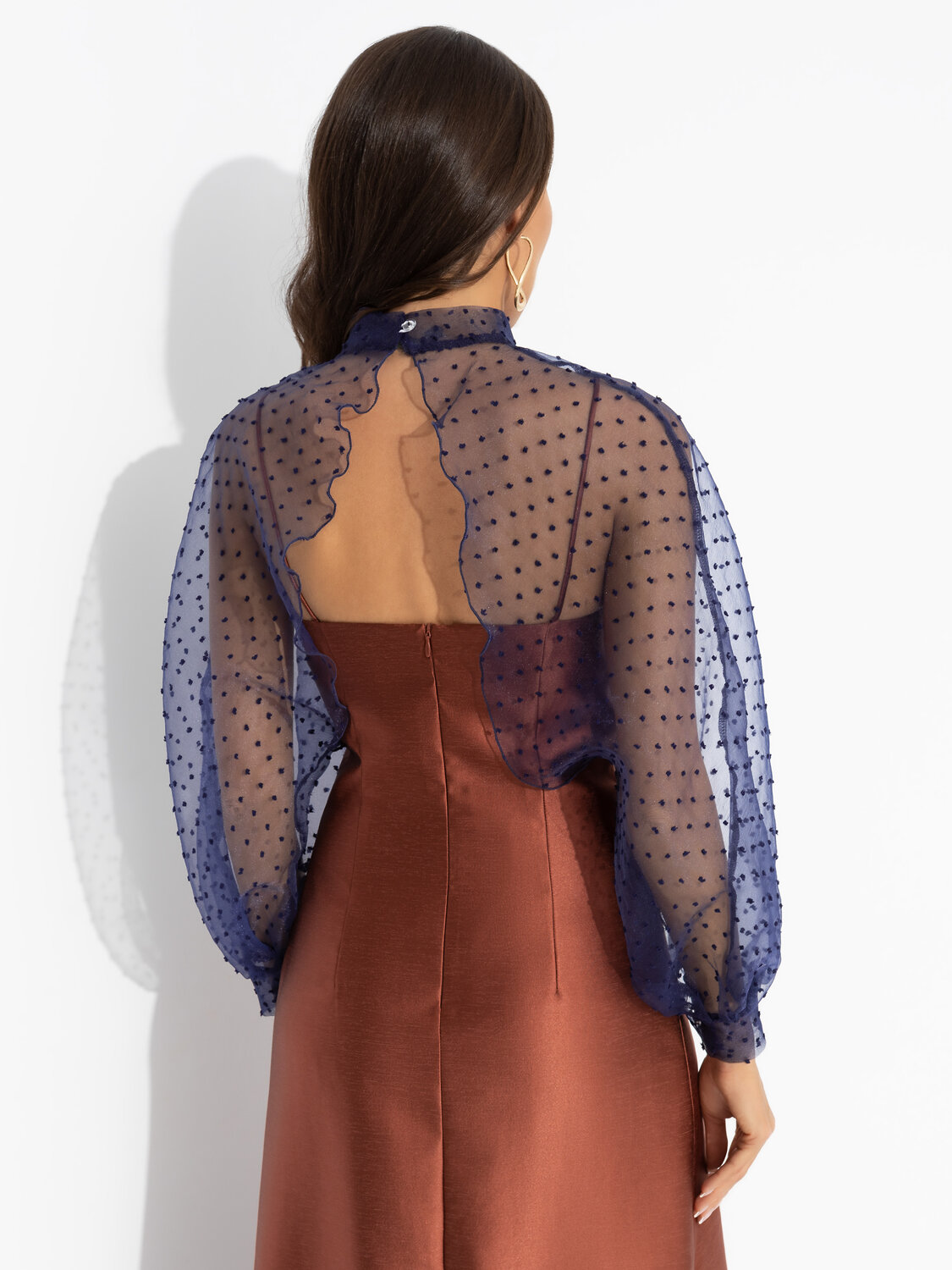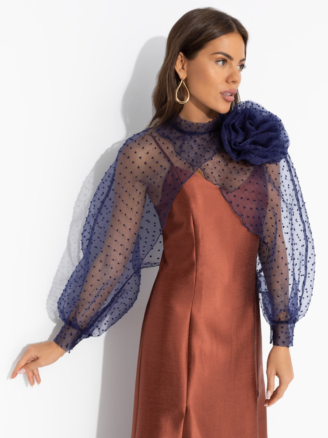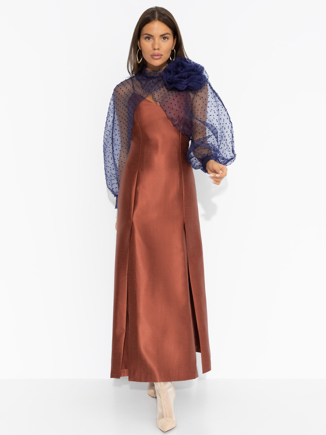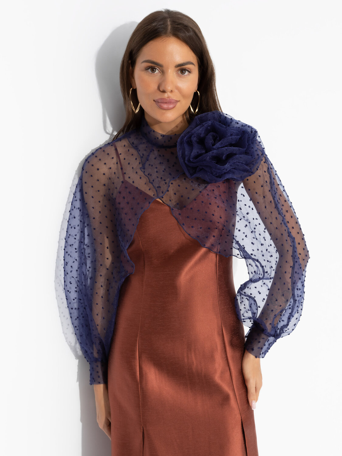 Вы договорились пойти в театр после работы. Нужно было видеть его лицо, когда ты достала из сумочки болеро ЧАРУТТИ и быстро надела. Ты выбрала быть нарядной в театре и сэкономила вам время, чтобы выпить аперитив перед постановкой. Болеро прозрачное, брошь-роза съемная. Деликатная пуговица в тон изделия сзади.