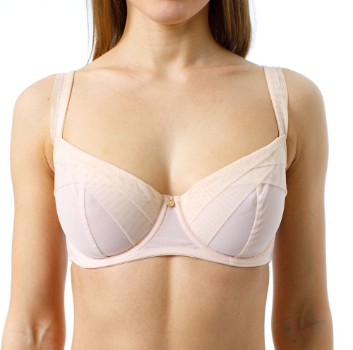 Бюстгальтер мягкая чашка на каркасах выполнен из эластичной сетки. Стан бюстгальтера выполнен из эластичной сетки с боковыми пластинами упругости. Бретели регулируемые, несъемные. Украшение: медальон с логотипом COQUETTE REVUE.