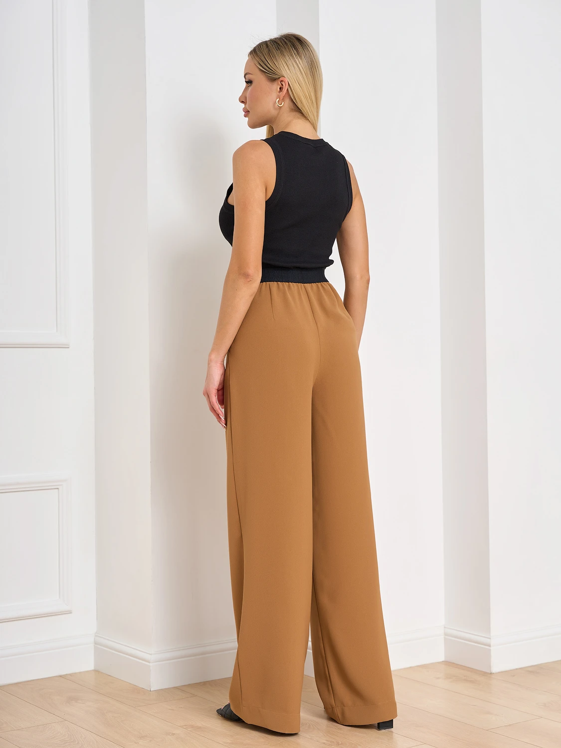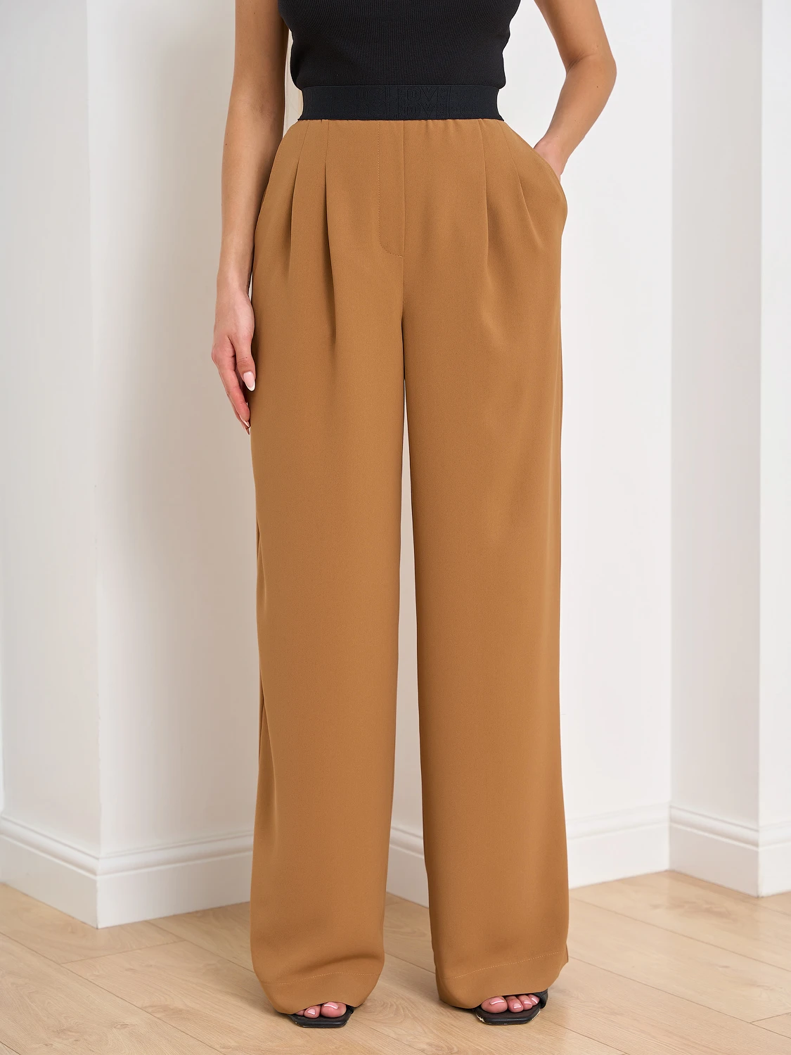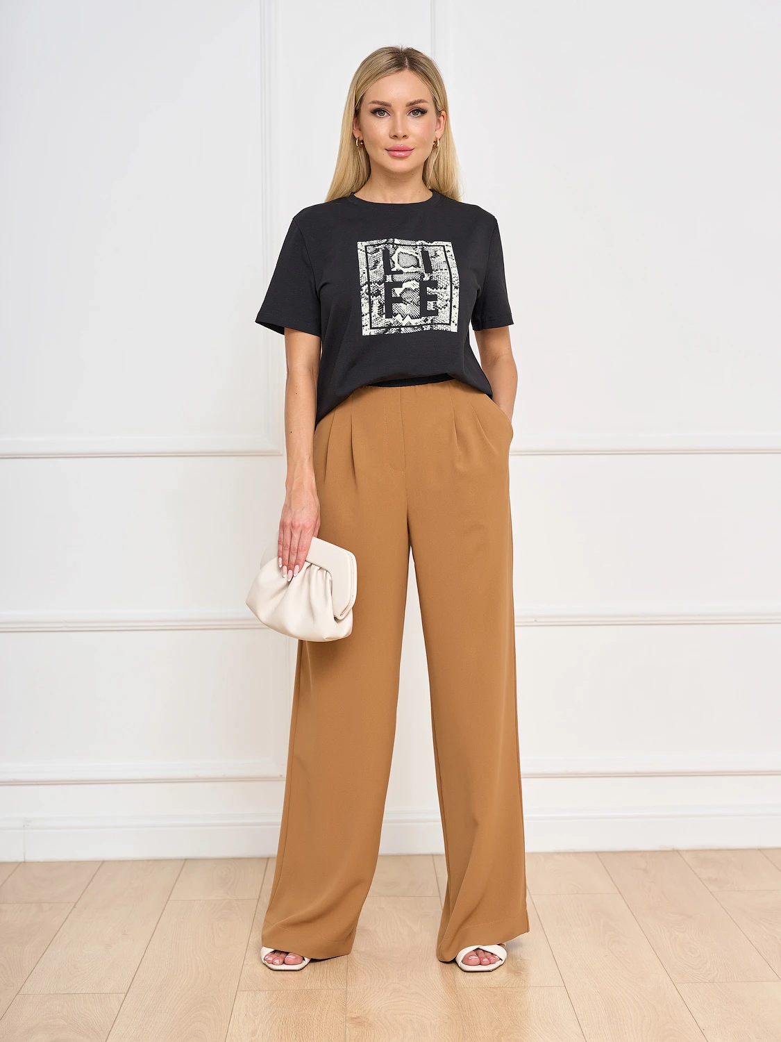 Широкие брюки с защипами по переду.