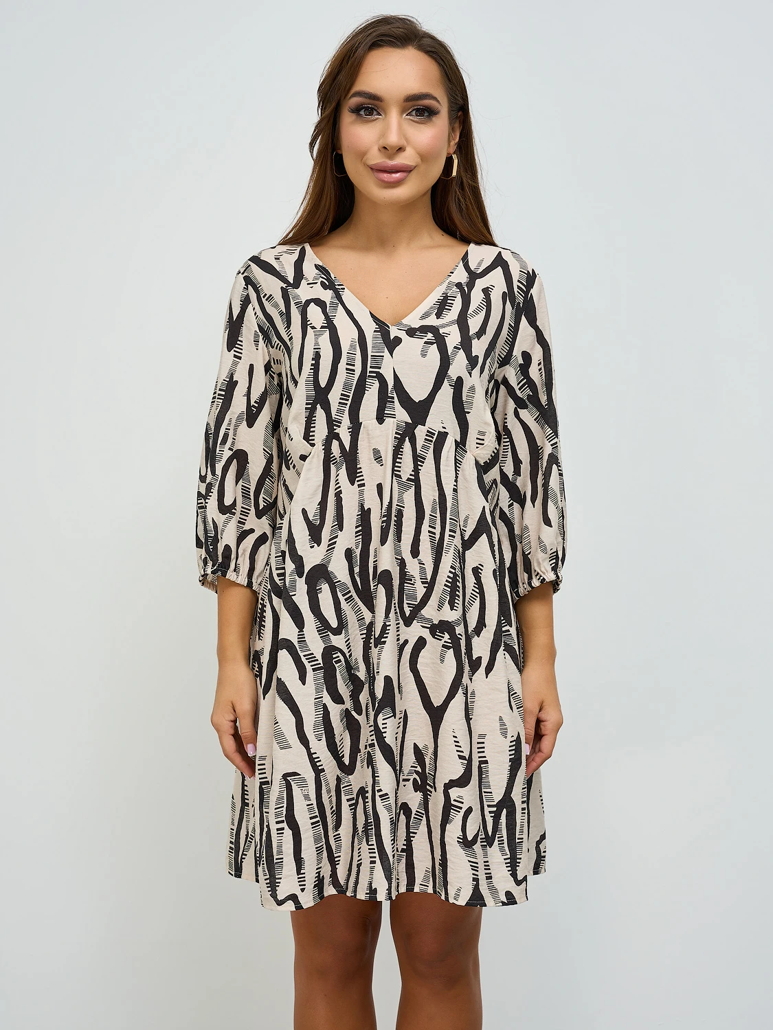 Короткое платье А-силуэта, отрезное под грудью.
