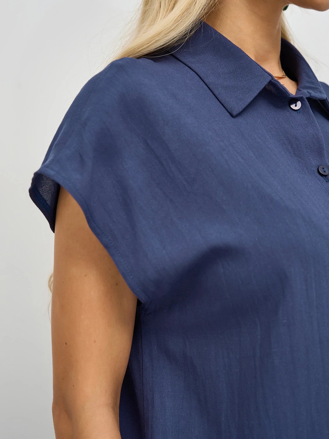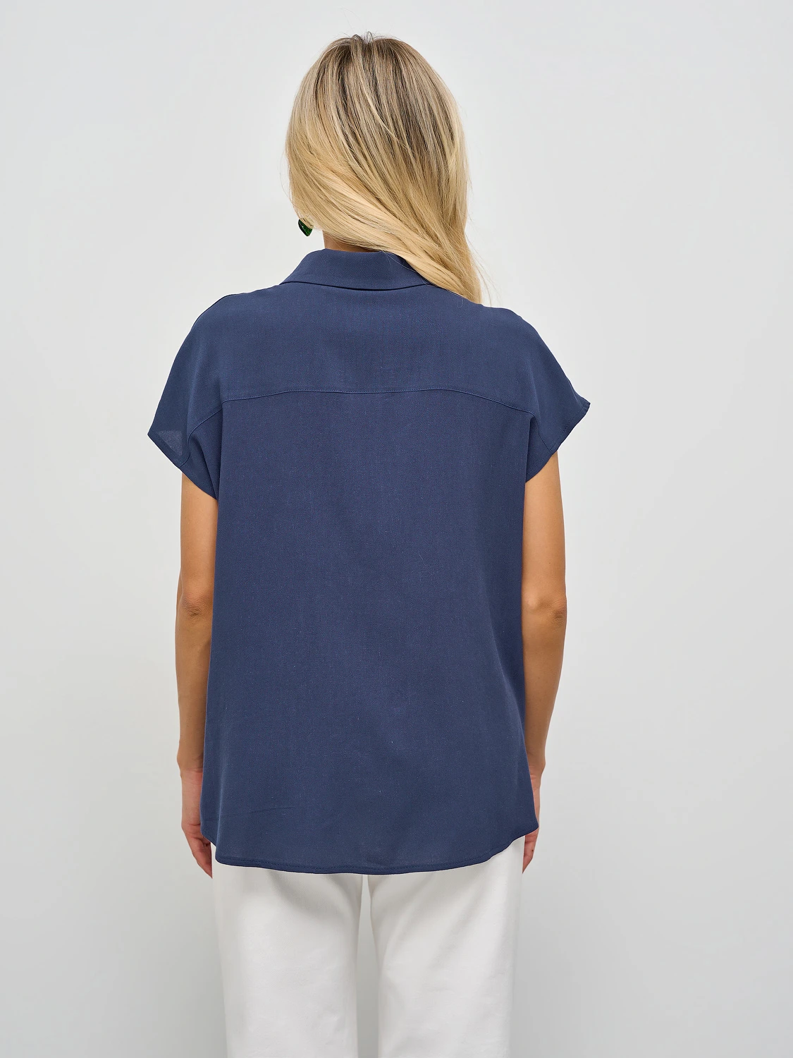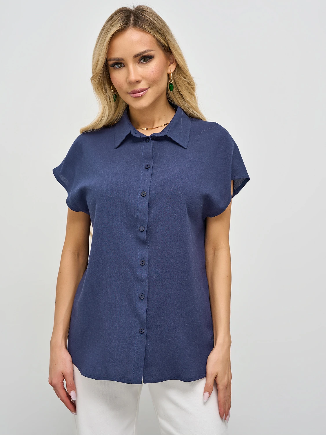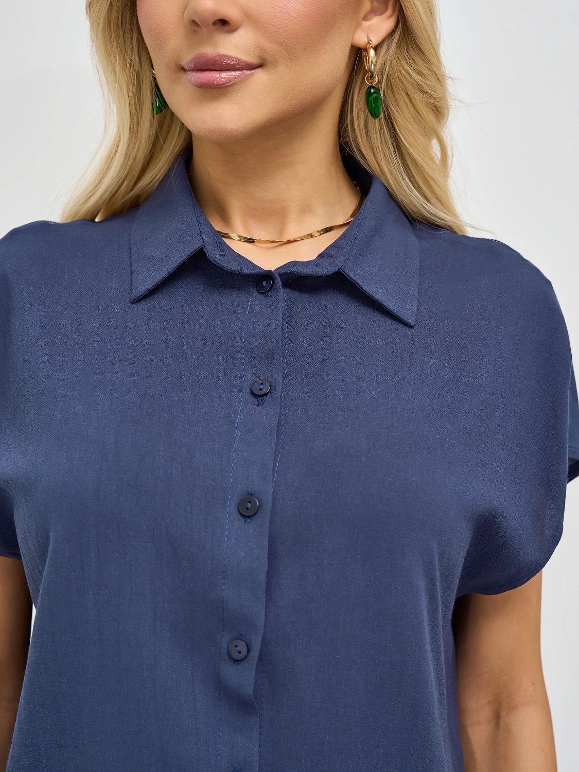 Блузка свободного силуэта с коротким цельнокроеным рукавом.