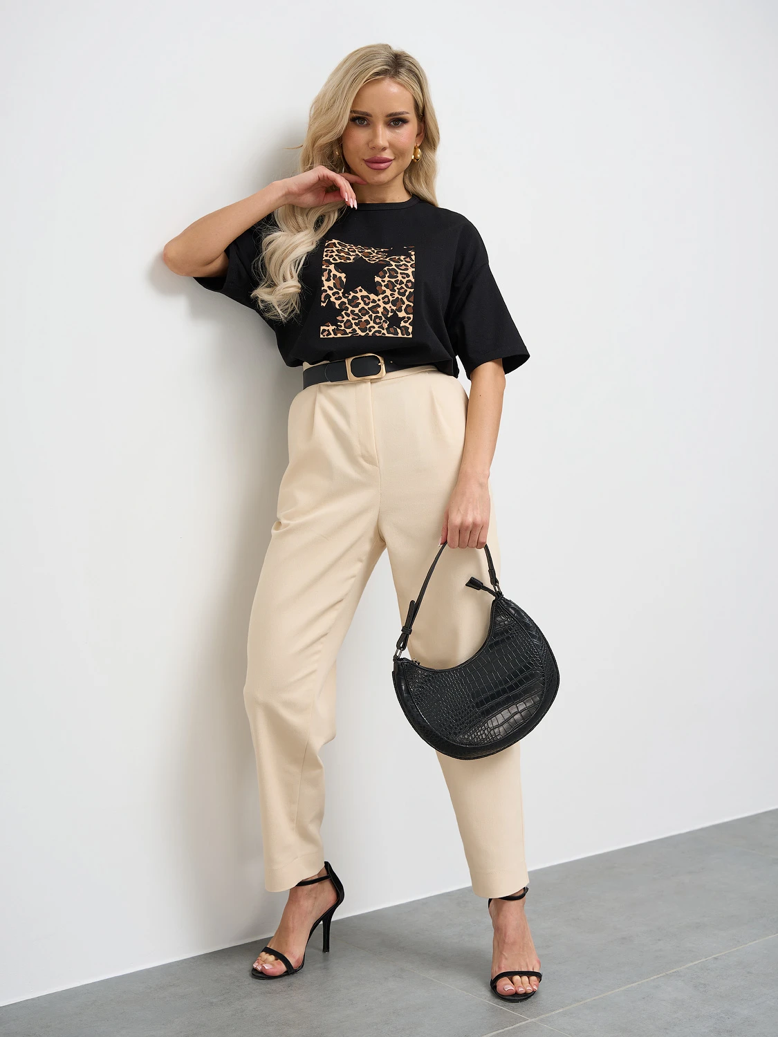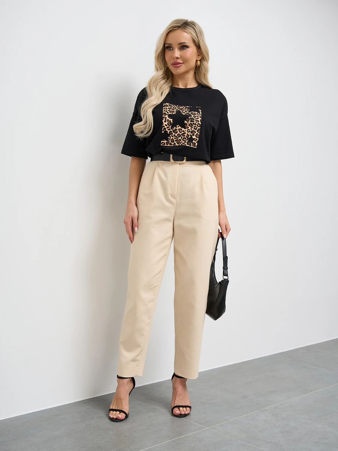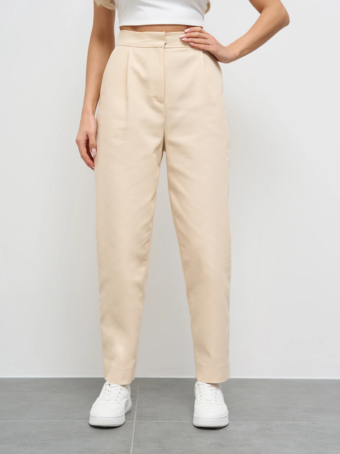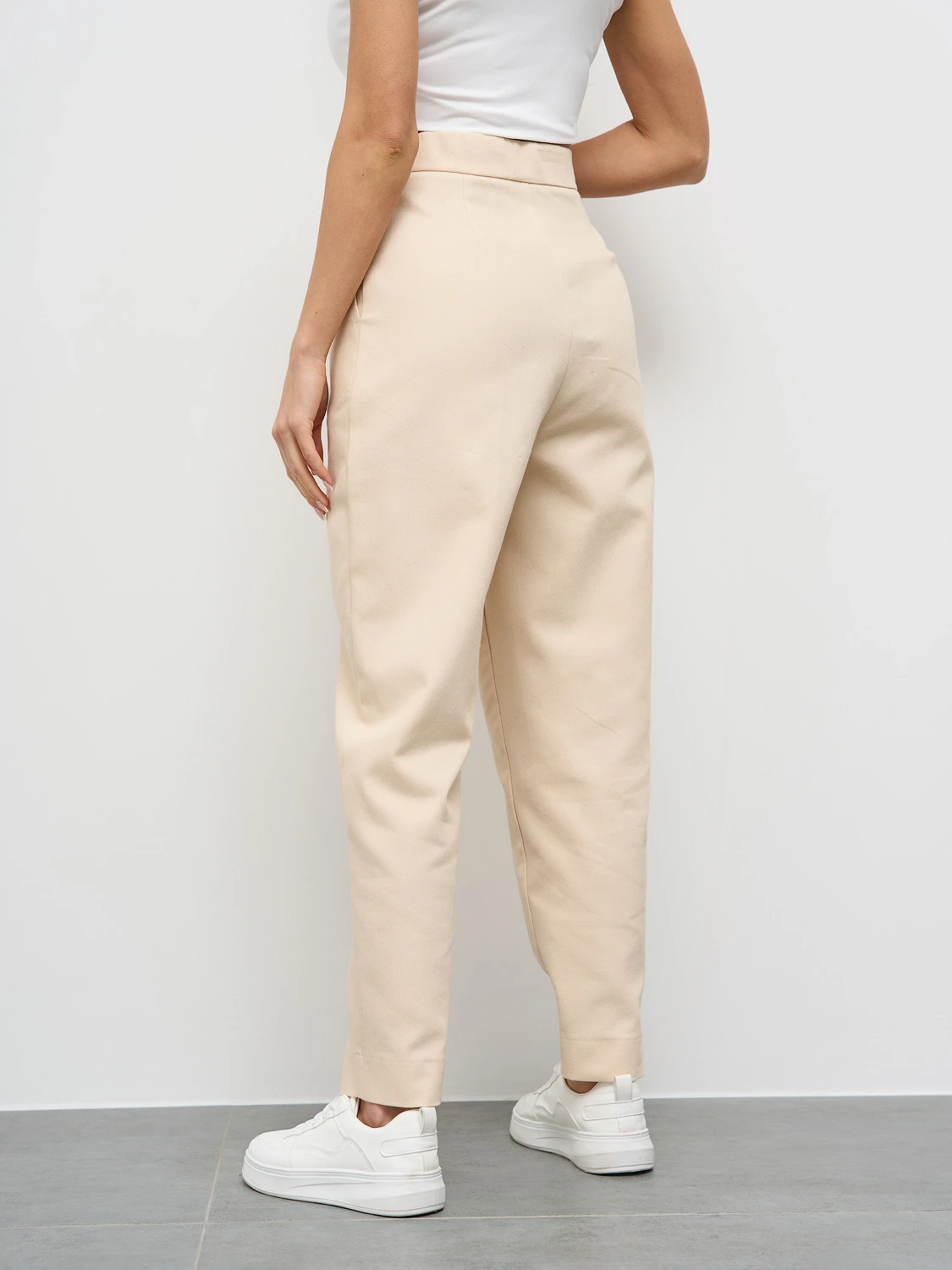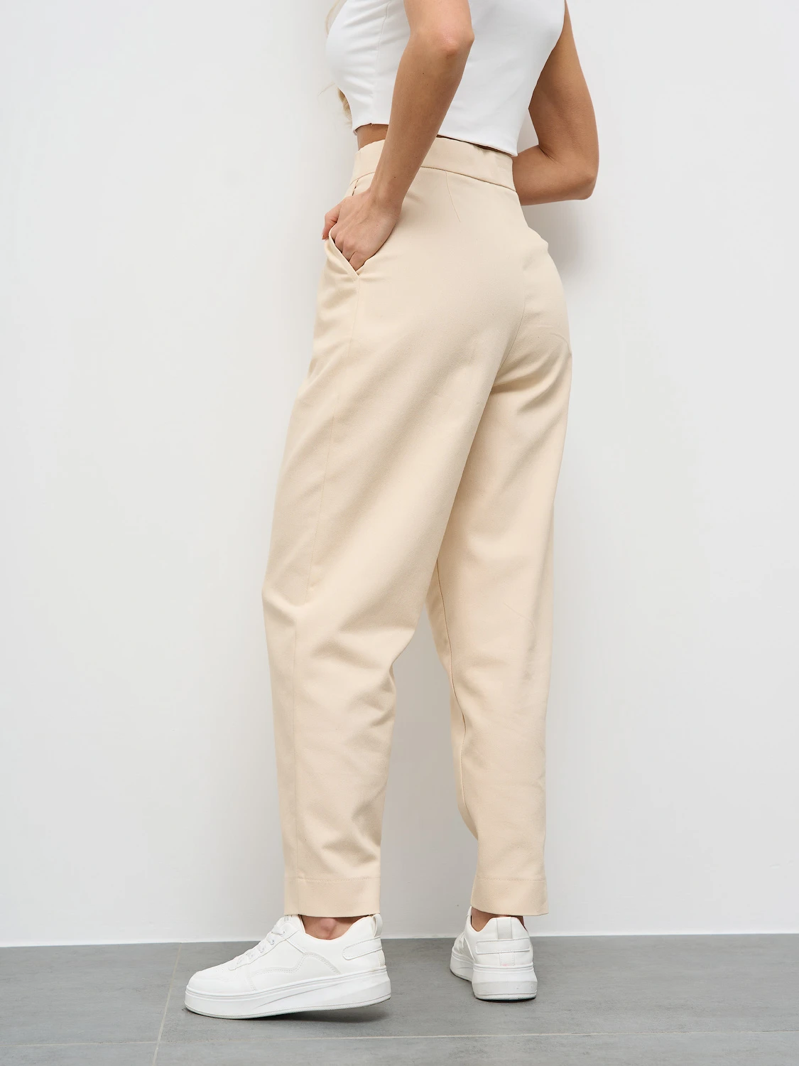 Укороченные брюки-бананы из плотной хлопковой ткани.