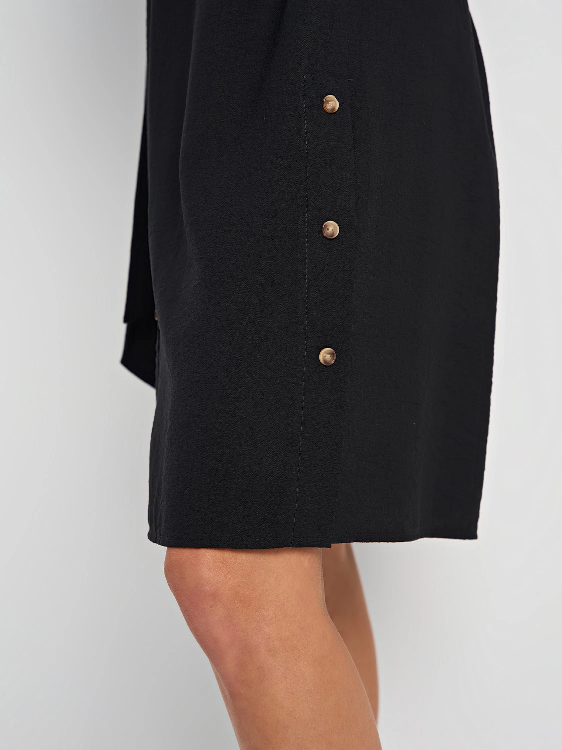 В боковых швах расположены декоративные планки с роговыми пуговицами.