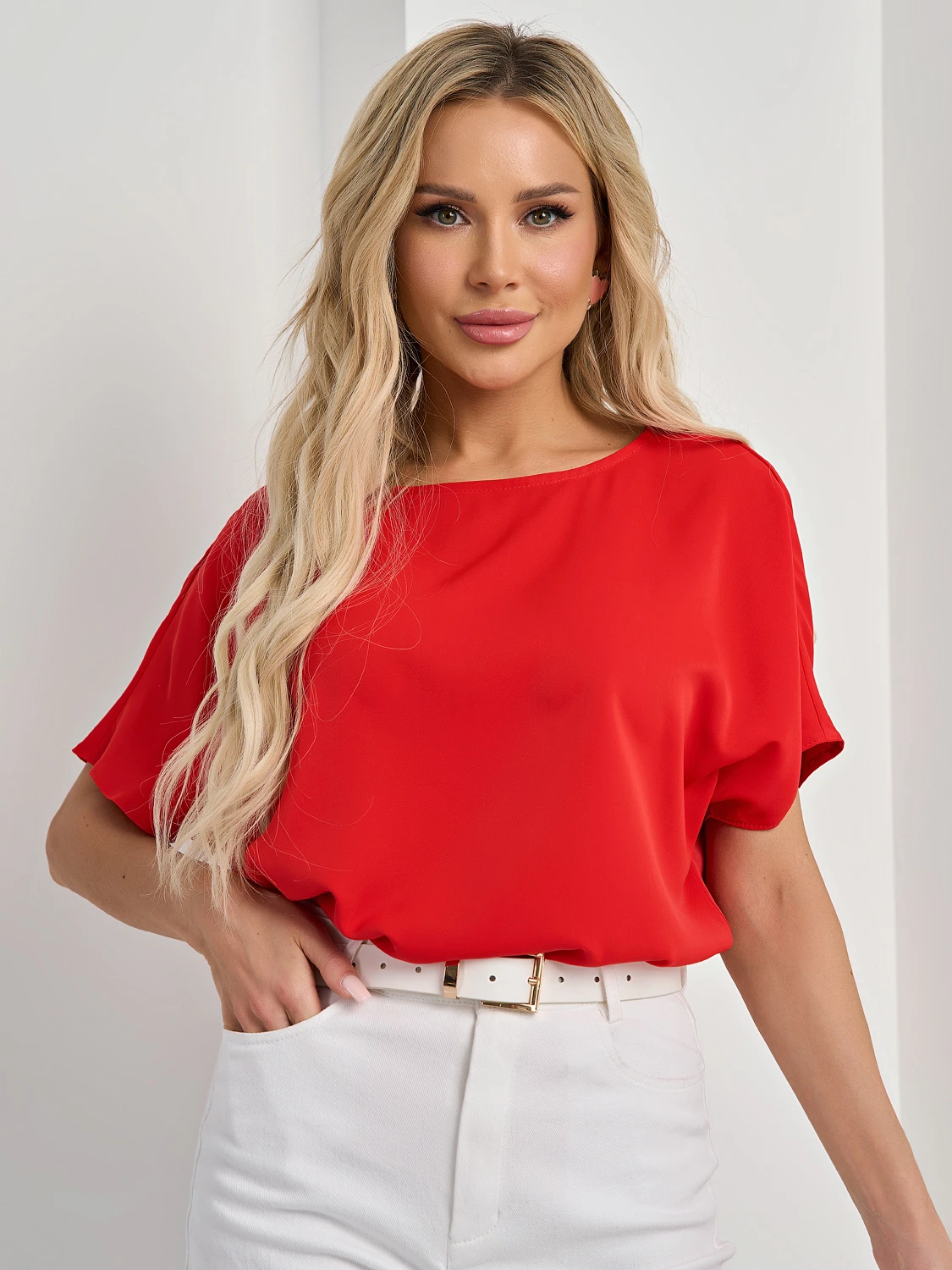 Блузка прямого силуэта.