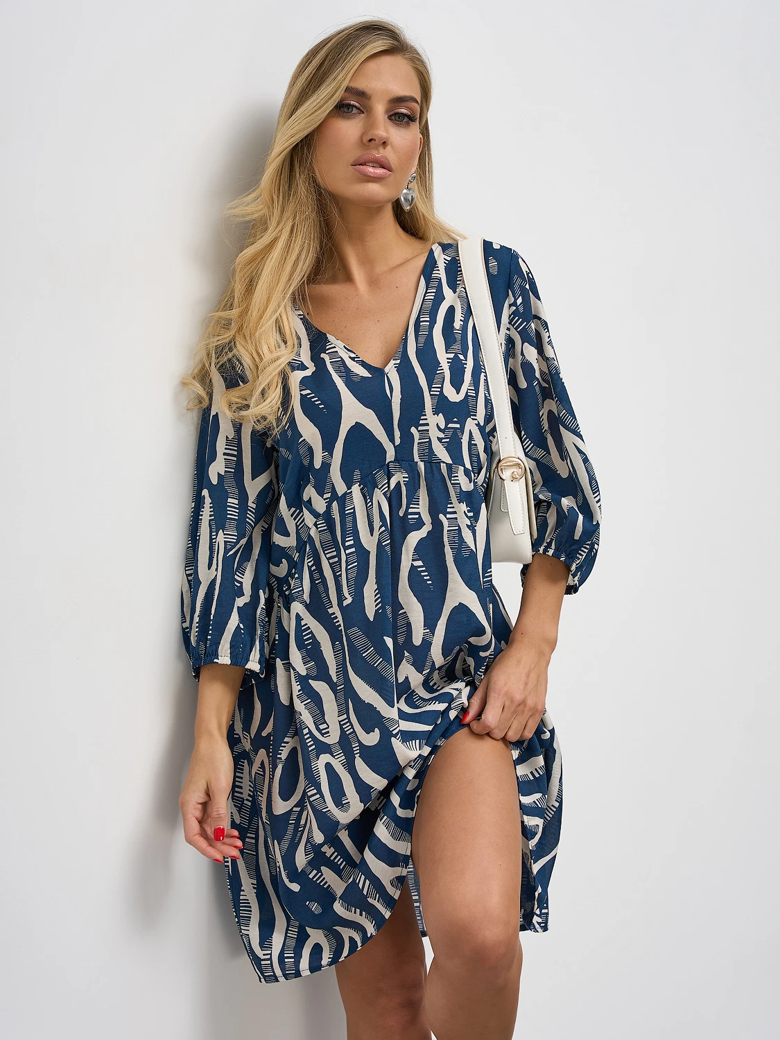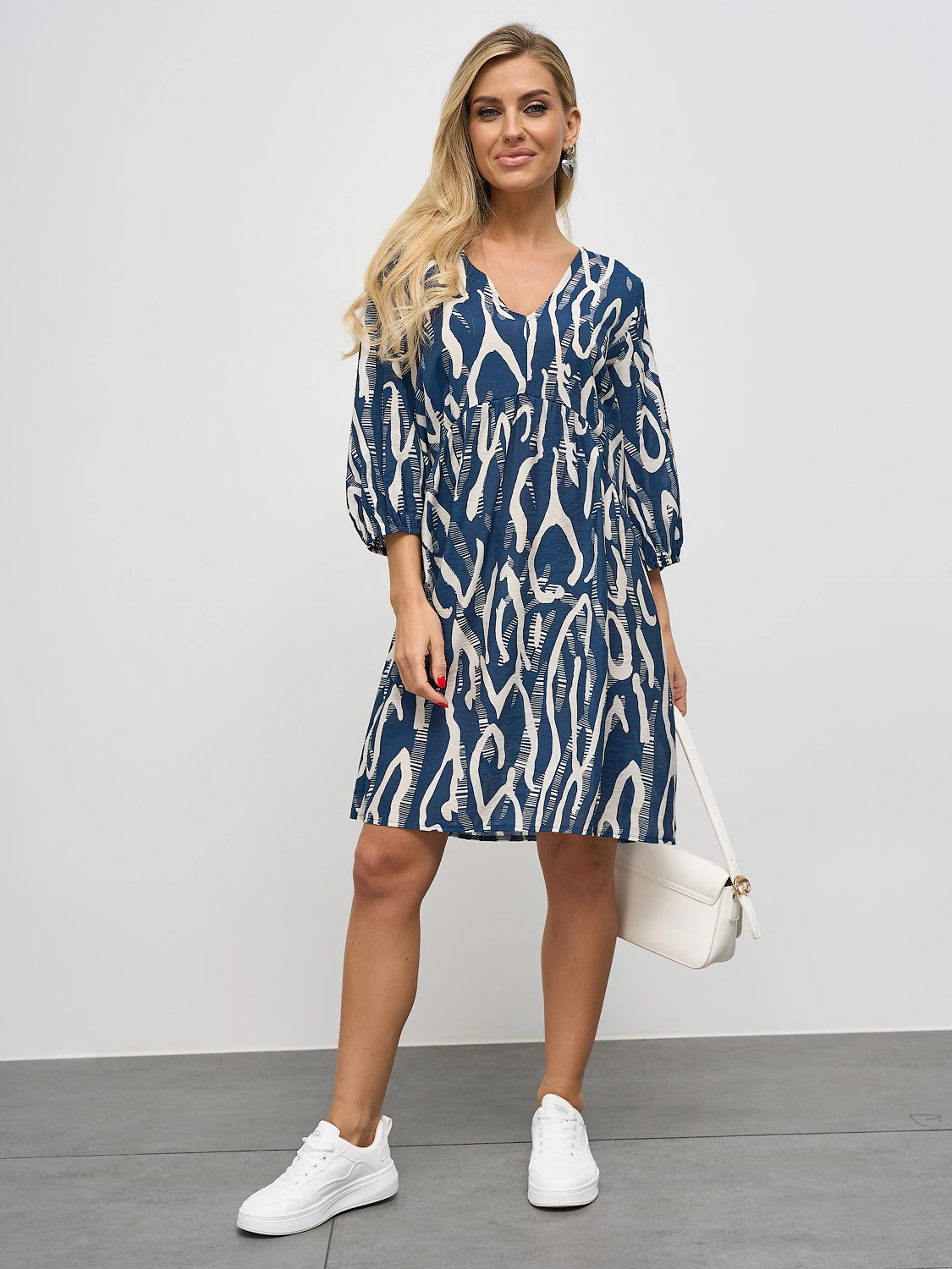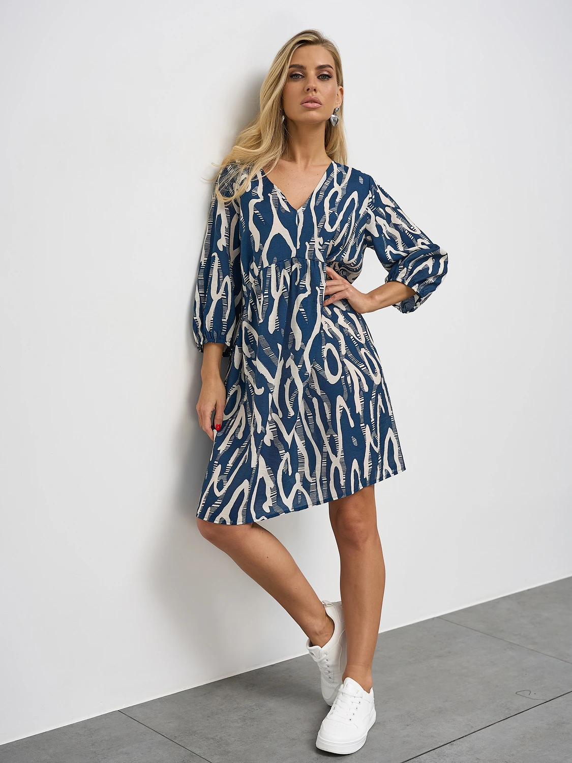 Короткое платье А-силуэта, отрезное под грудью.