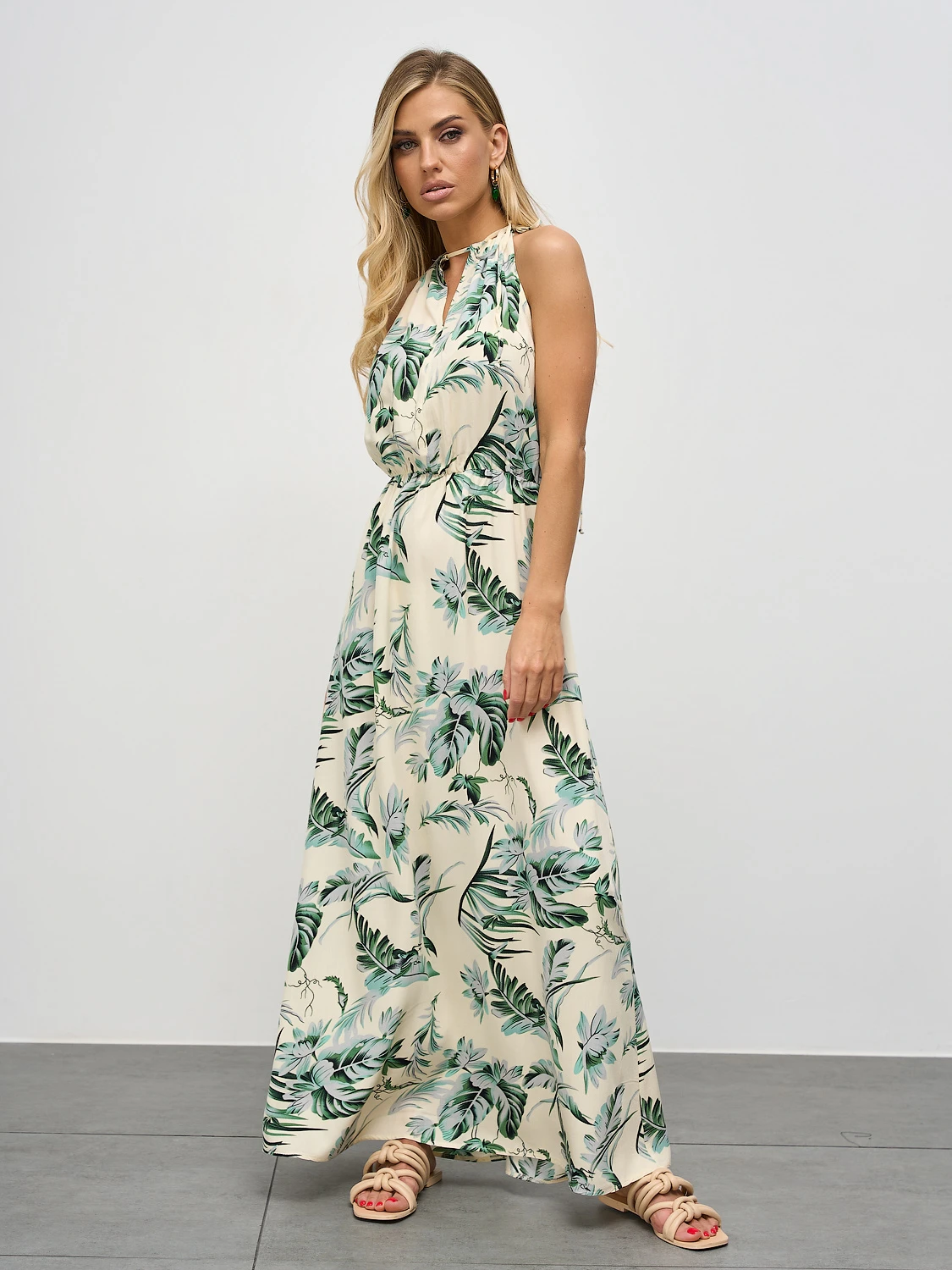 Длинное платье прямого силуэта.
