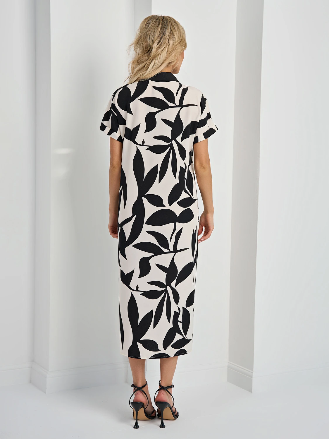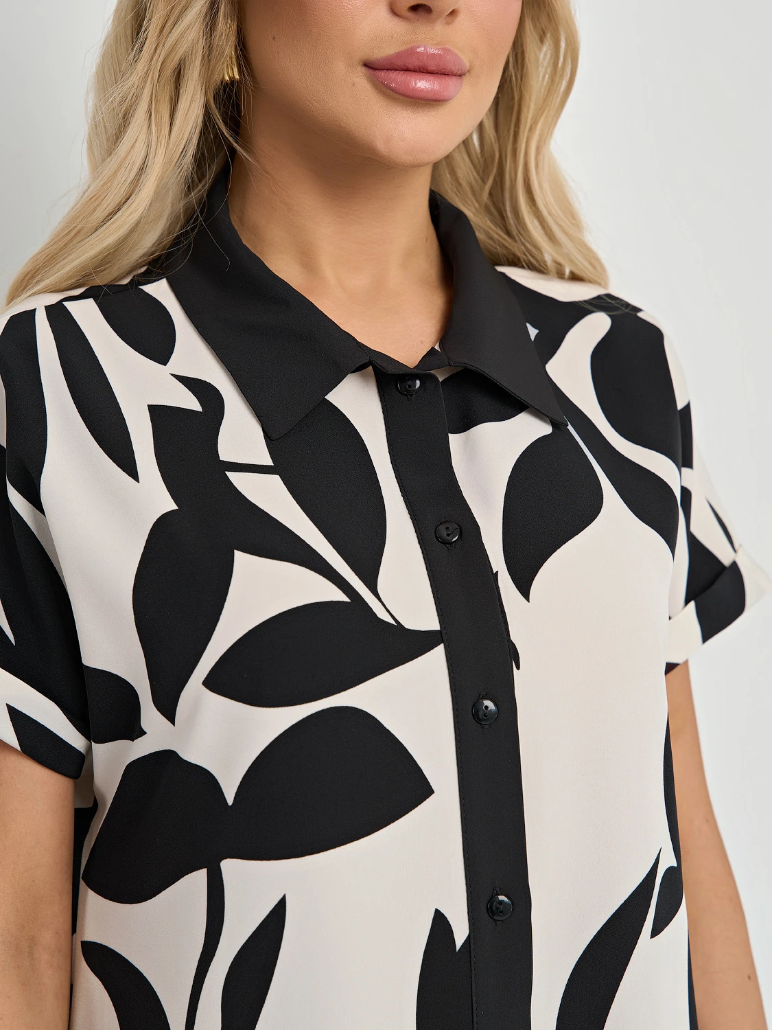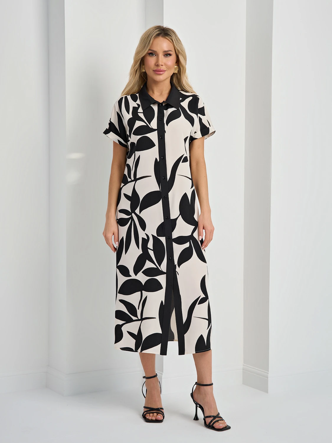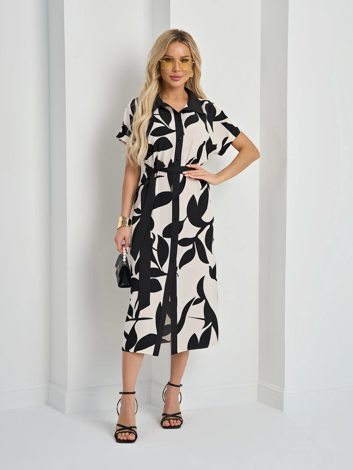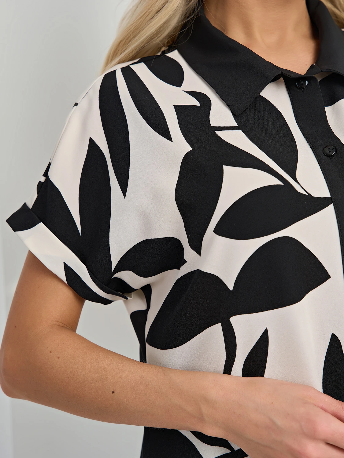 Воротник, передняя планка и пояс выполнены из ткани компаньона черного цвета.