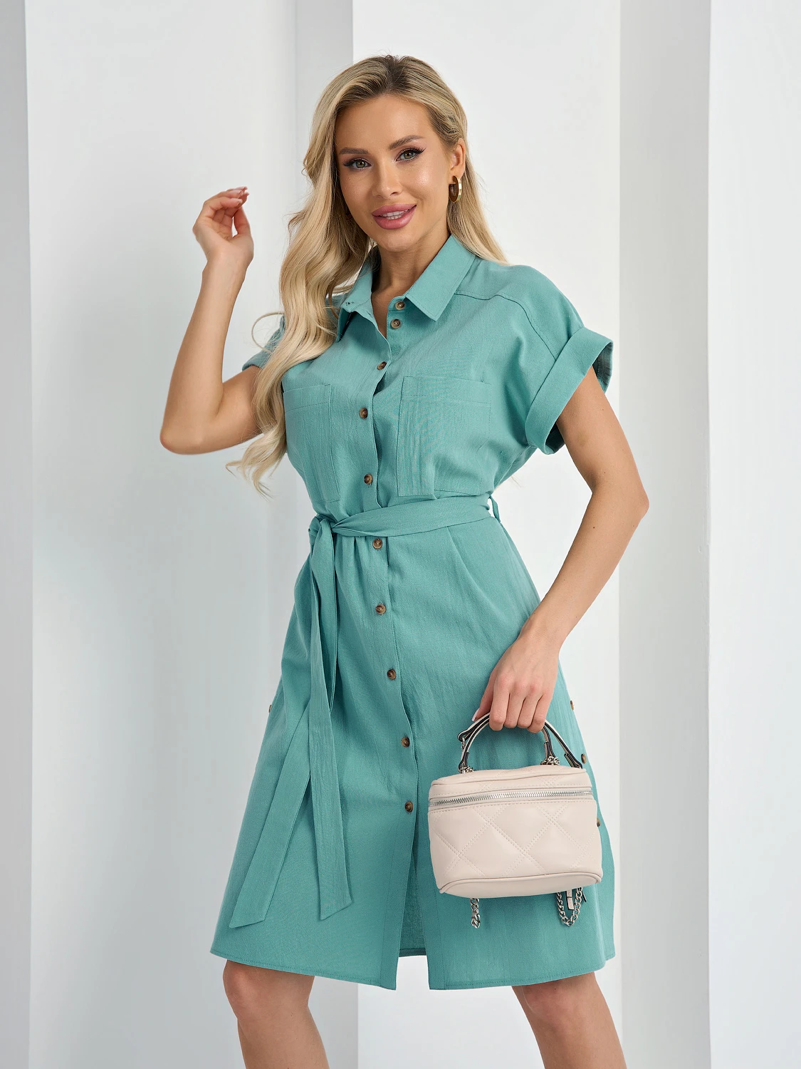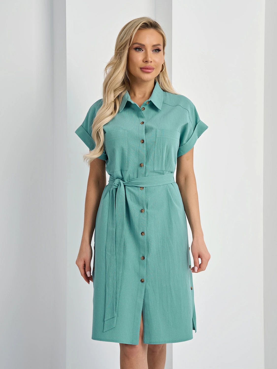 Платье прямого силуэта в стиле "сафари" из 100% хлопка.