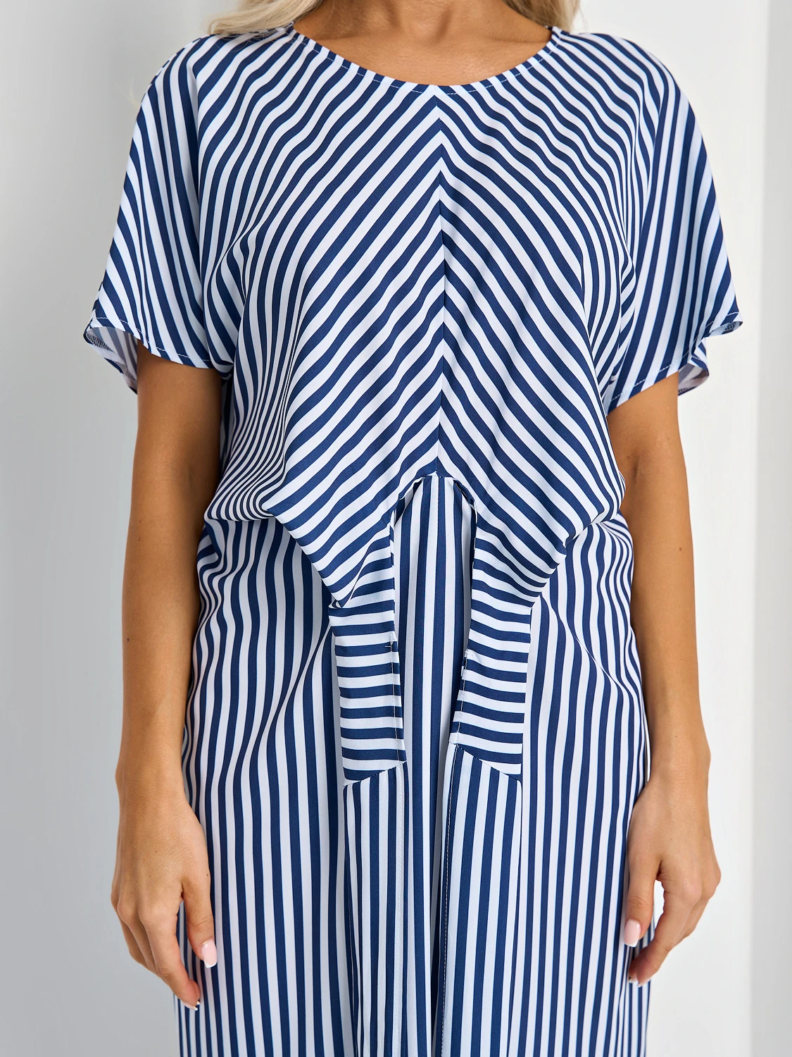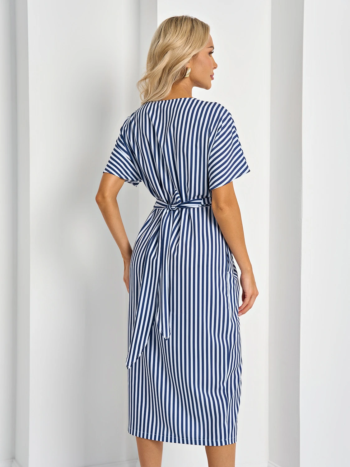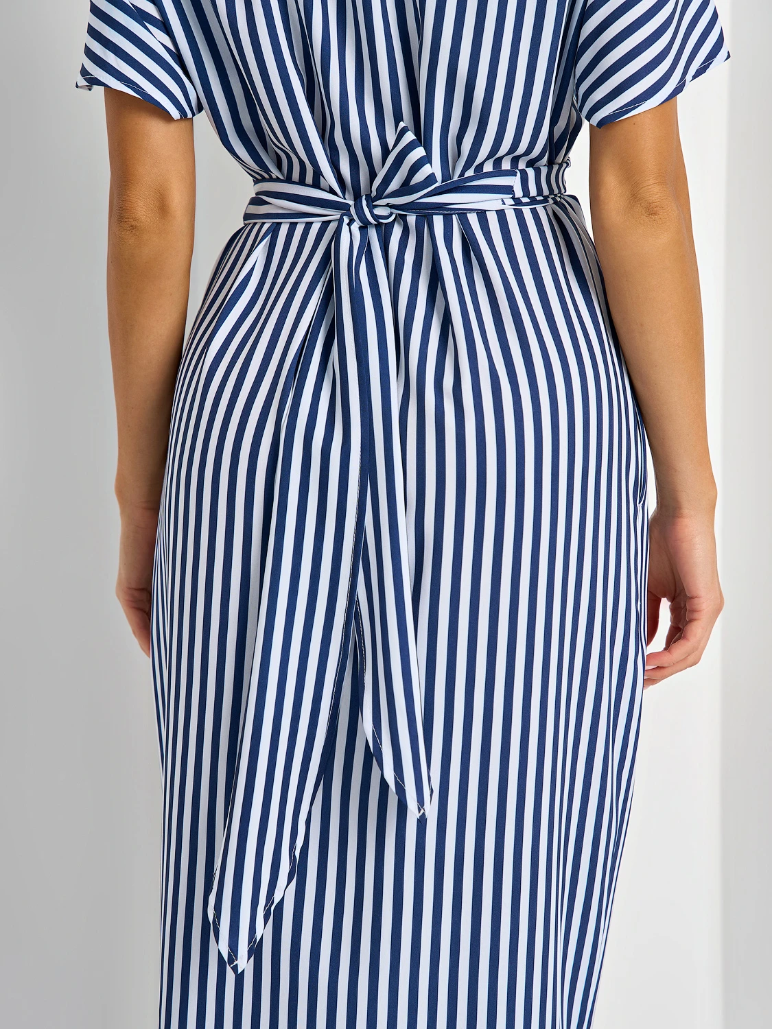 На талии цельнокроеный перекрестный длинный пояс.