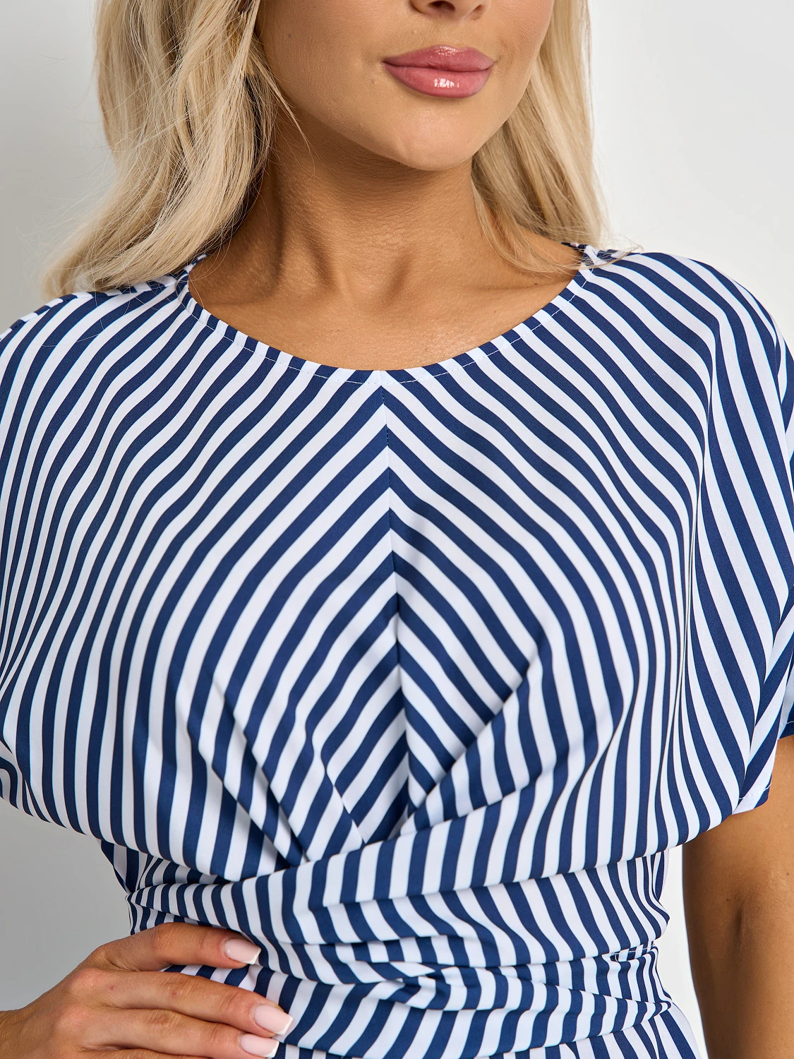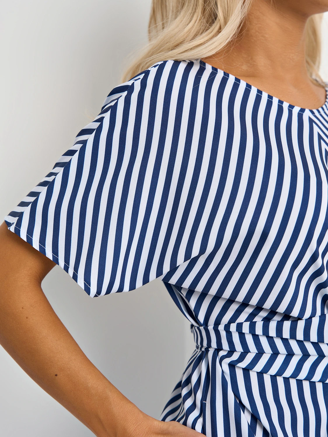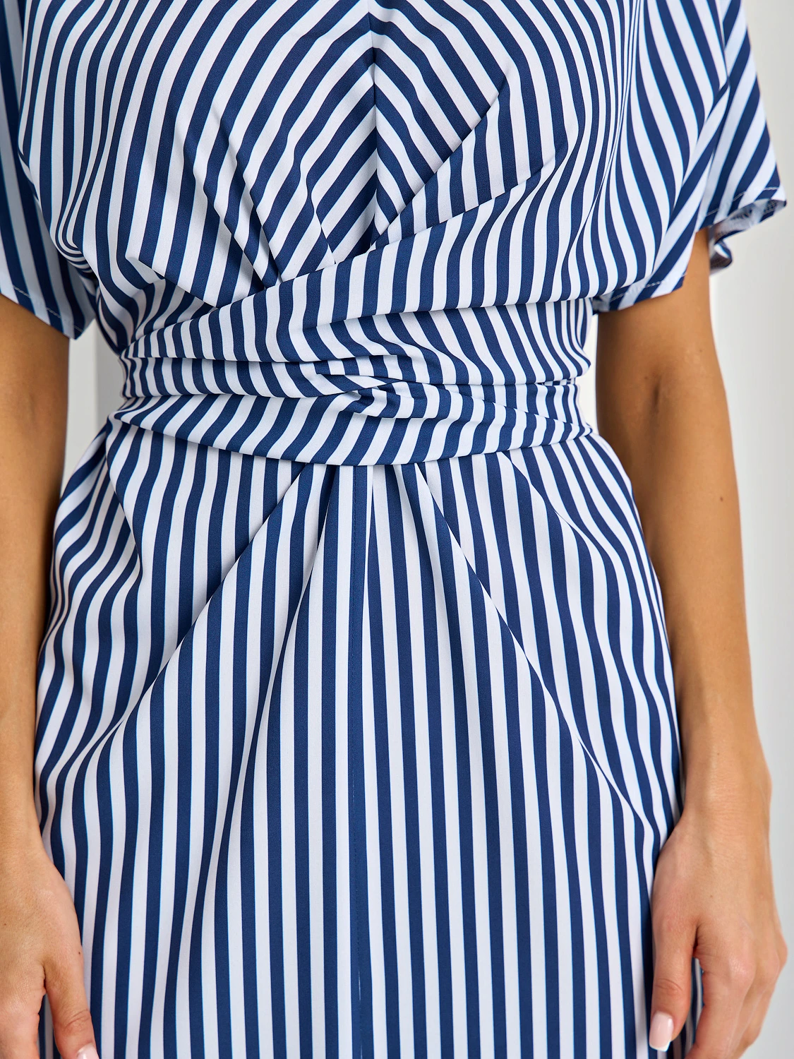 На талии цельнокроеный перекрестный длинный пояс.