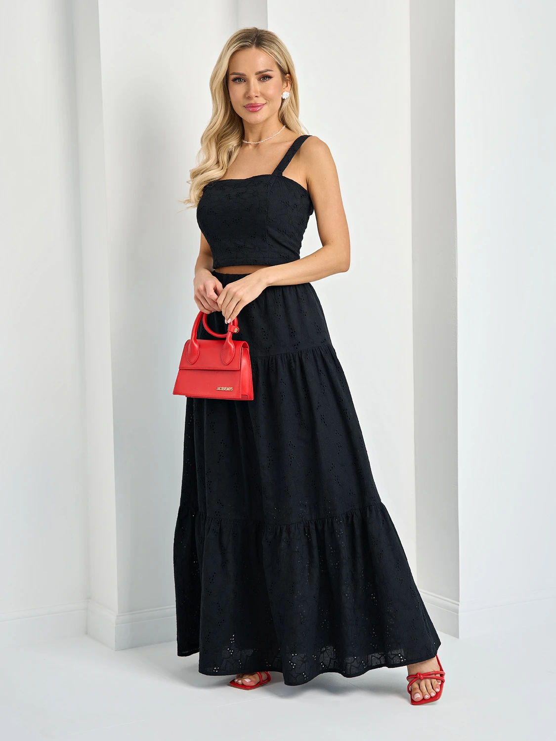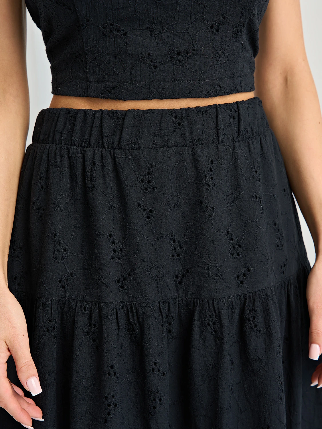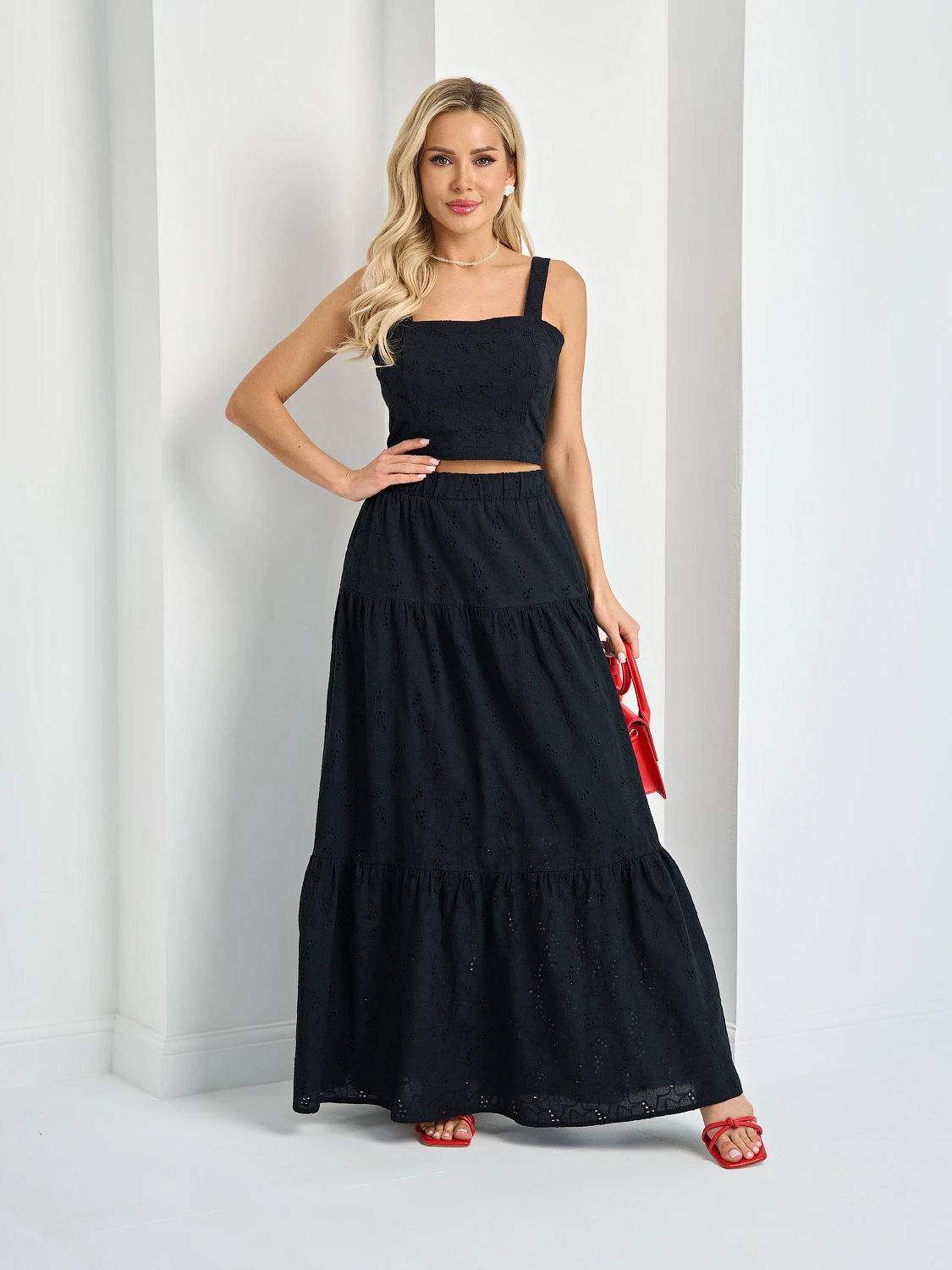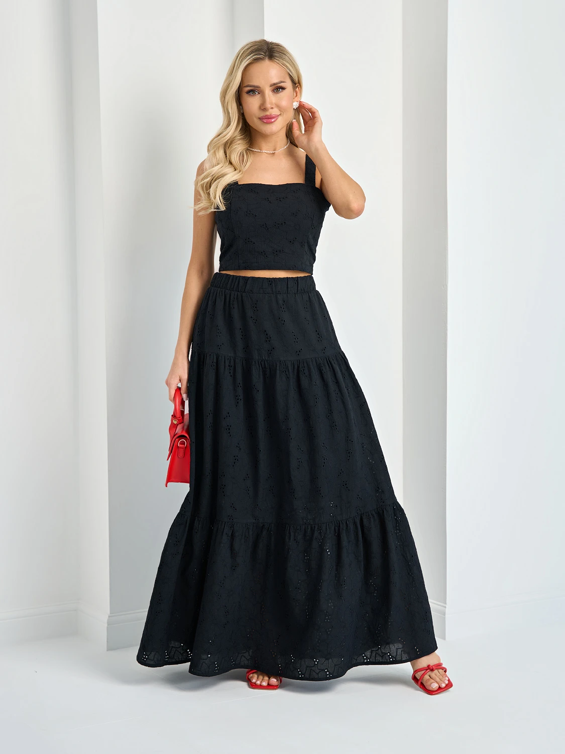 Трикотажная юбка на притачном поясе-резинке. Юбка без подклада и разреза, заужена к низу. Материал средней растяжимости.