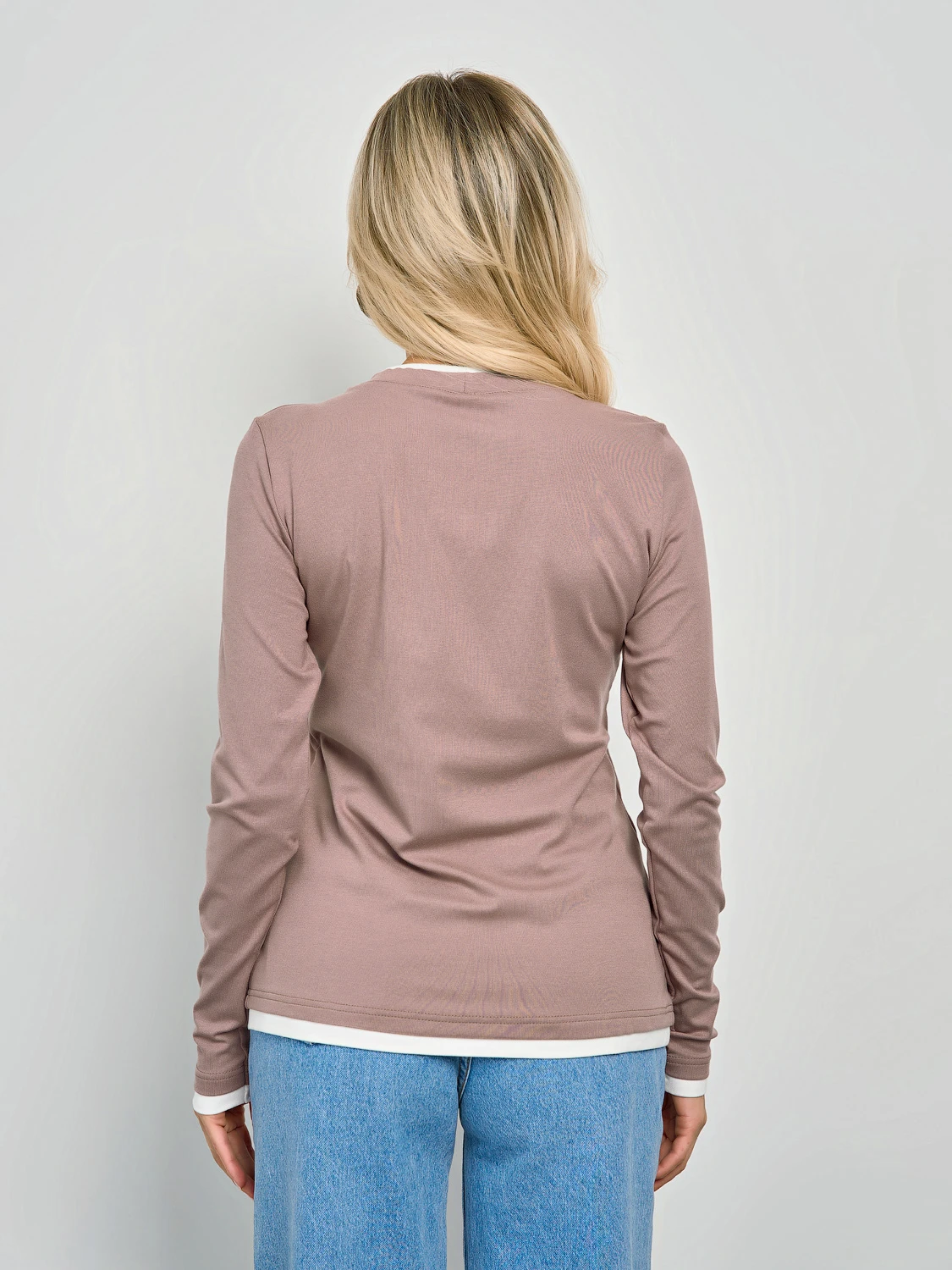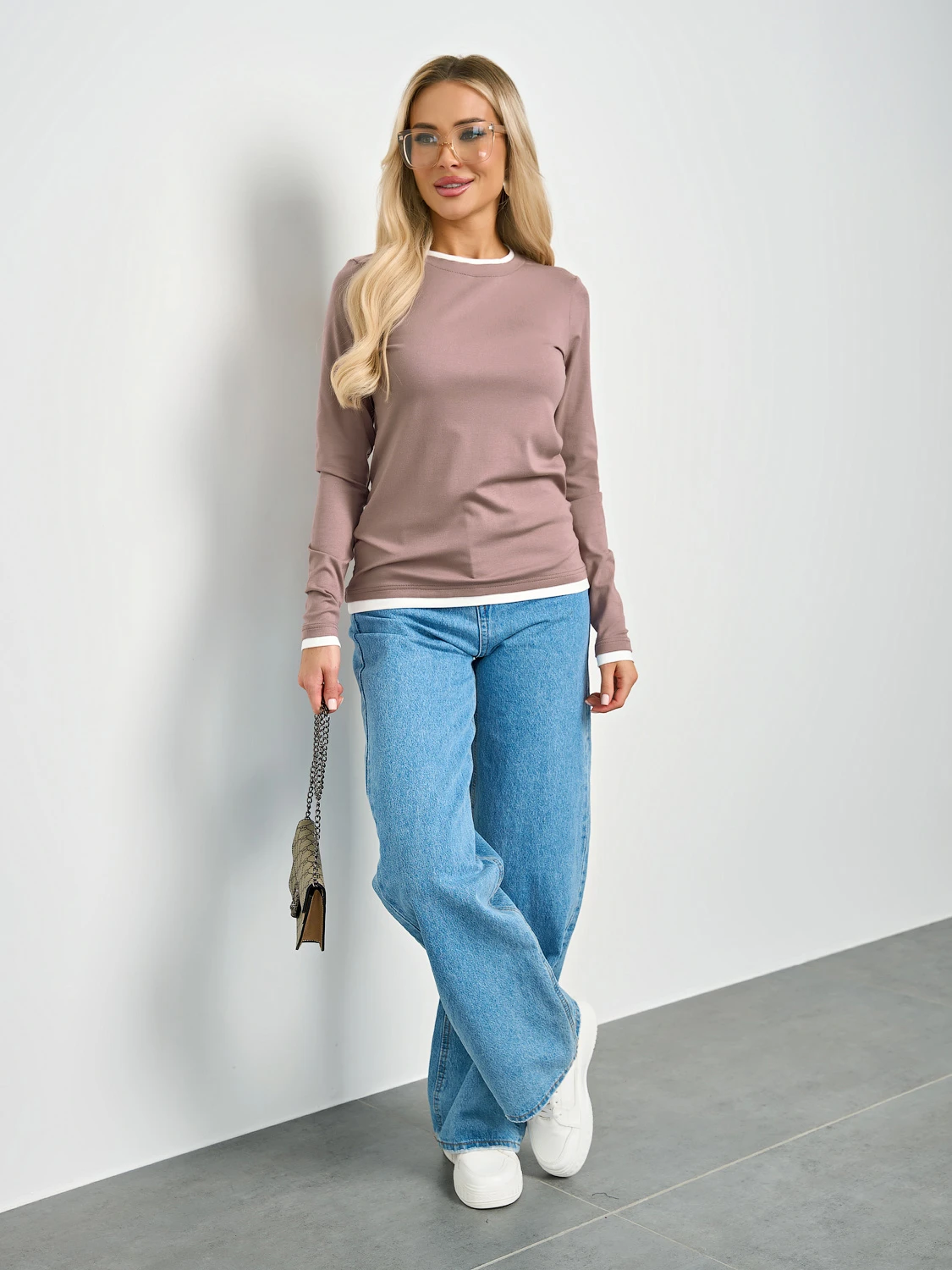 Горловина, низ рукава и низ изделия отделаны контрастным материалом, имитирующим второй слой.