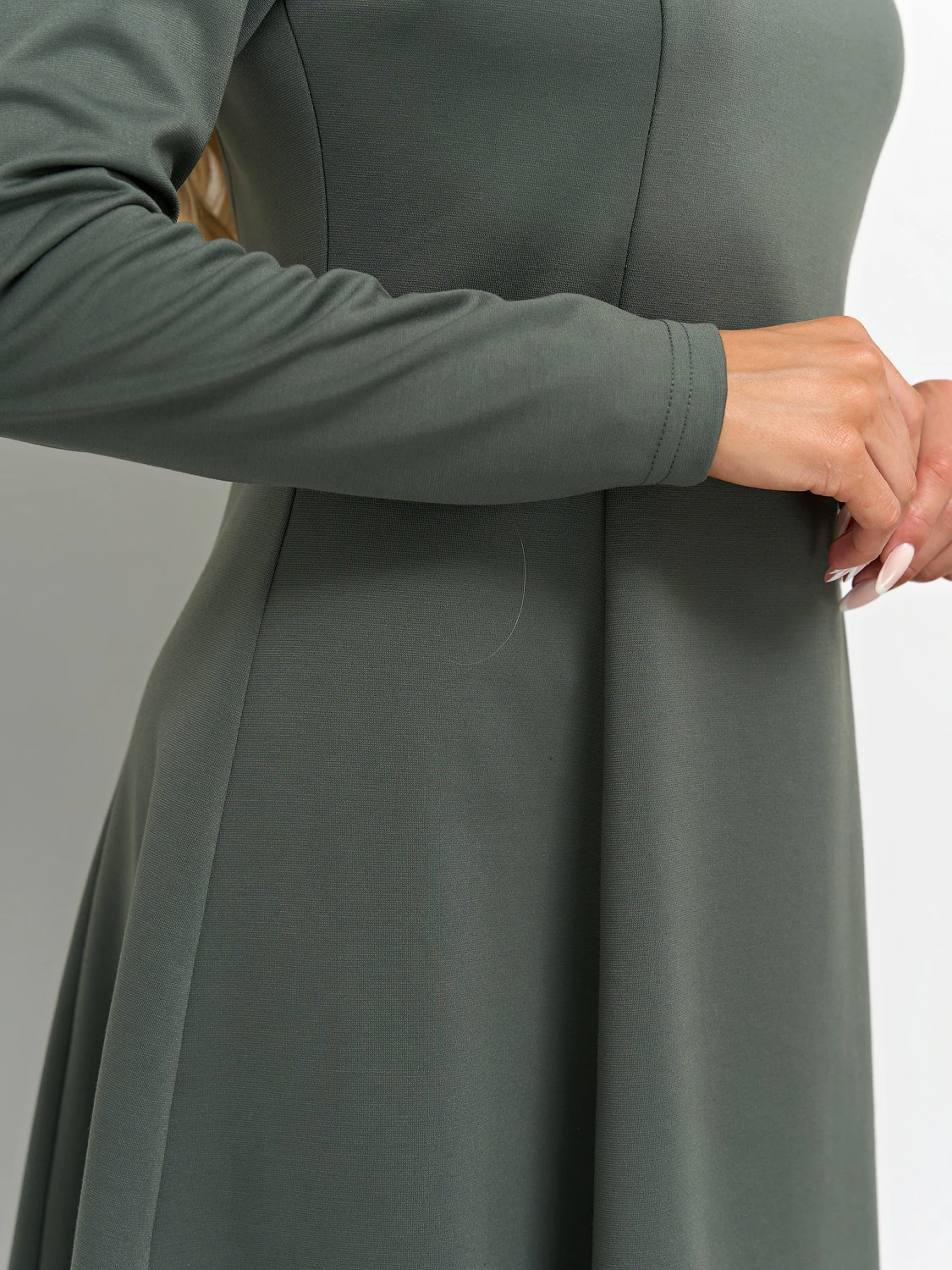 По переду и спинке проходят рельефы, смещенные к боковому шву.