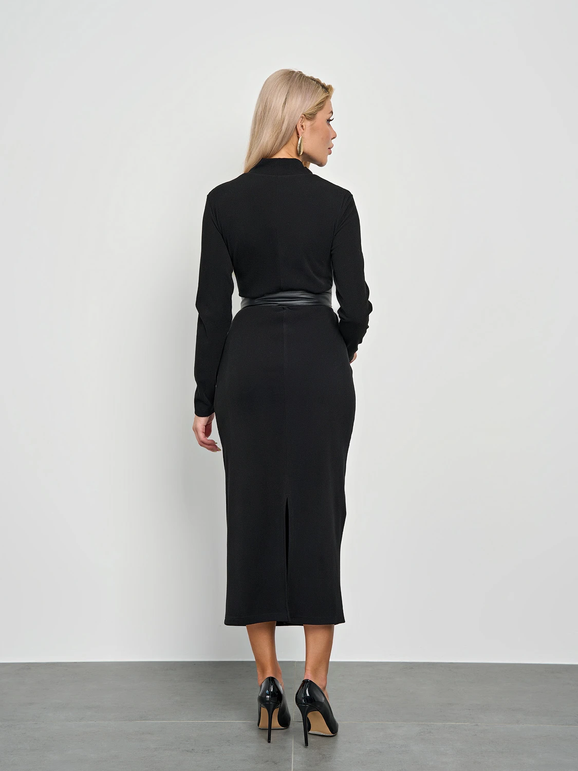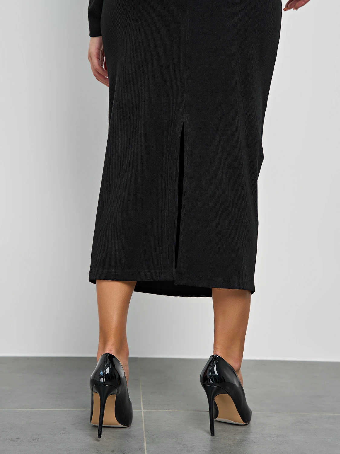 Трикотажное платье полуприлегающего силуэта.