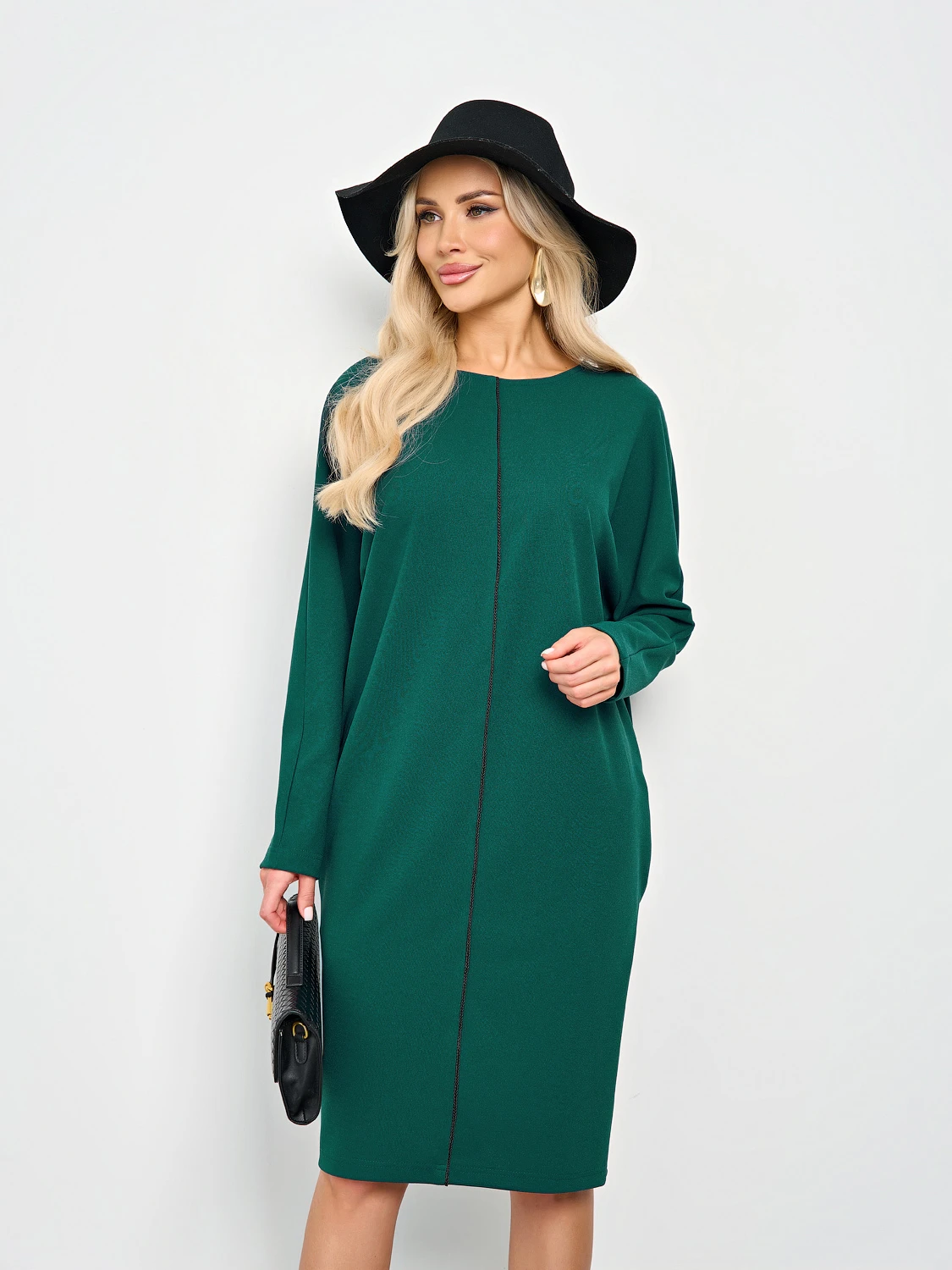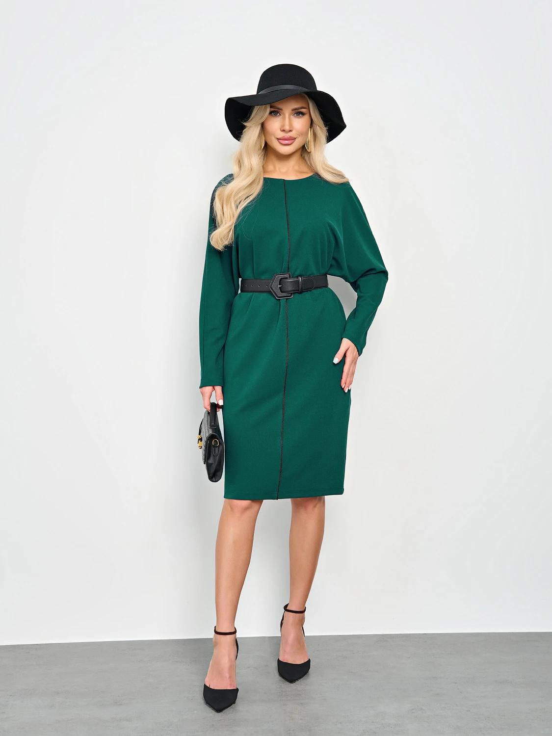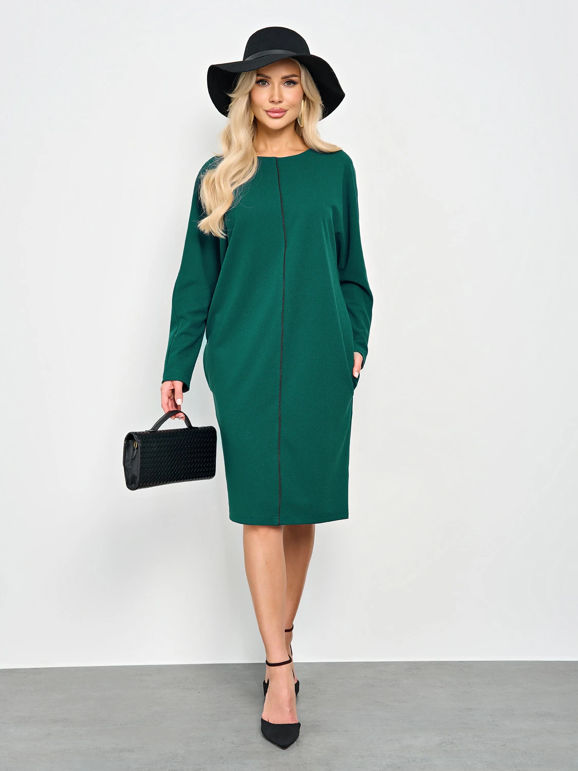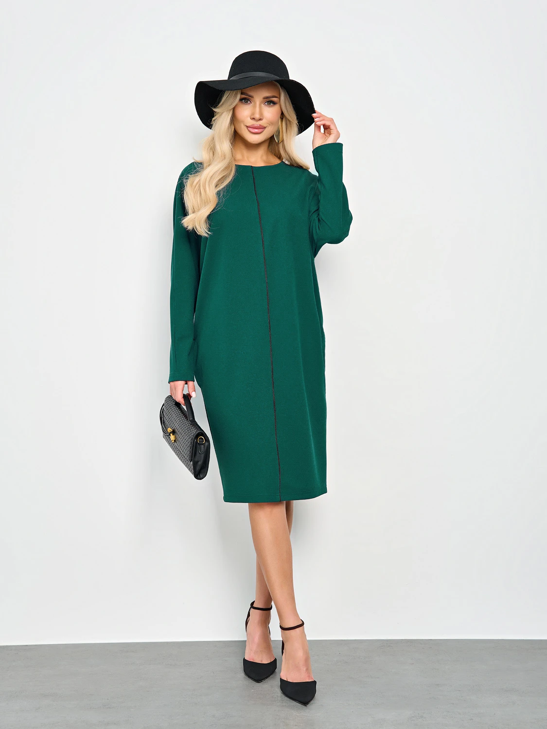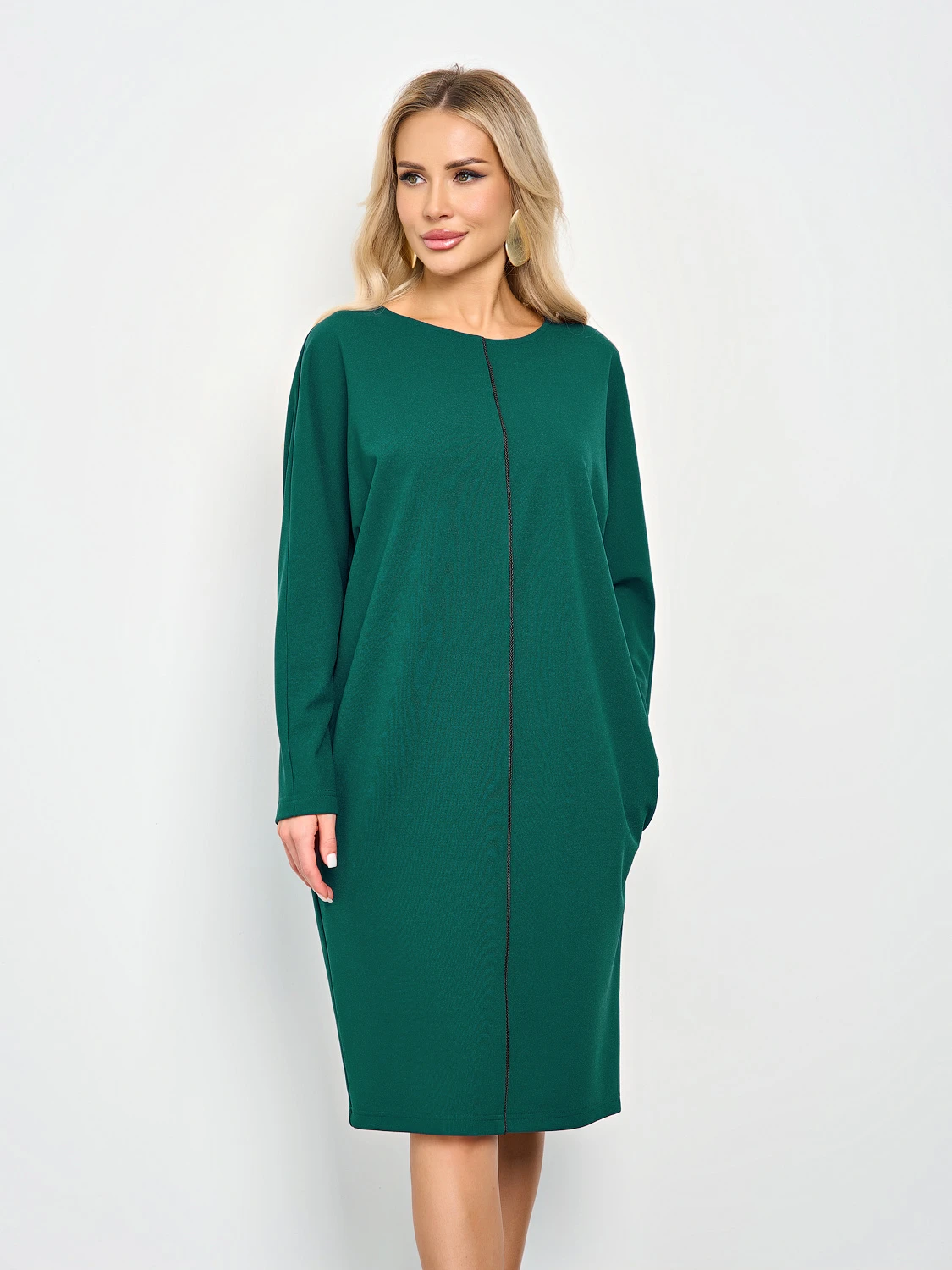 Перед платья украшен вставной декорированной тесьмой по центру.