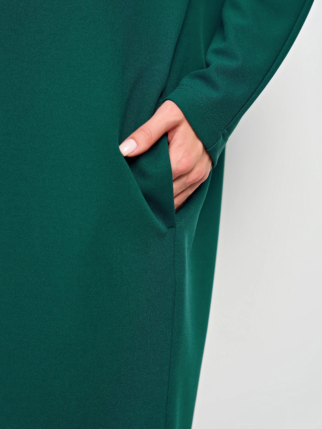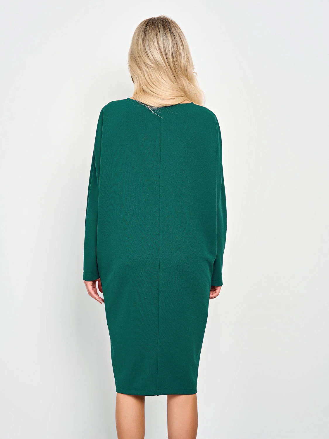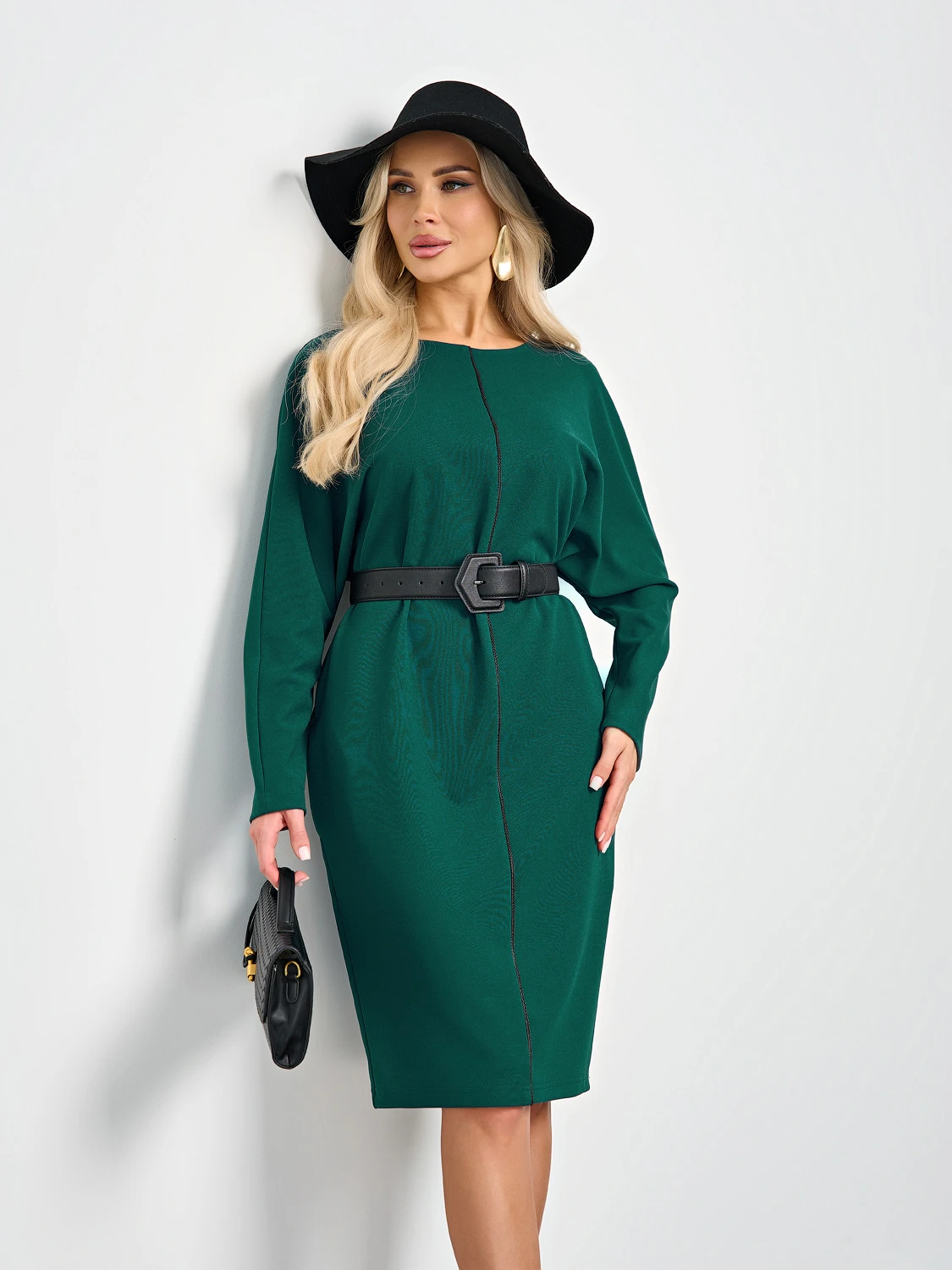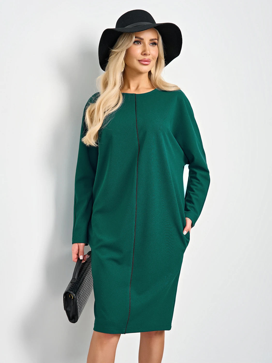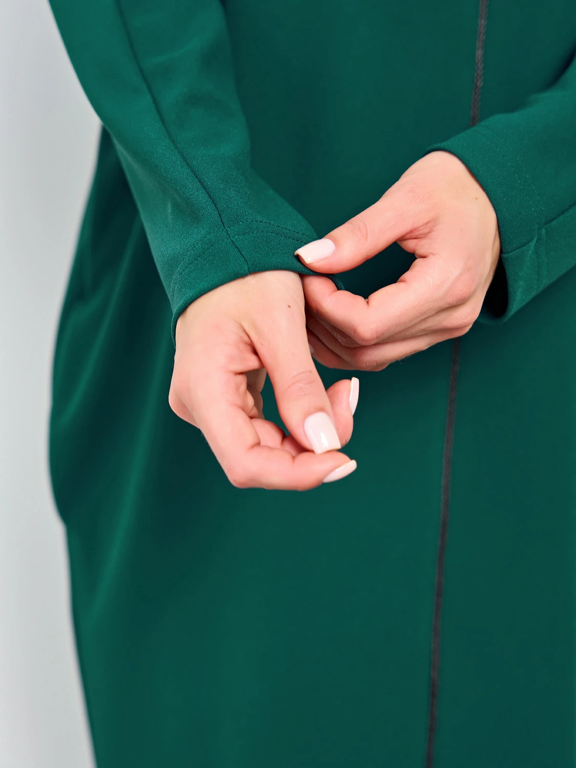 Перед платья украшен вставной декорированной тесьмой по центру.