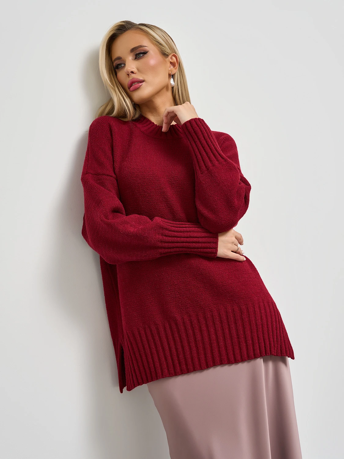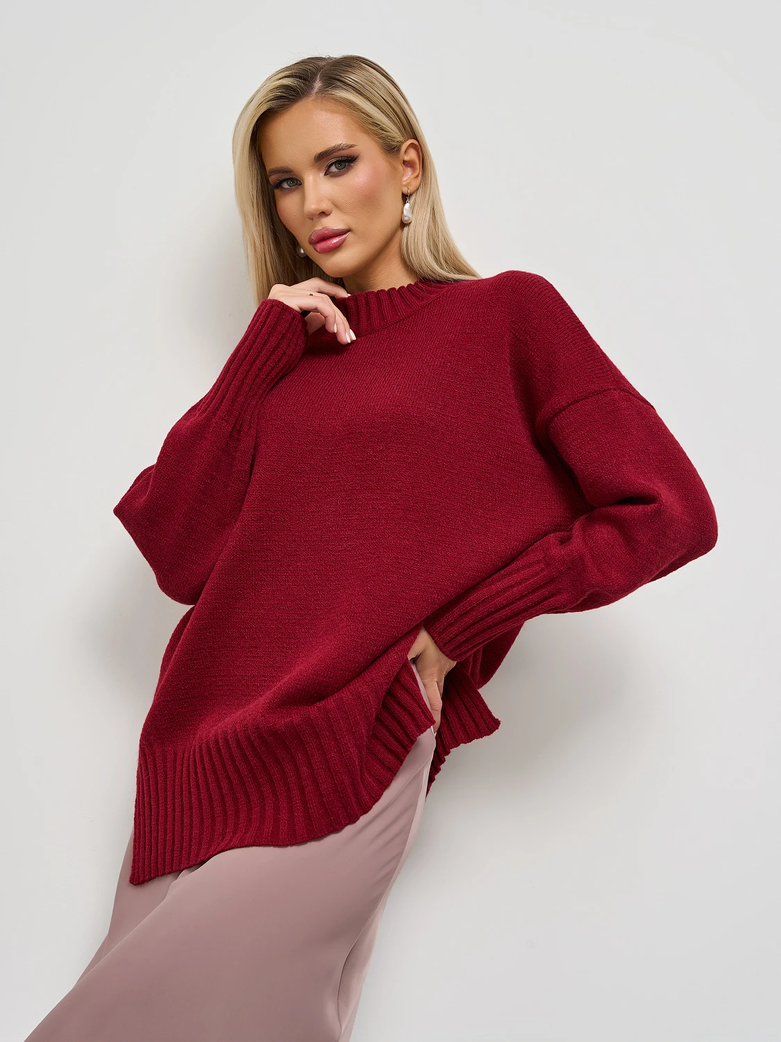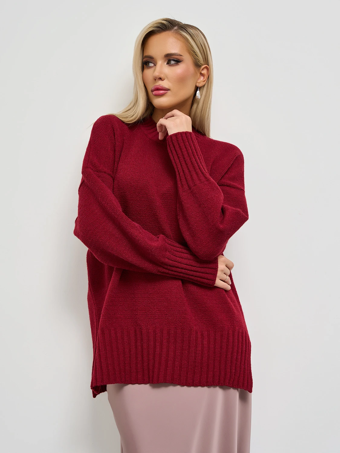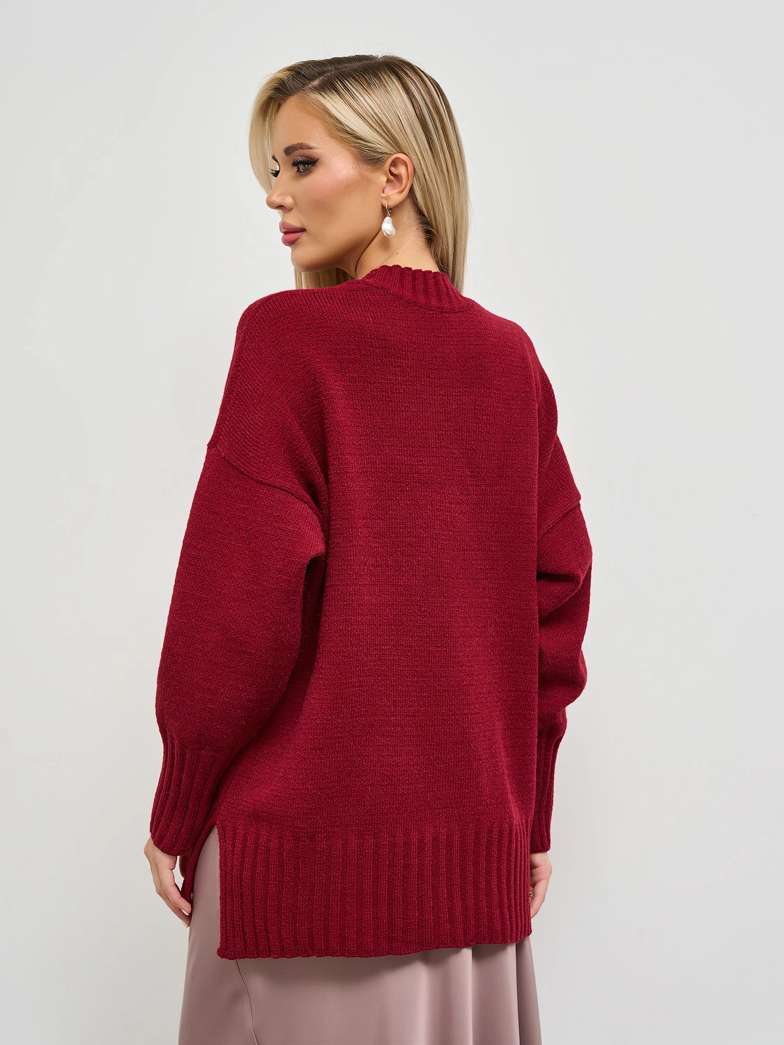 Широкие цельновязаные манжеты, воротник и низ изделия выполнены из резинки.