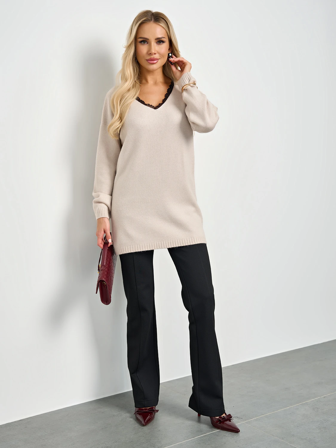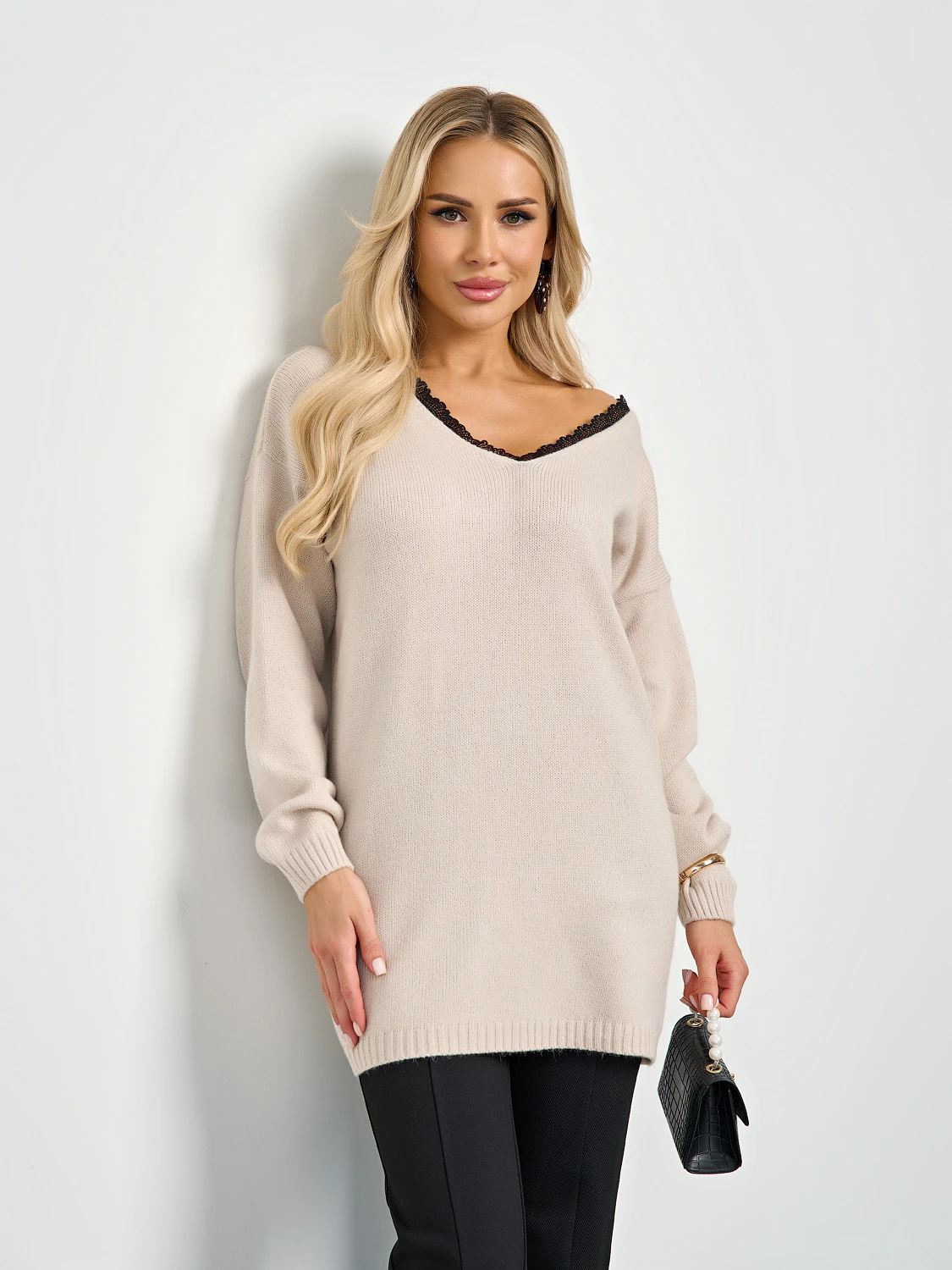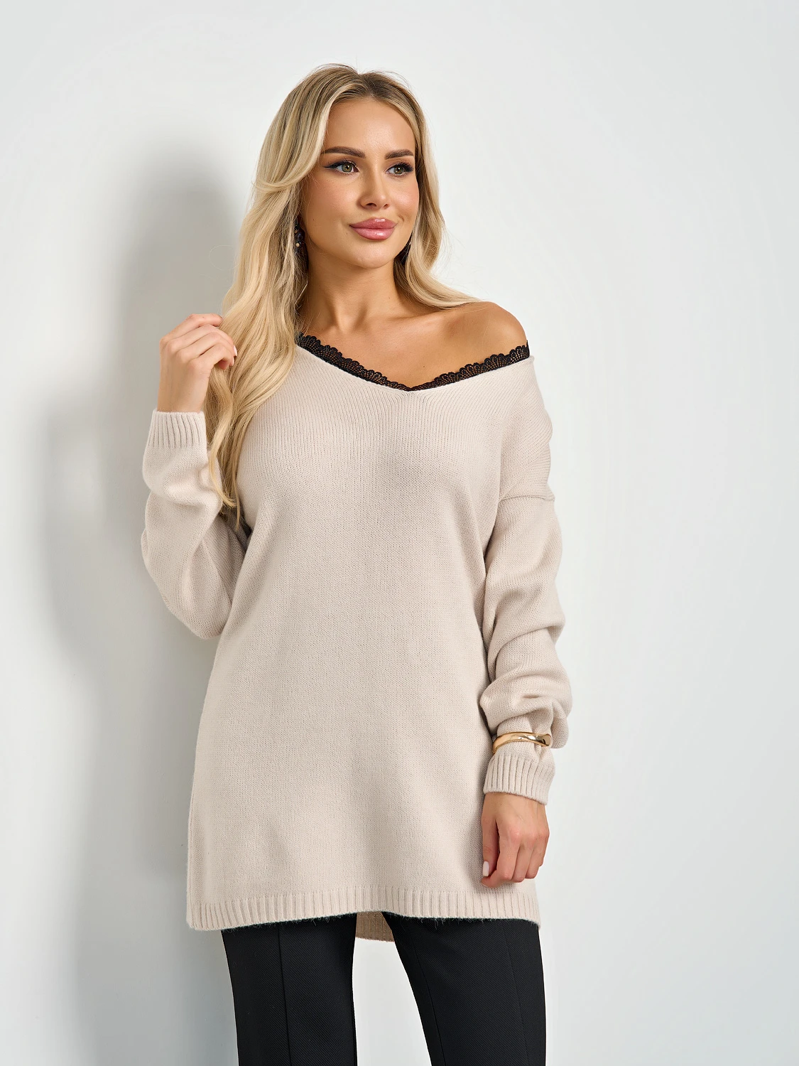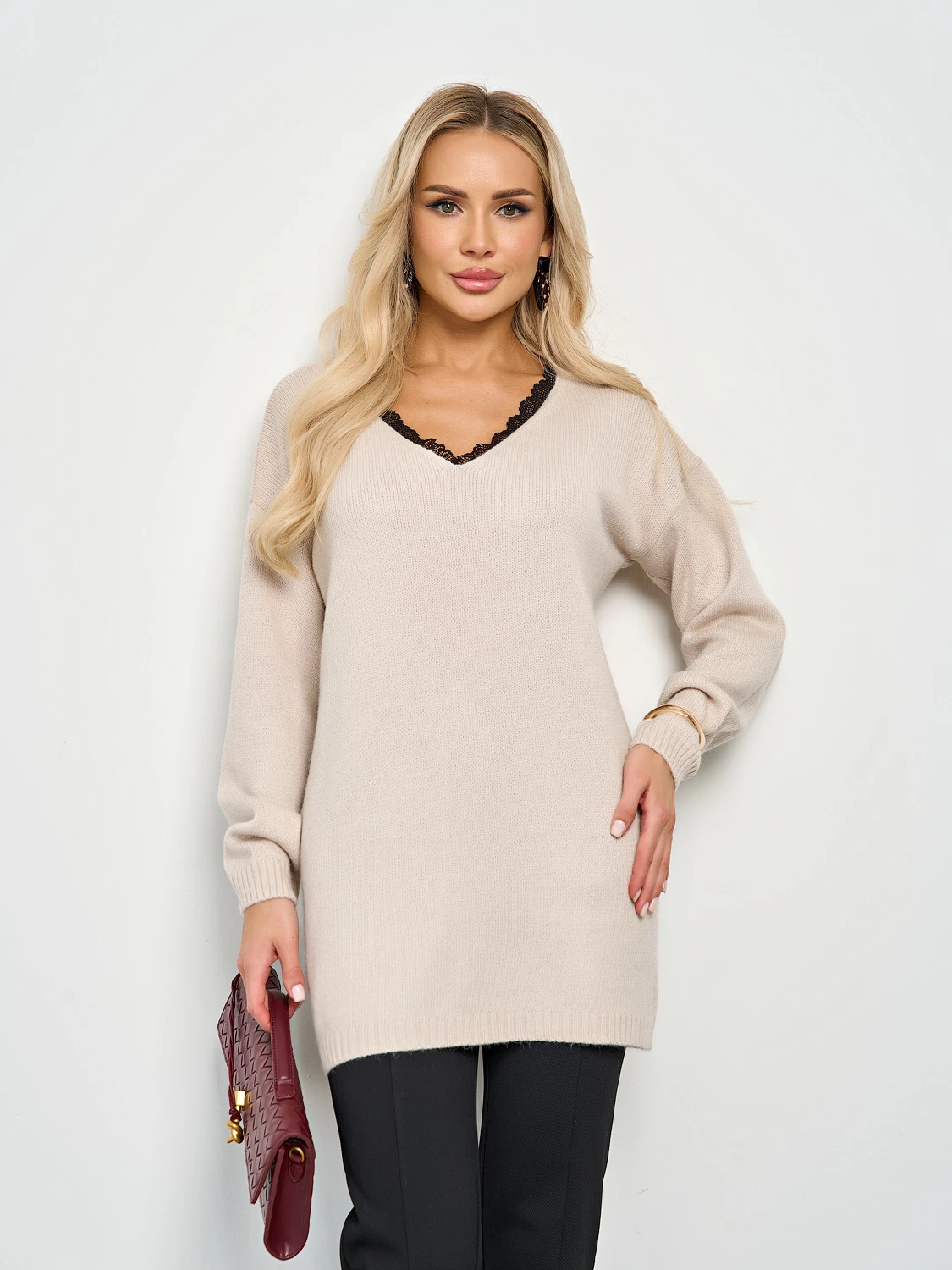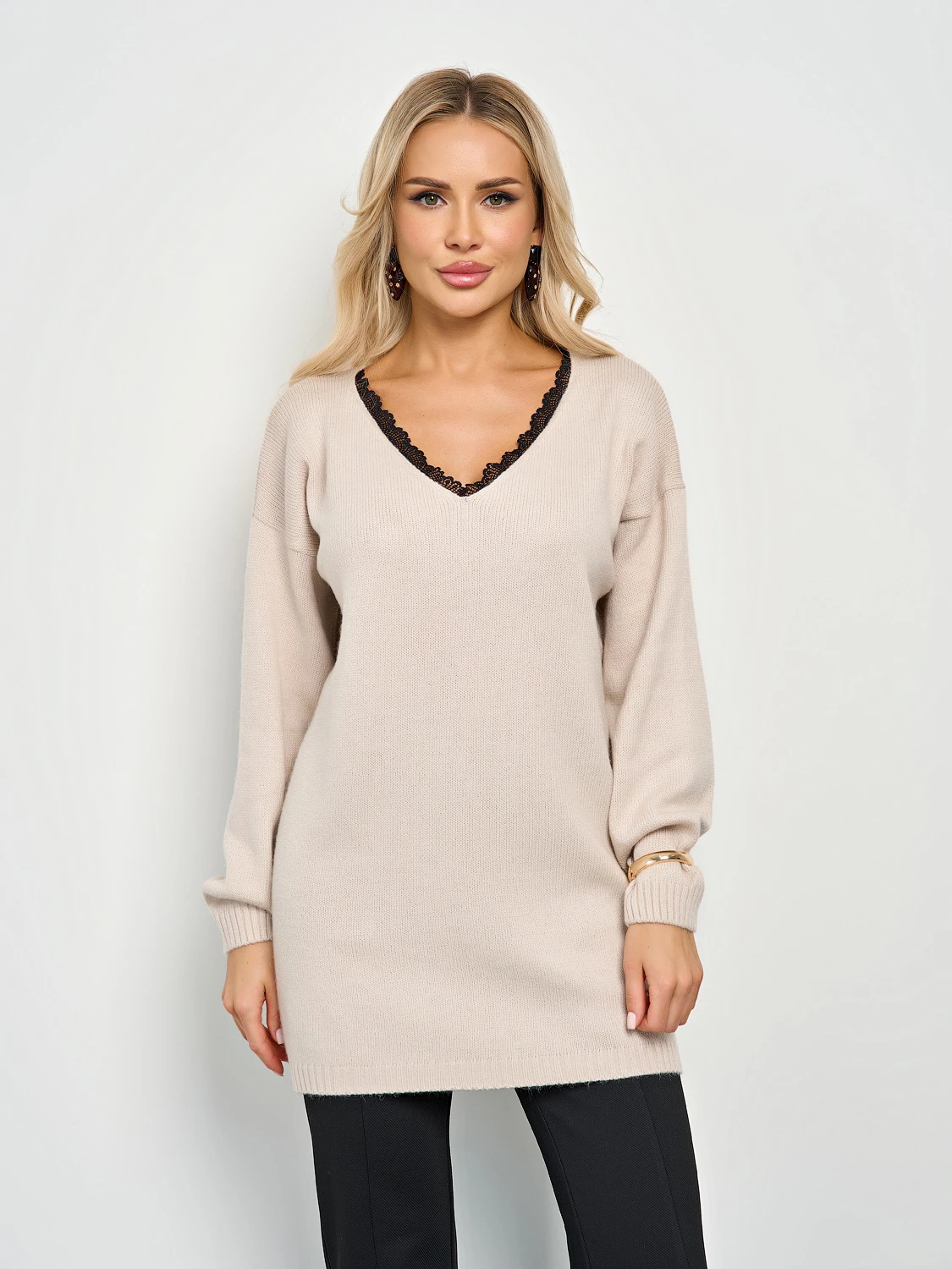 Вязаный джемпер с длинным рукавом.