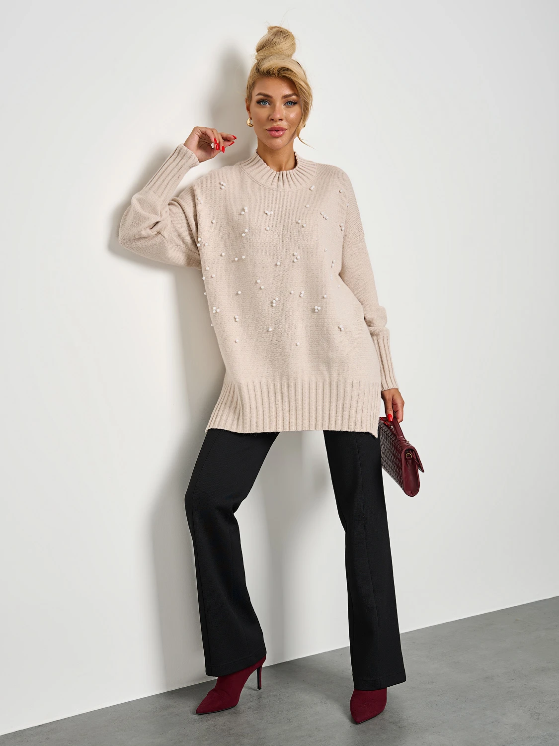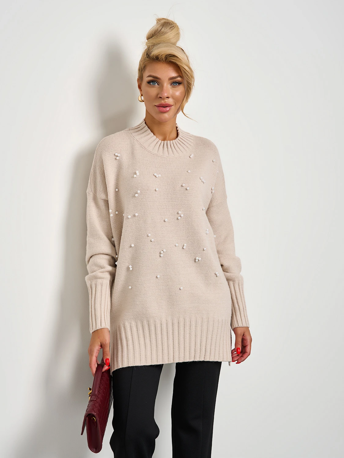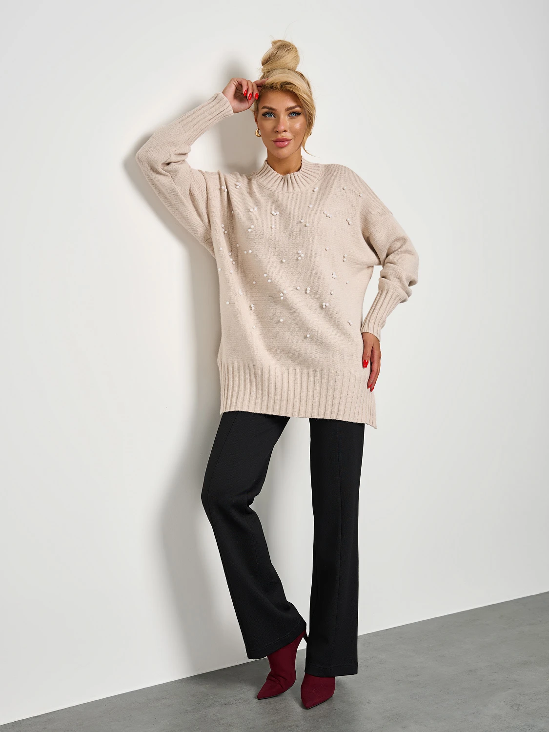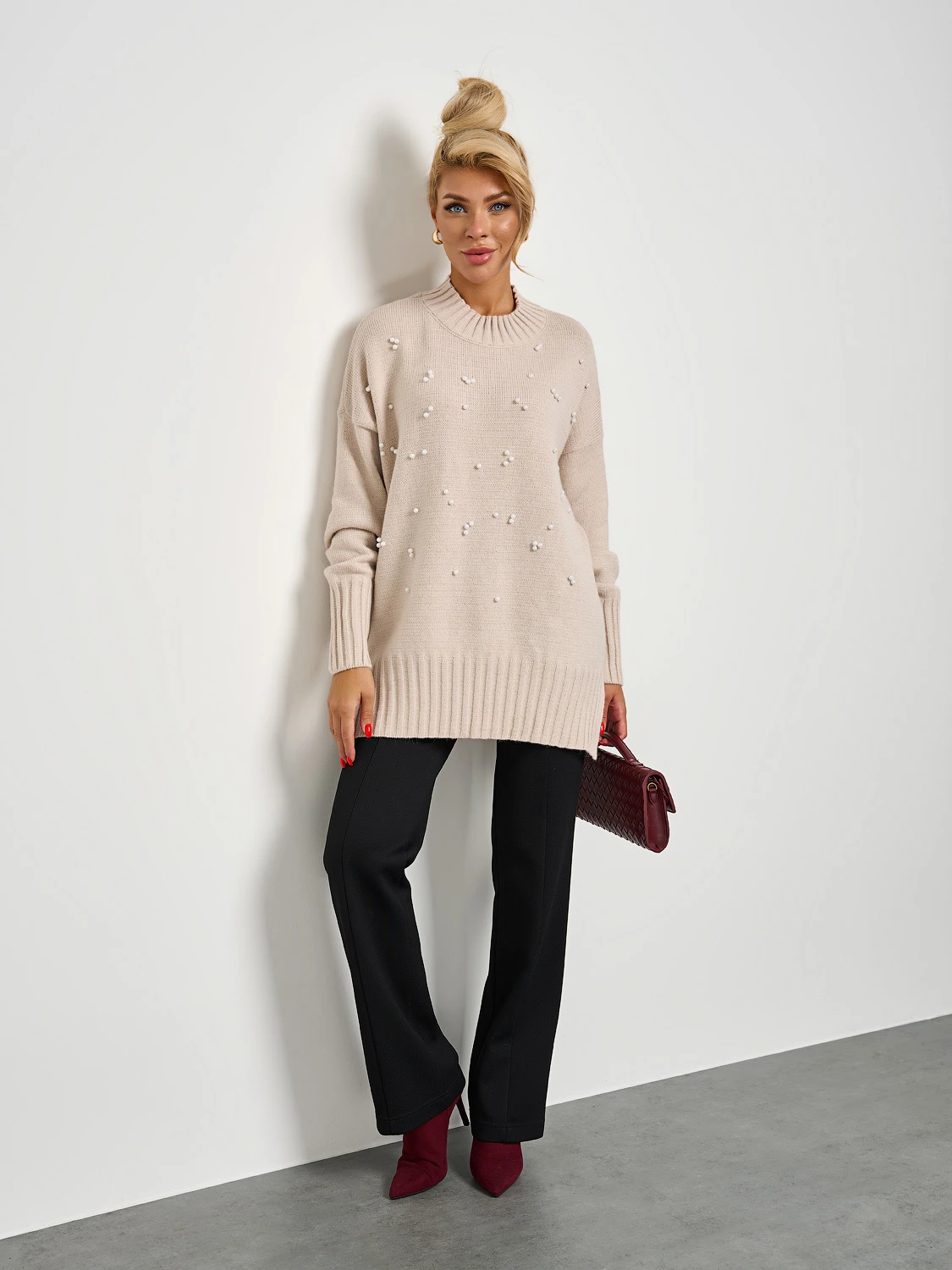 Перед изделия декорирован пришивными жемчужными бусинами.