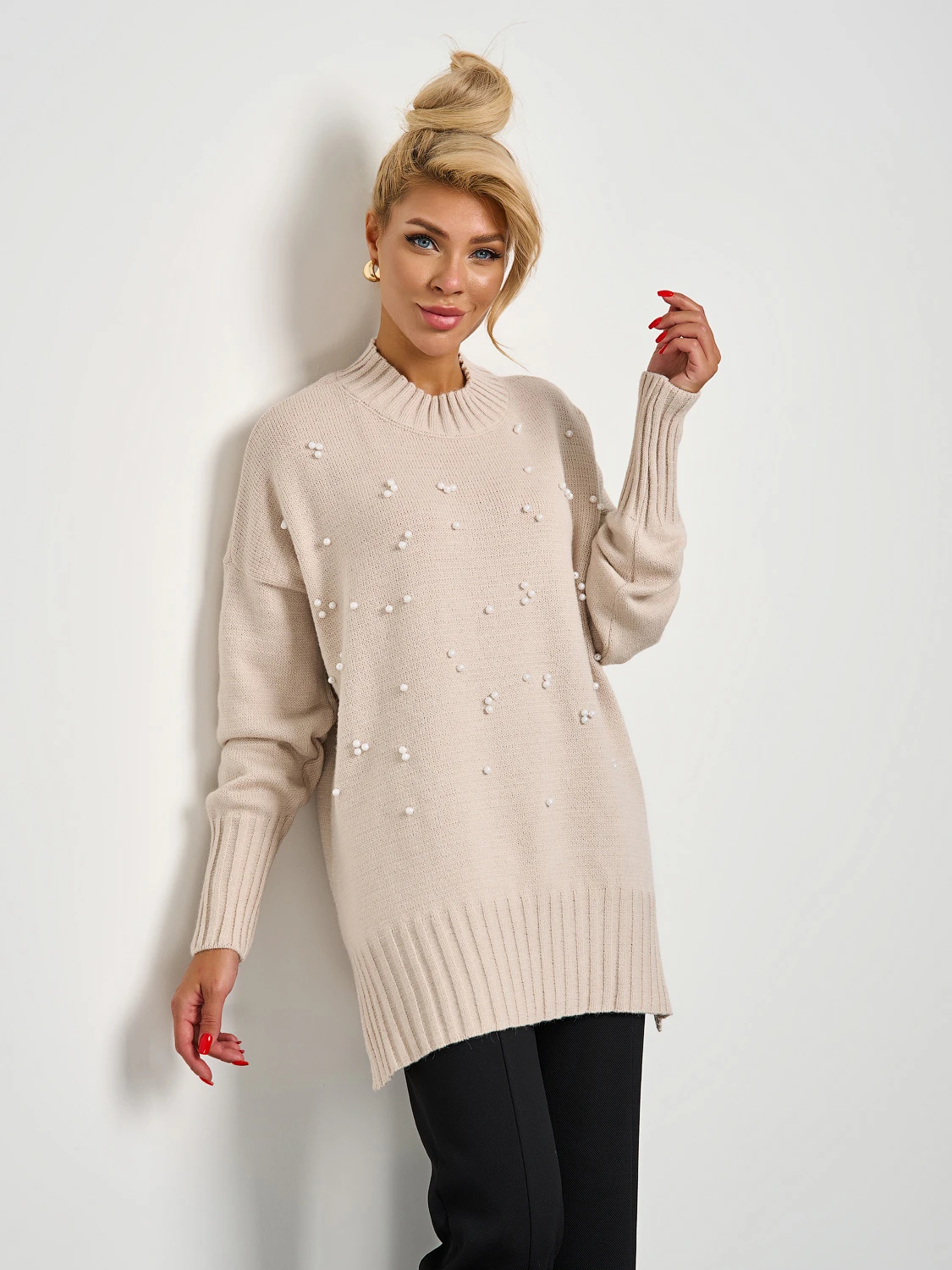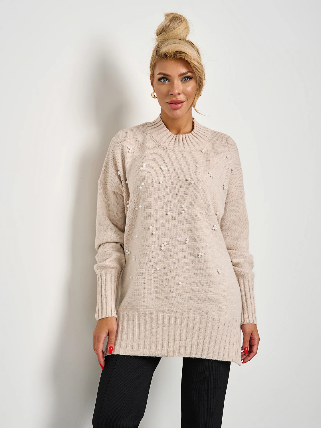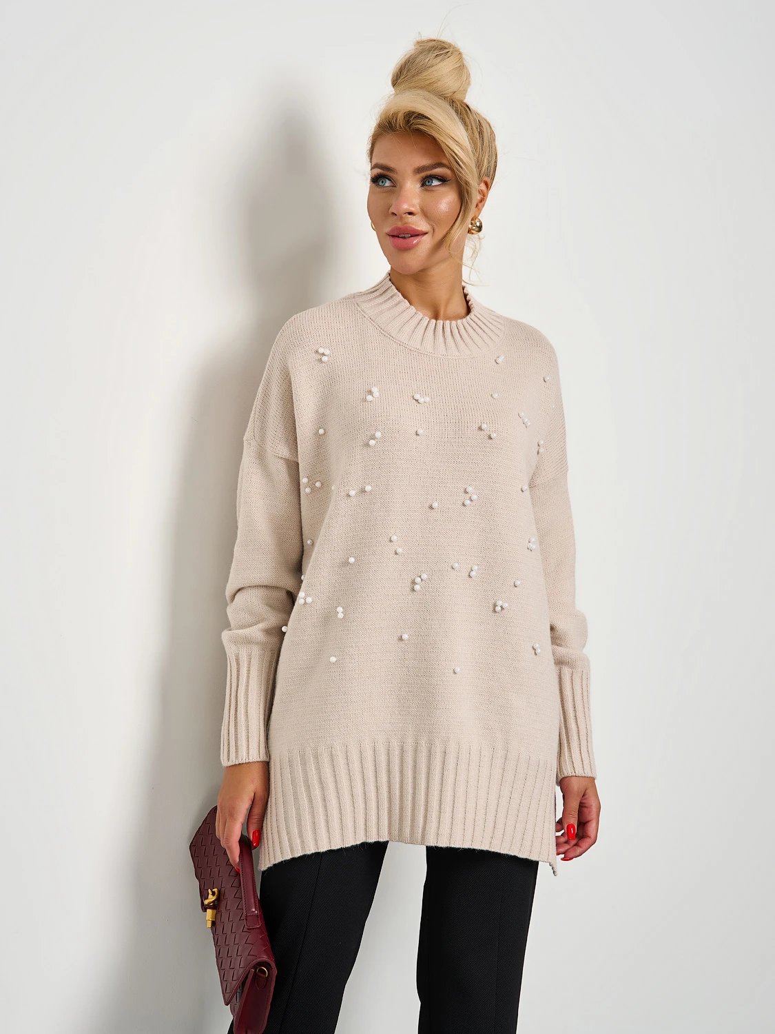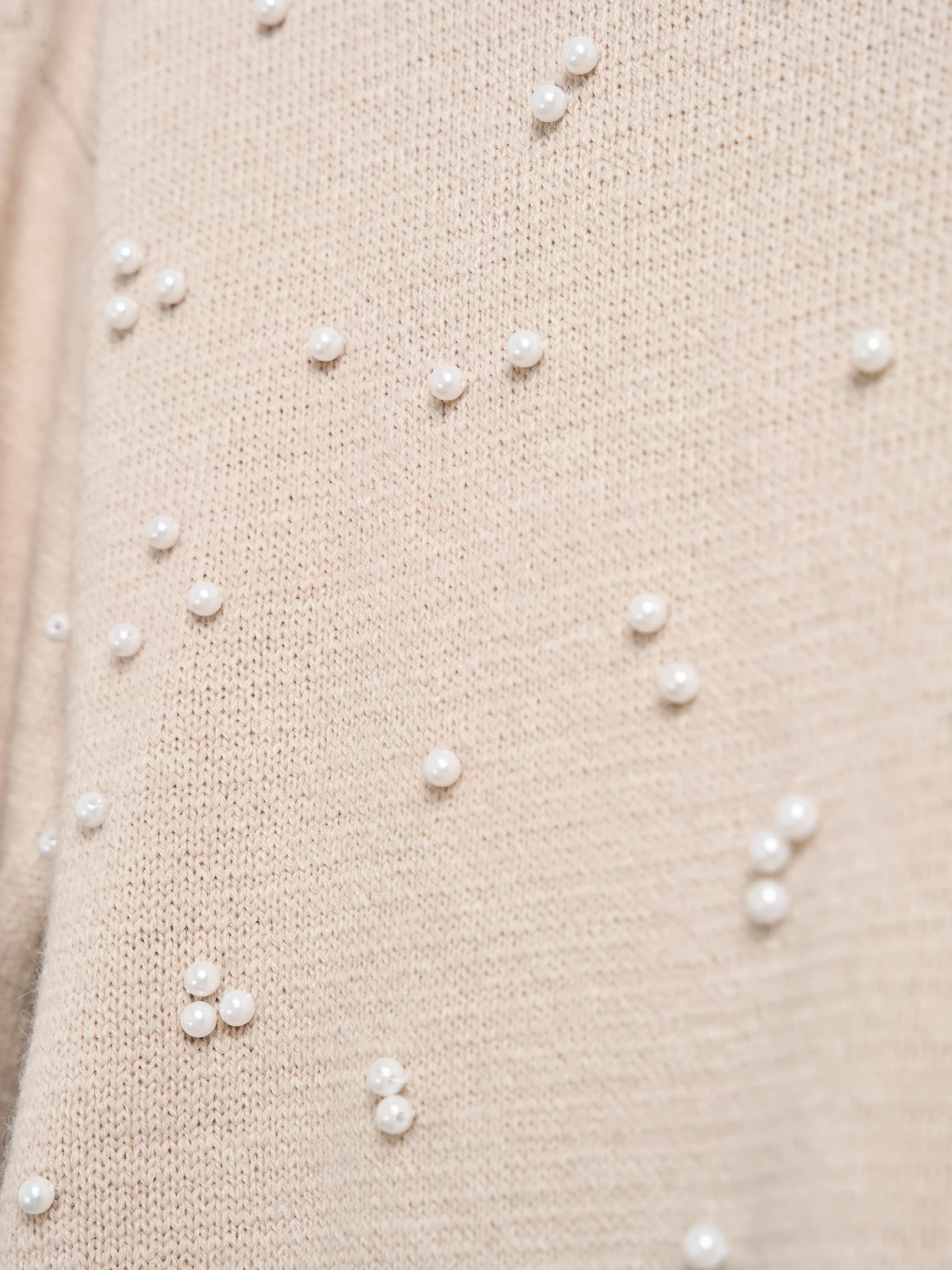 Перед изделия декорирован пришивными жемчужными бусинами.