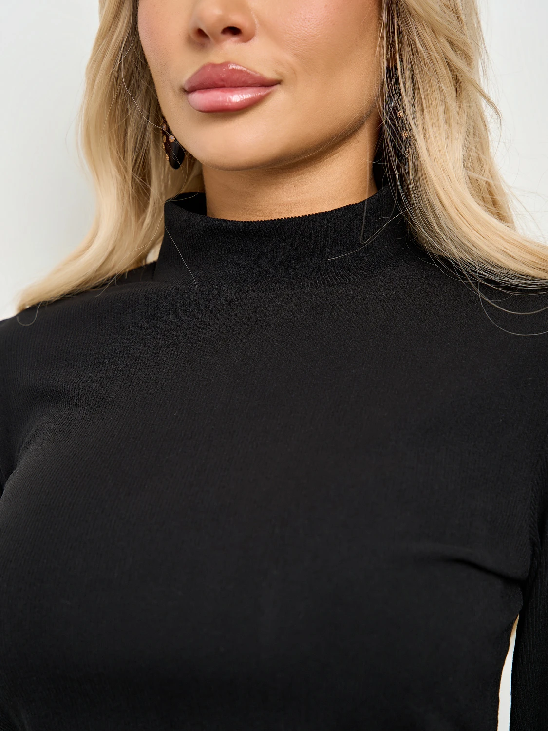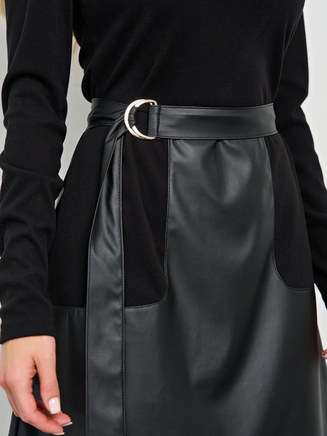 Платье декорировано поясом из искусственной кожи с пряжкой-полукольцом.