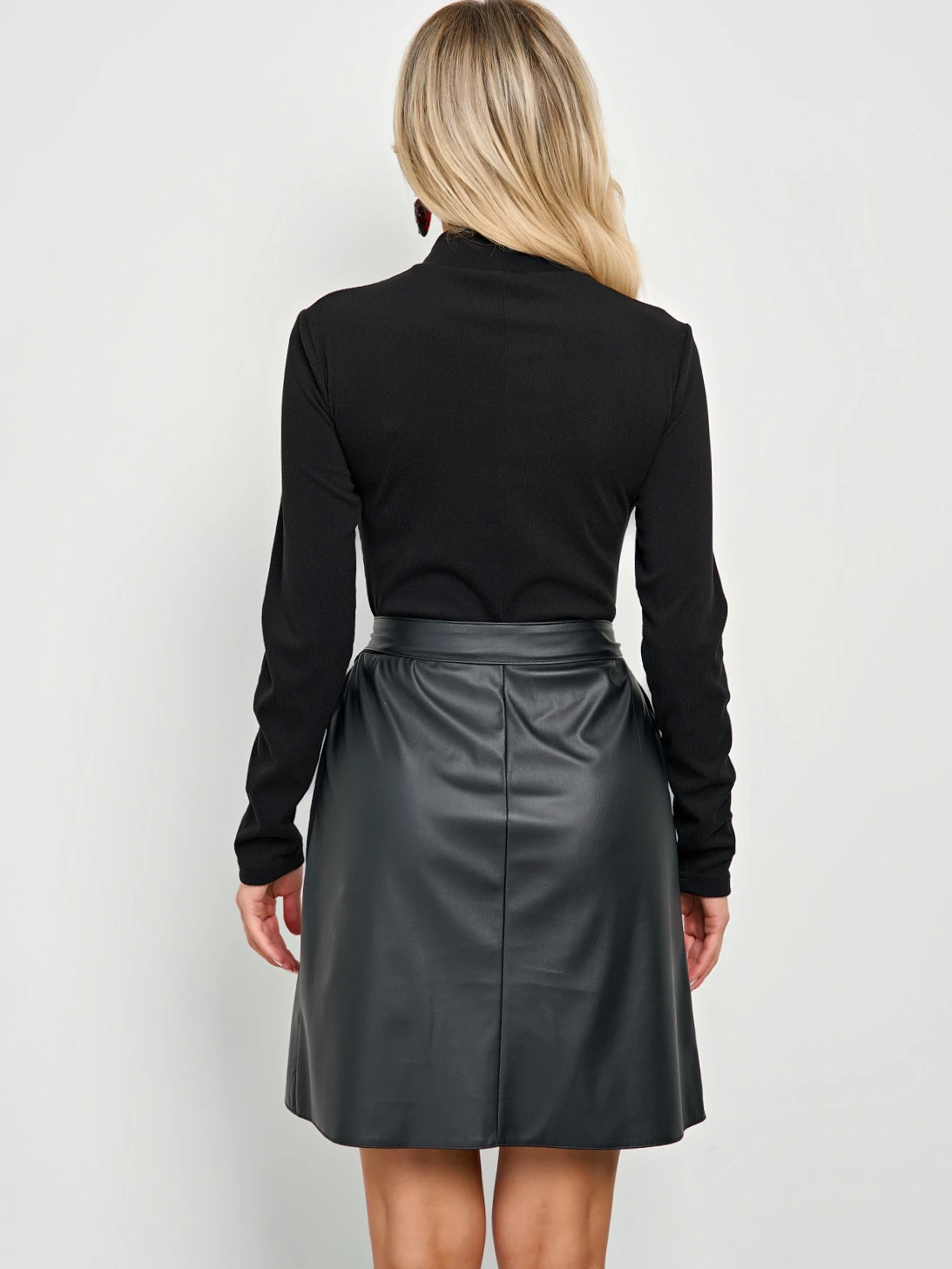 Низ выполнен из искусственной кожи комбинированной с трикотажем.