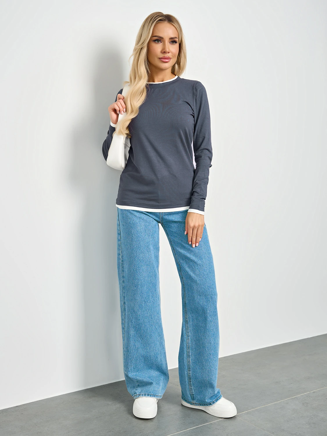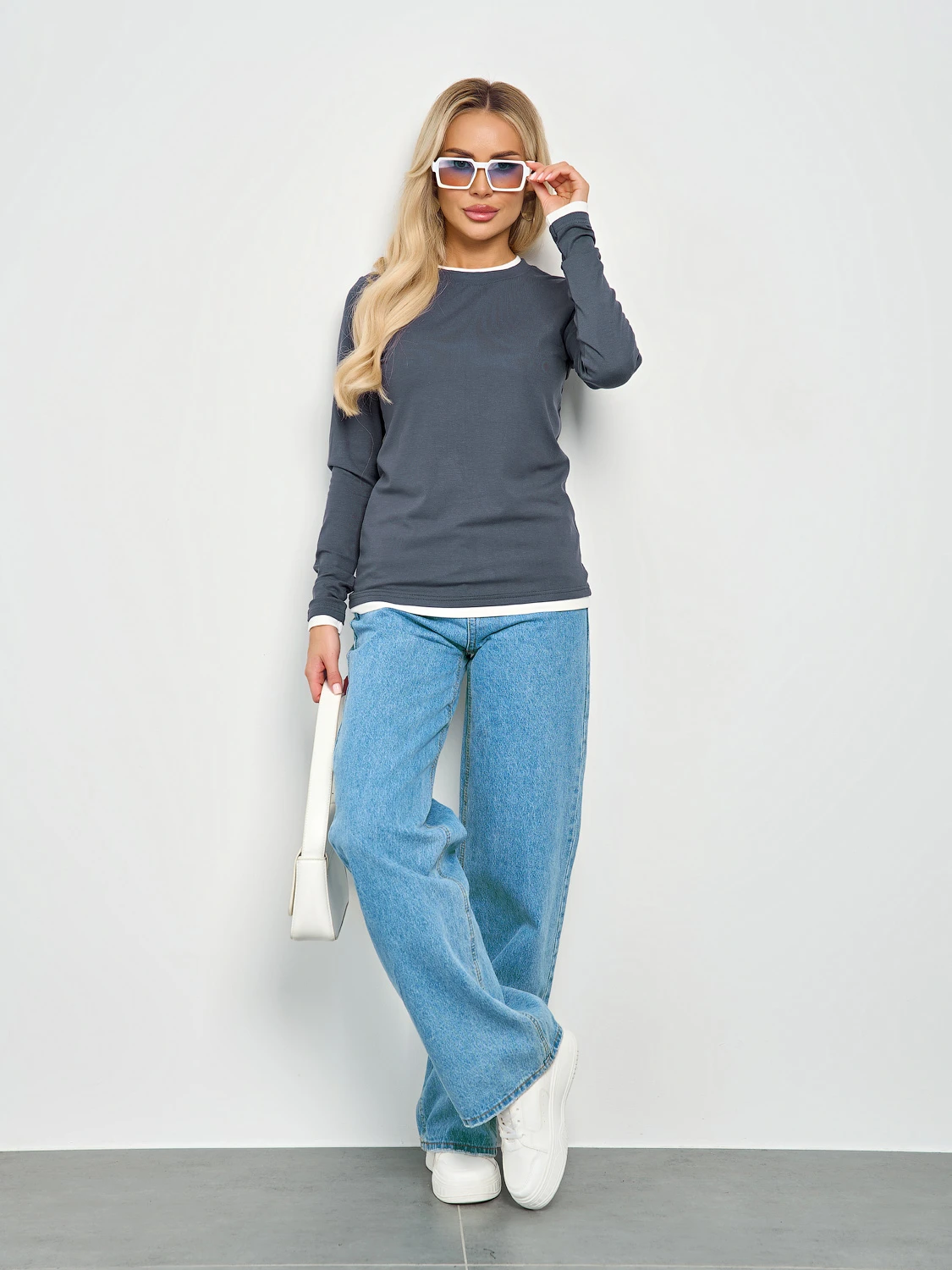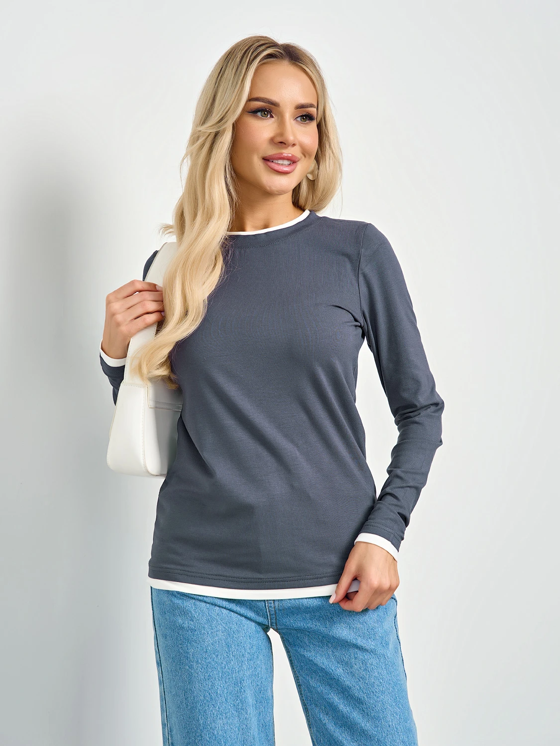 Горловина, низ рукава и низ изделия отделаны контрастным материалом, имитирующим второй слой.