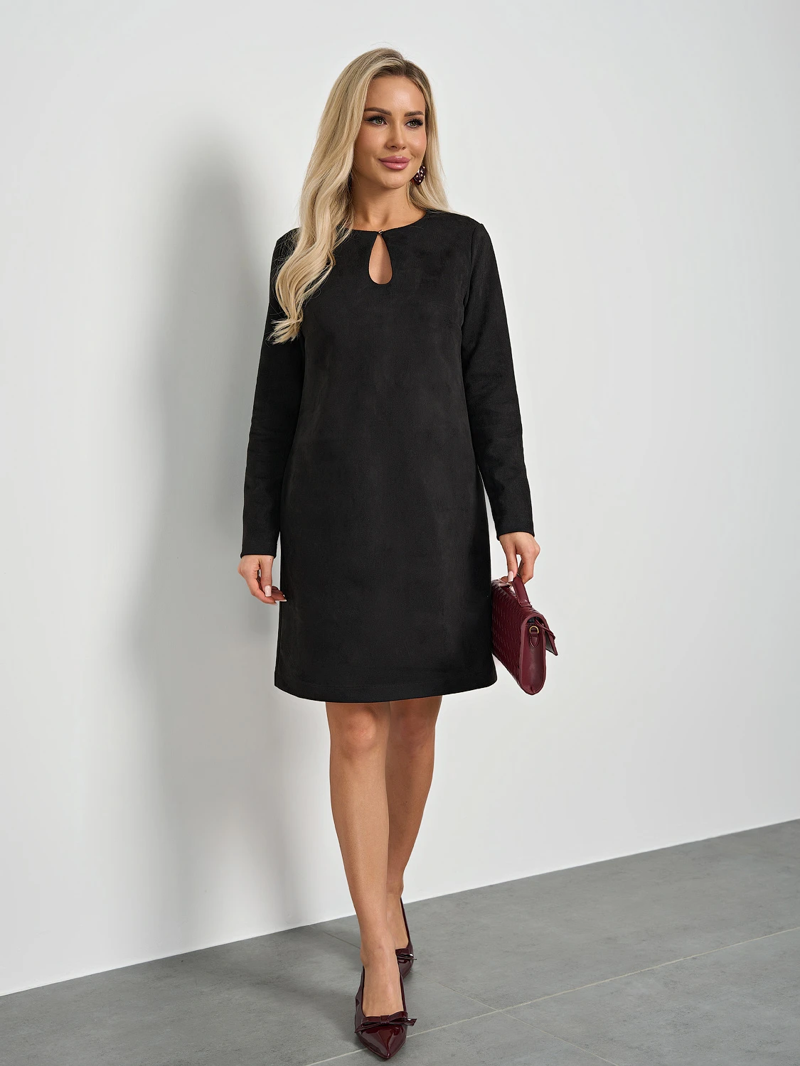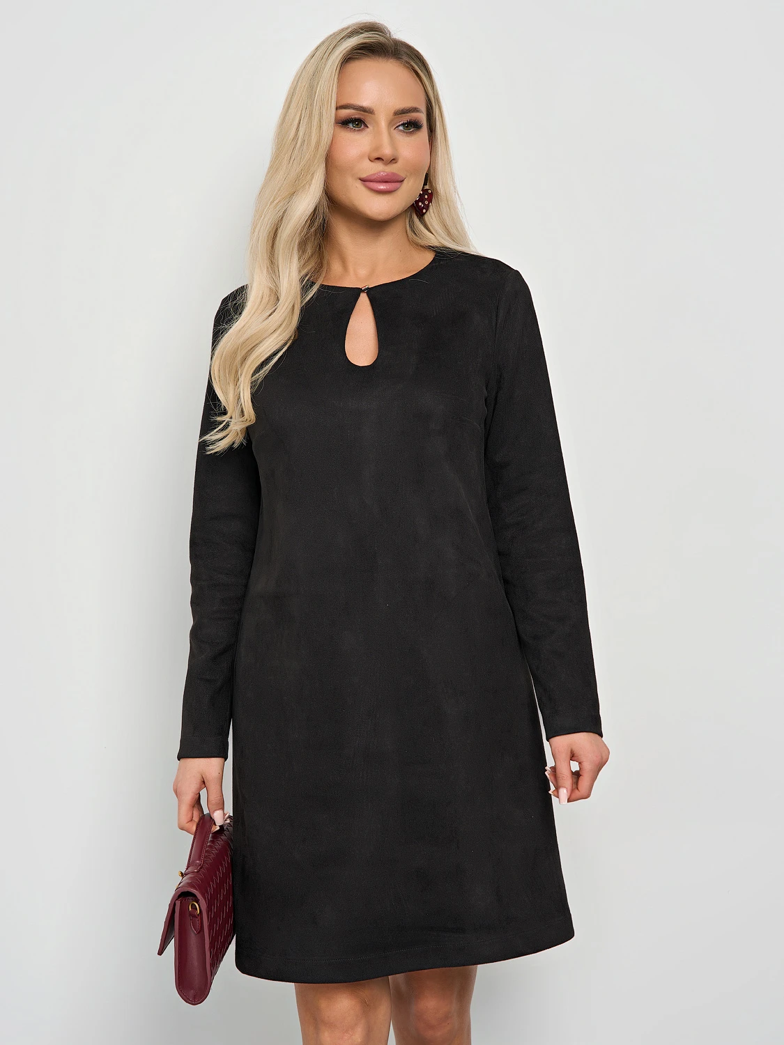 В верхней части переда расположен разрез в виде капли, который фиксируется застежкой на петлю и пуговицу.
