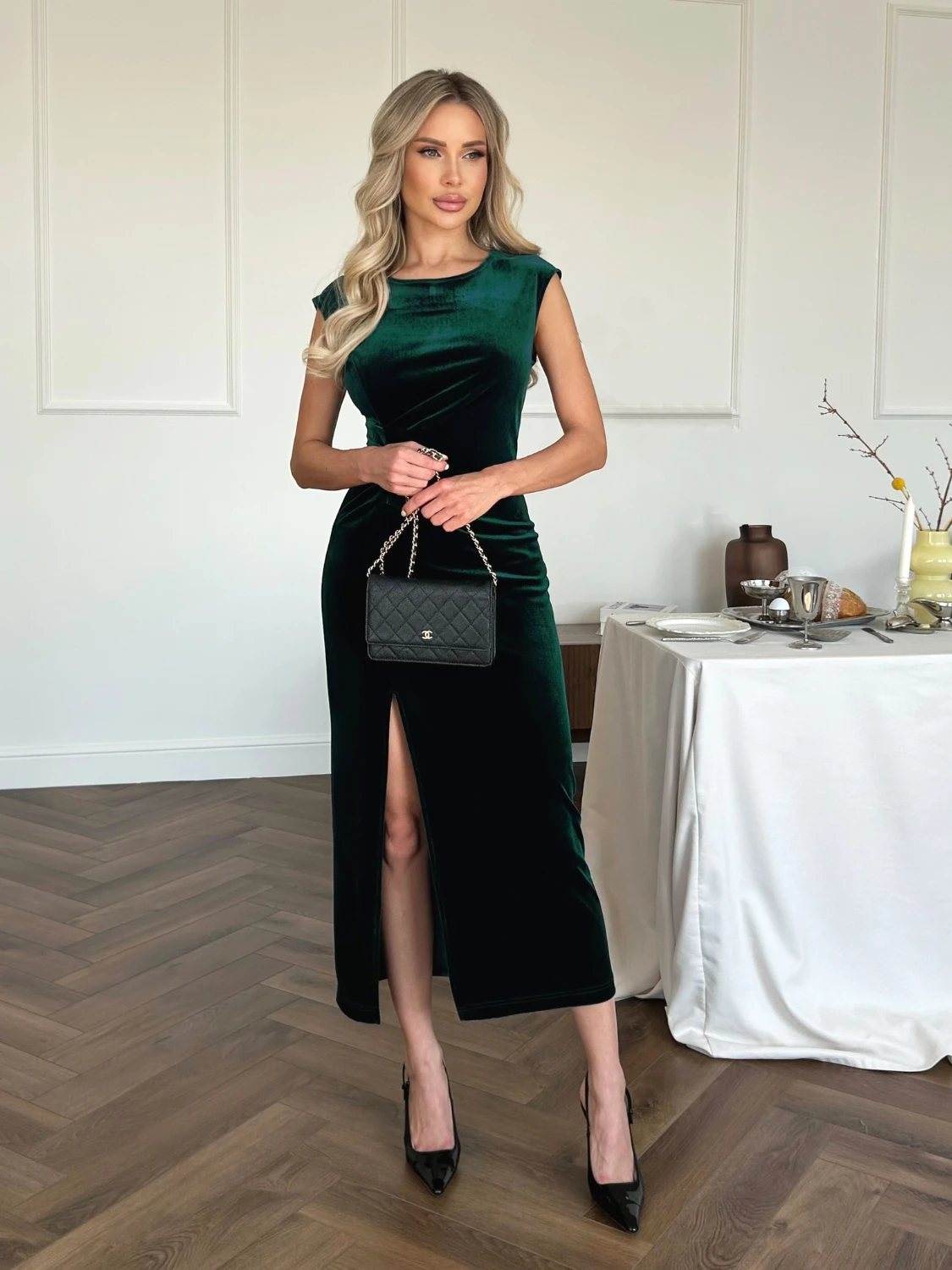 Вечернее платье прилегающего силуэта, выполненное из нежнейшего бархата.