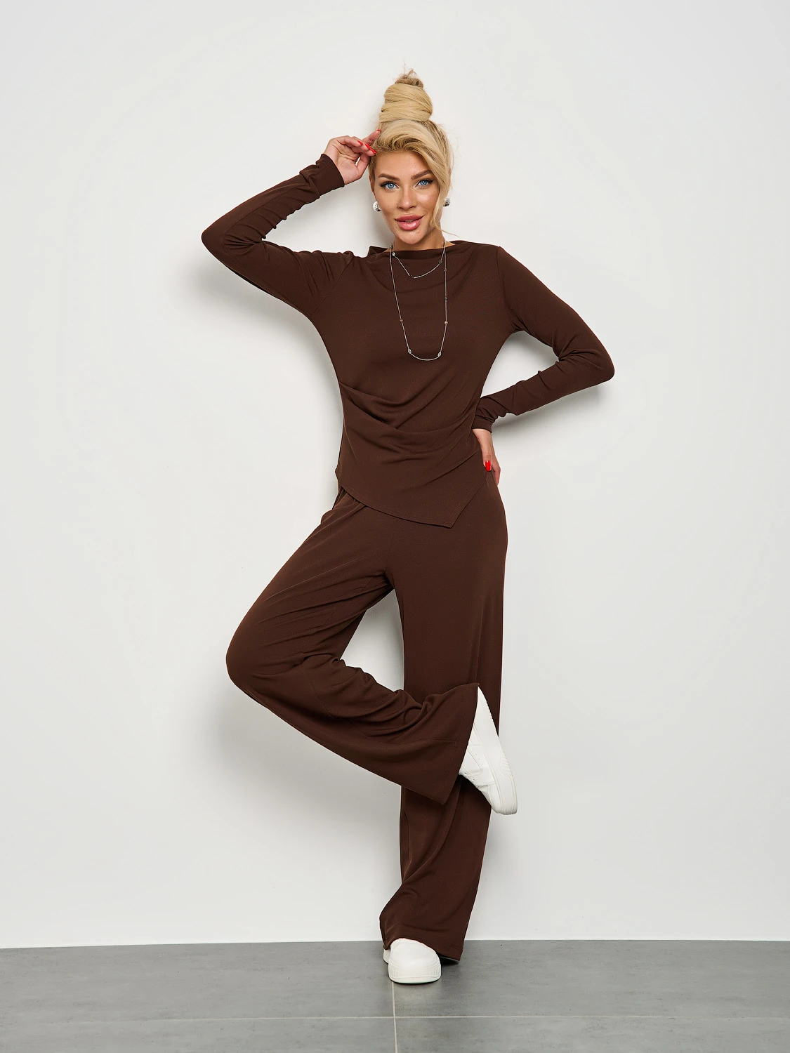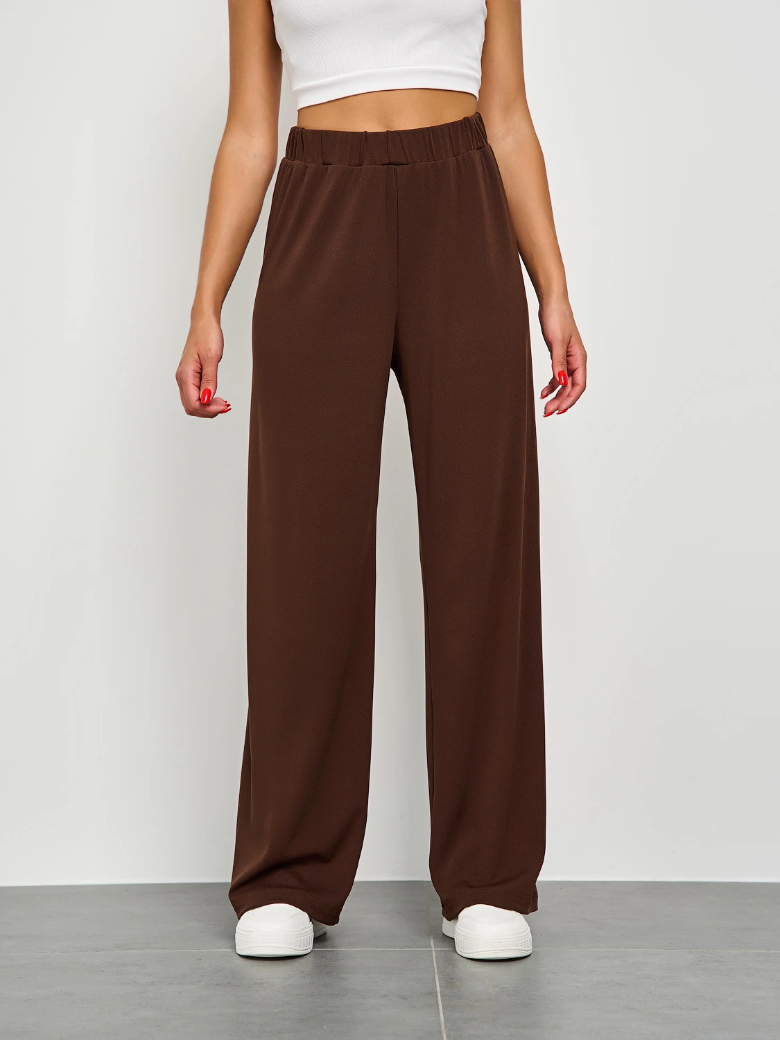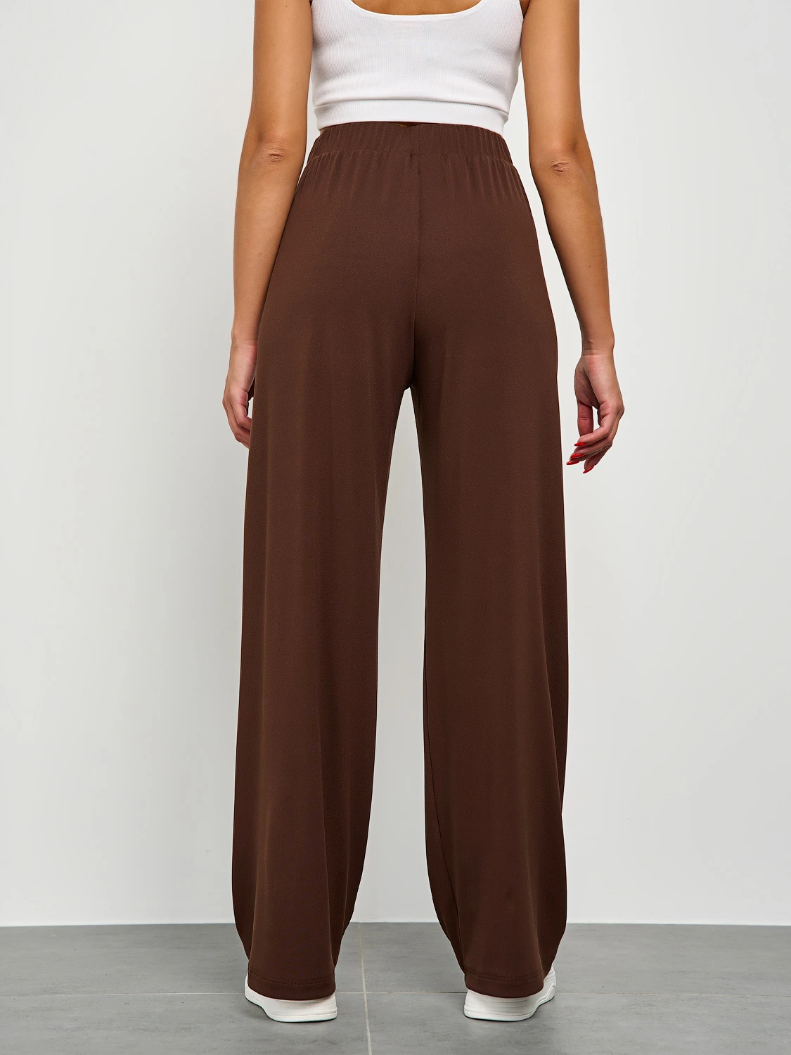 Широкие брюки трендового коричневого цвета из трикотажа.
