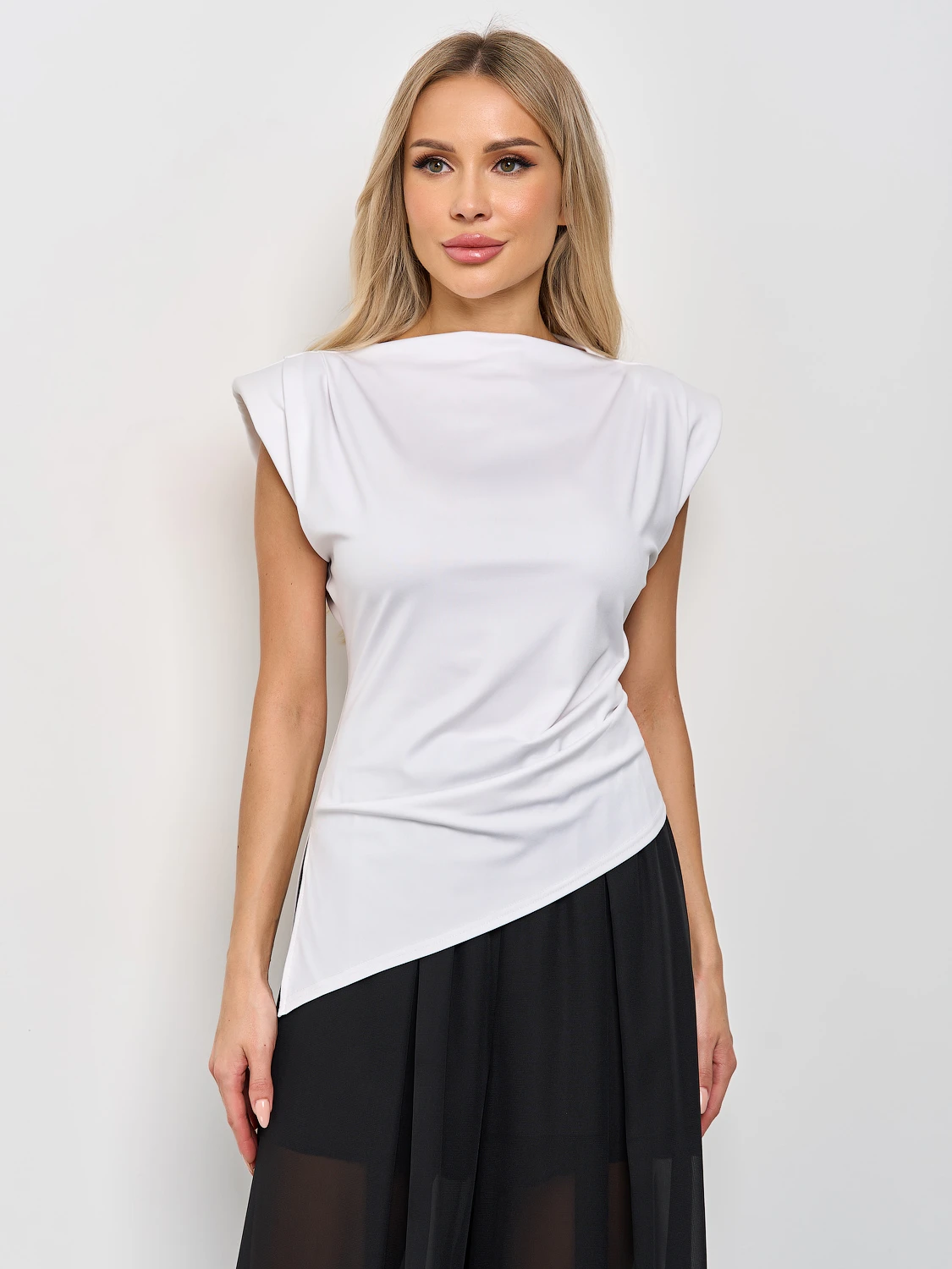 Блуза полуприлегающемго силуэта с подплечниками.