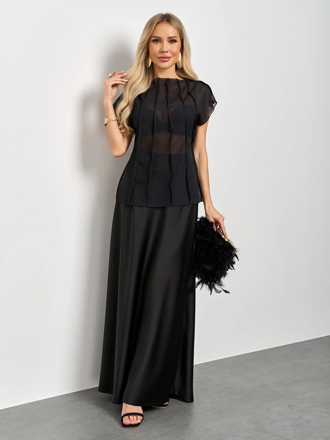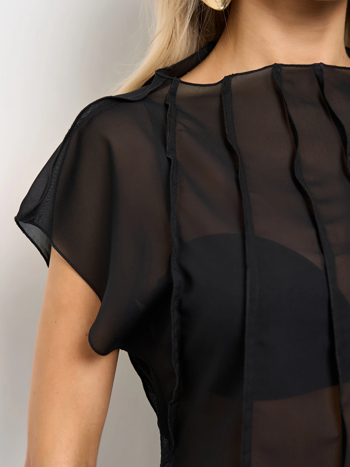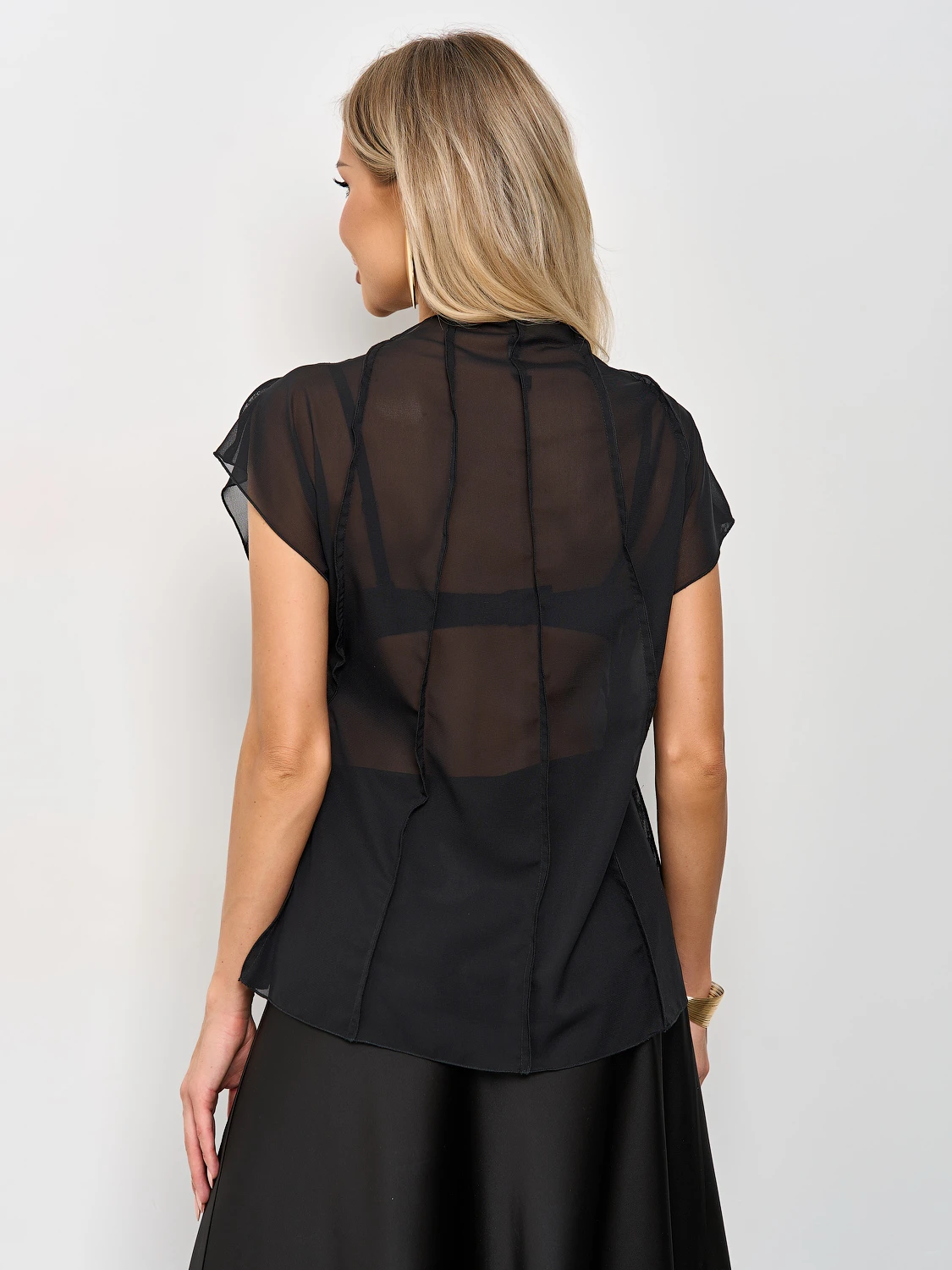 Блуза из шифона с декоративными вертикальными отстрочками по всему изделию.