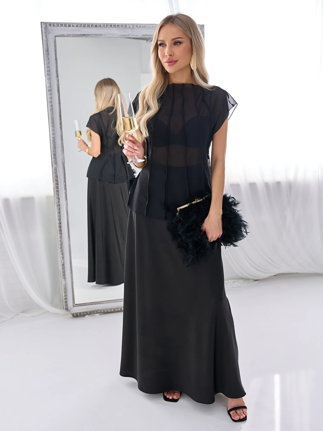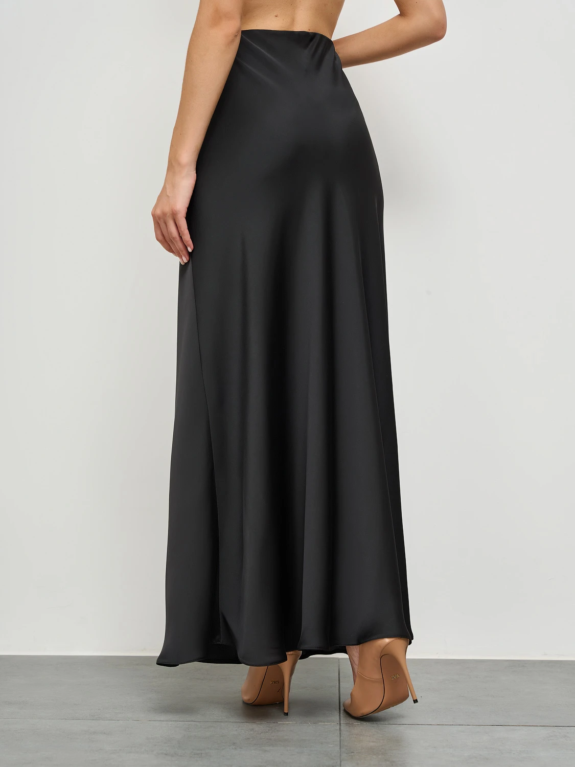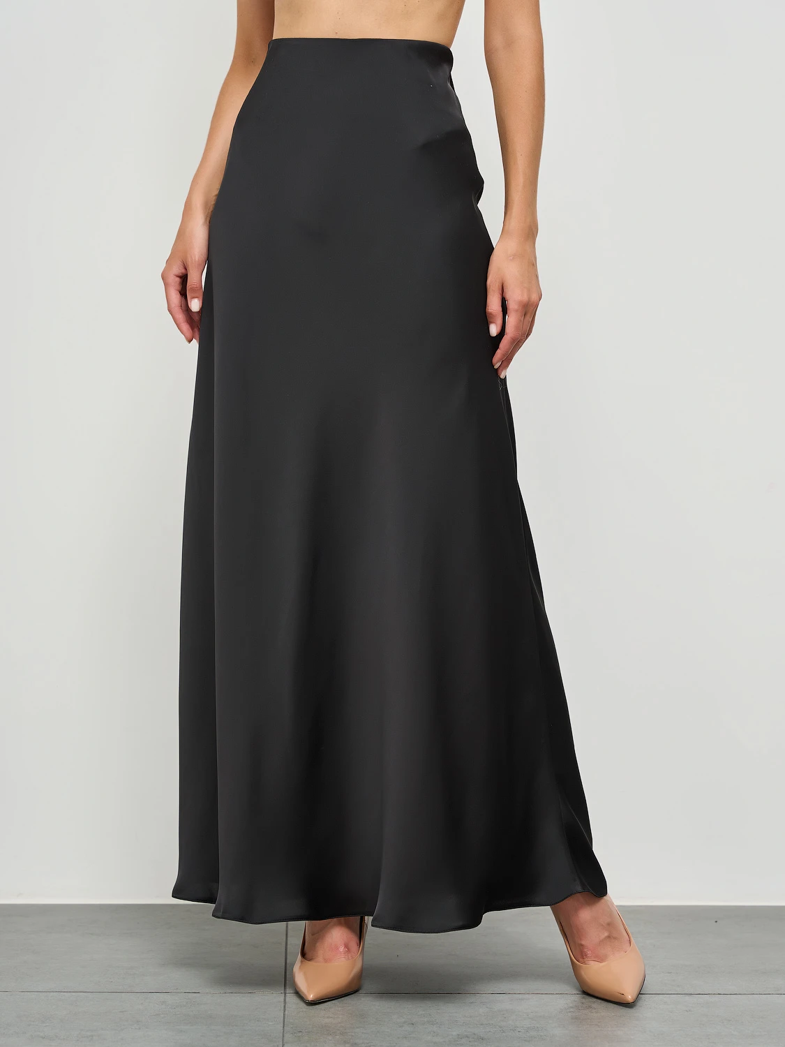 Юбка длины макси из плотного атласа с внутренним поясом из резинки.